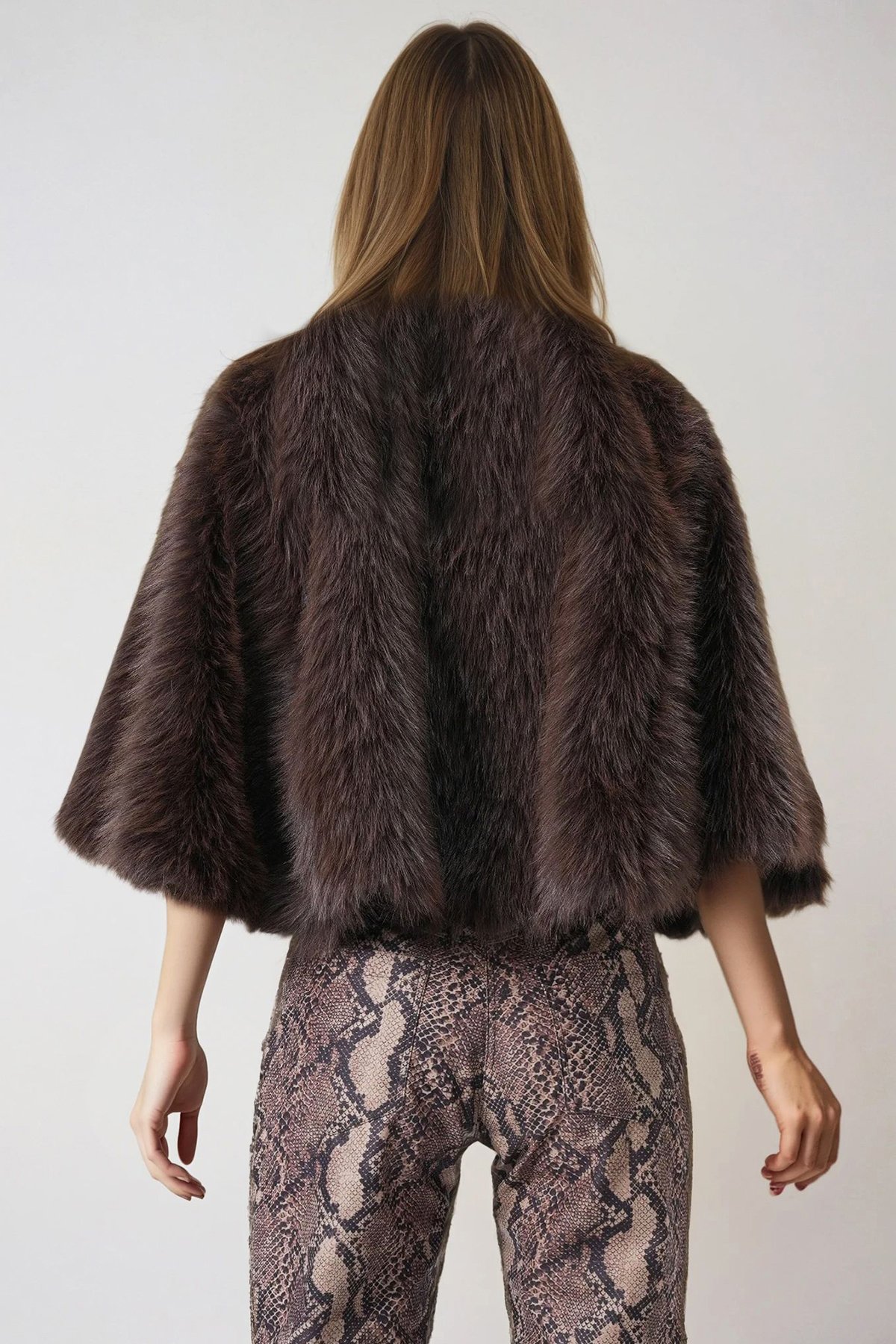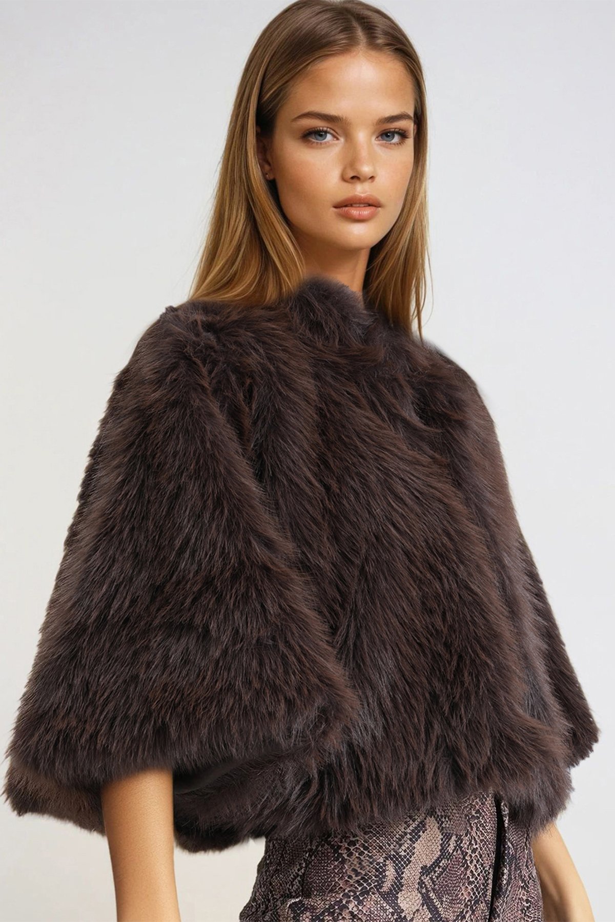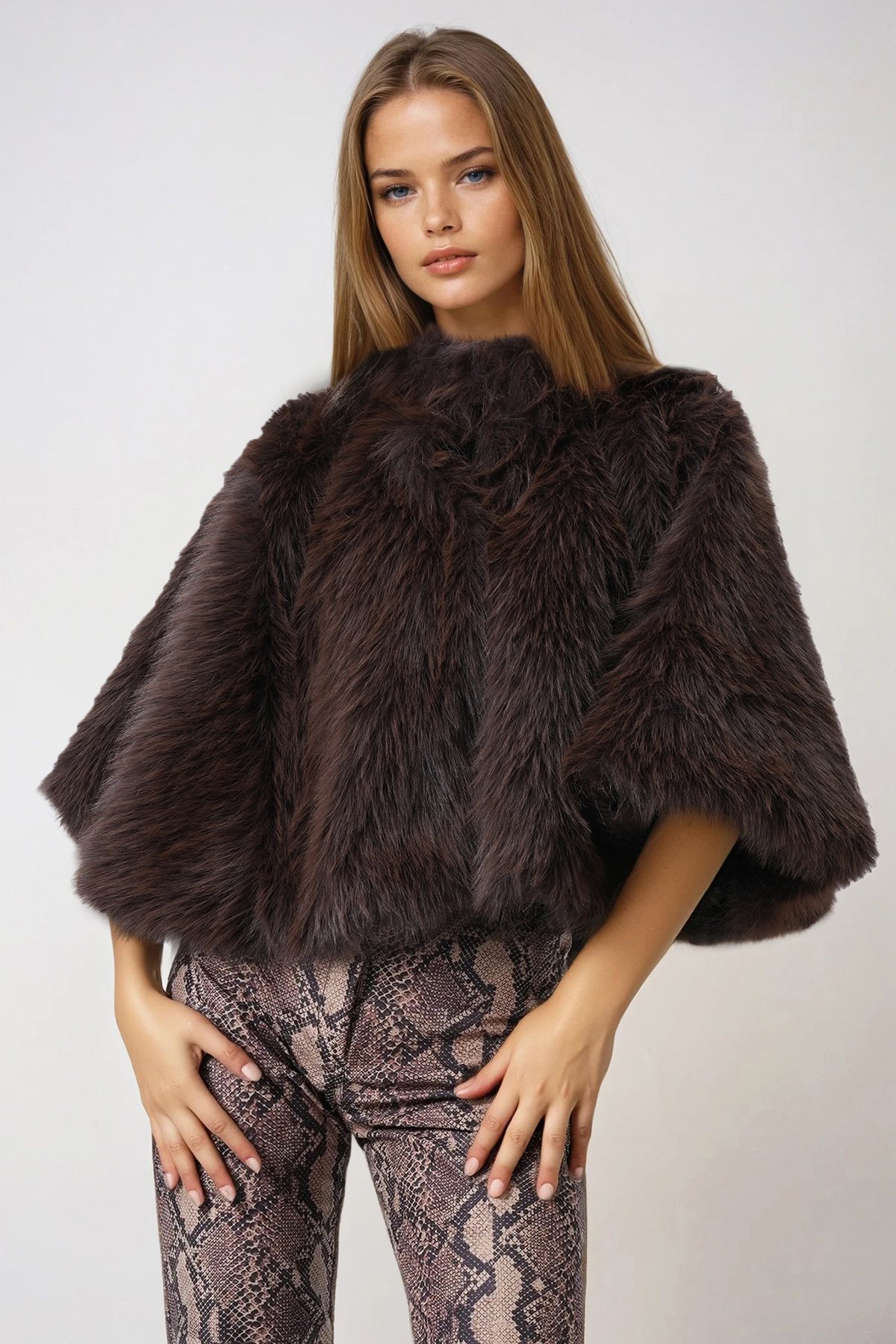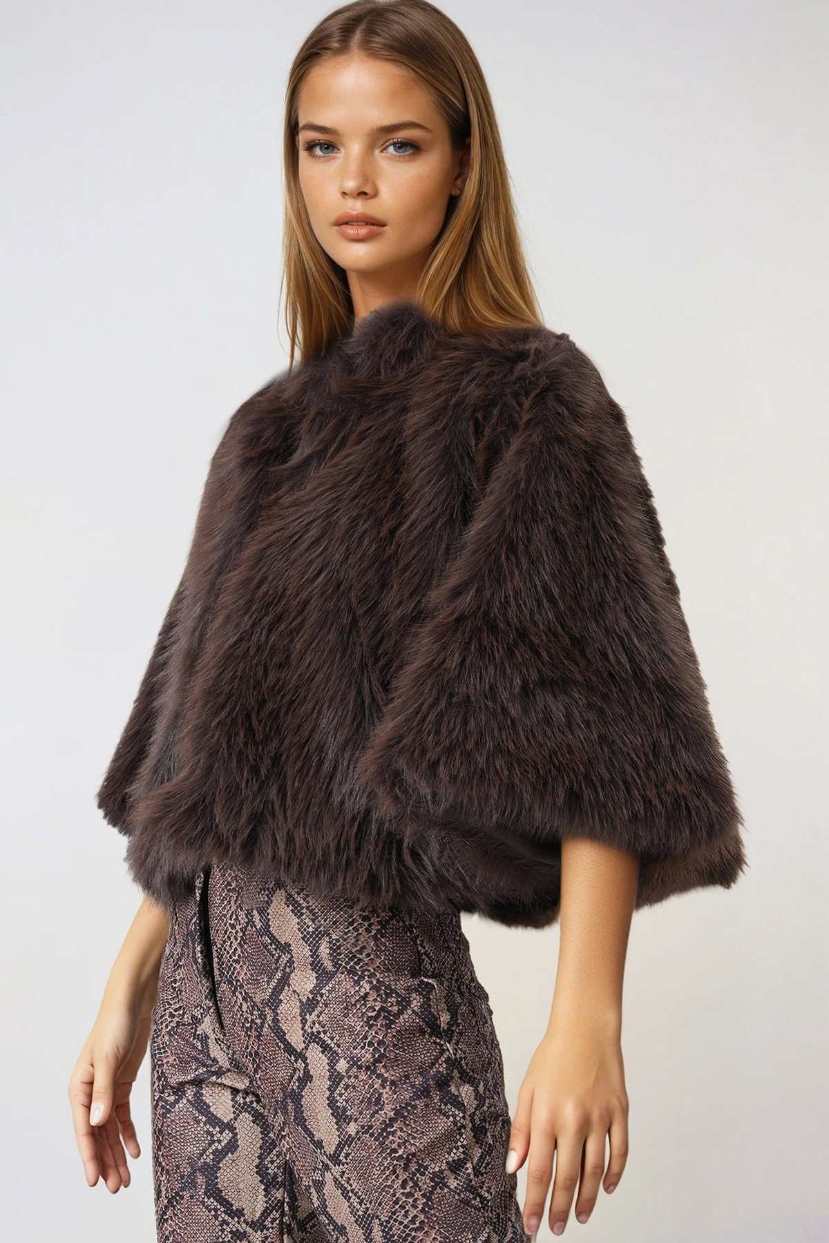 Agraflı Astarlı Kürk Pelerin - KAHVERENGİ (VS01013)