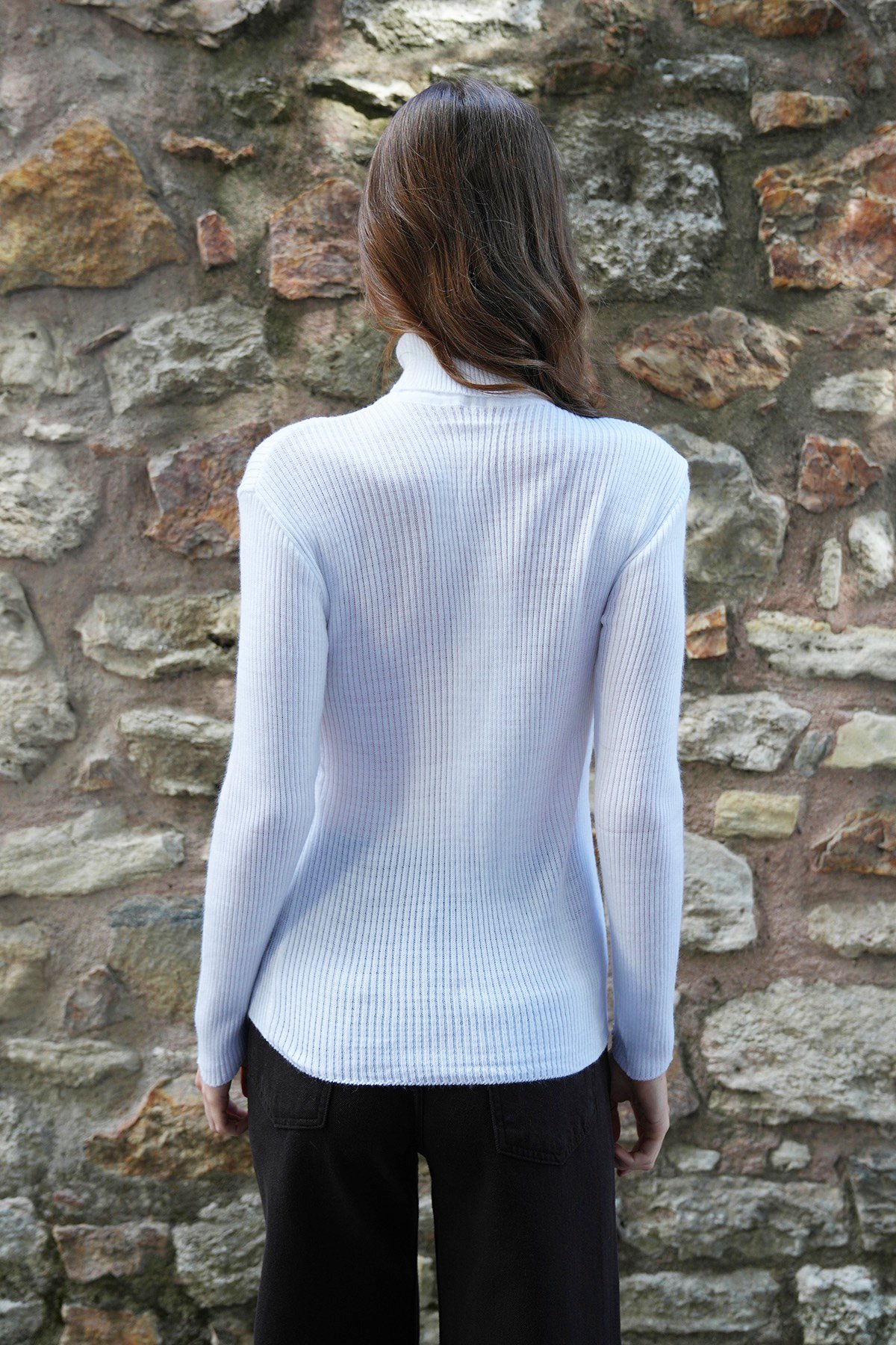 Balıkçı Yaka Fitilli Uzun Kollu Triko Kazak - BEYAZ (VS01202)