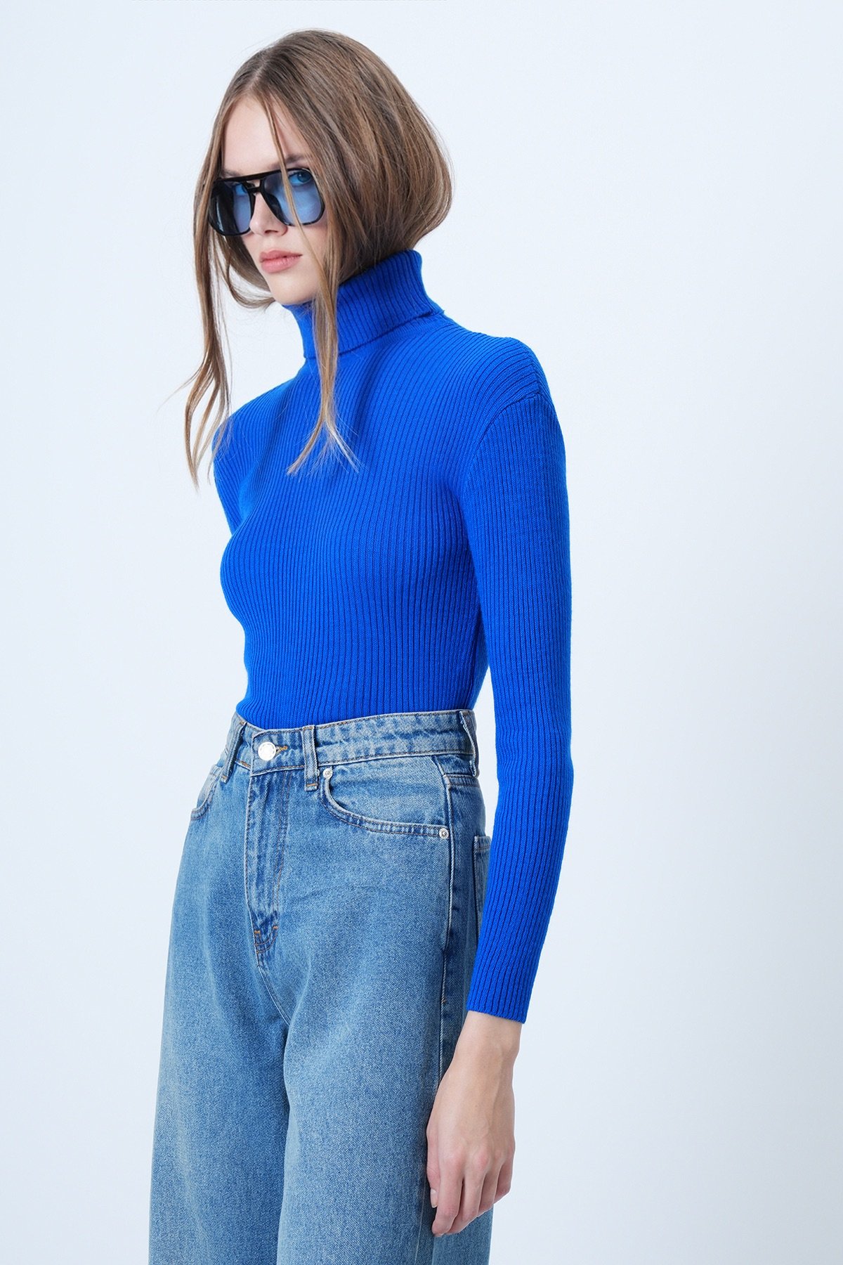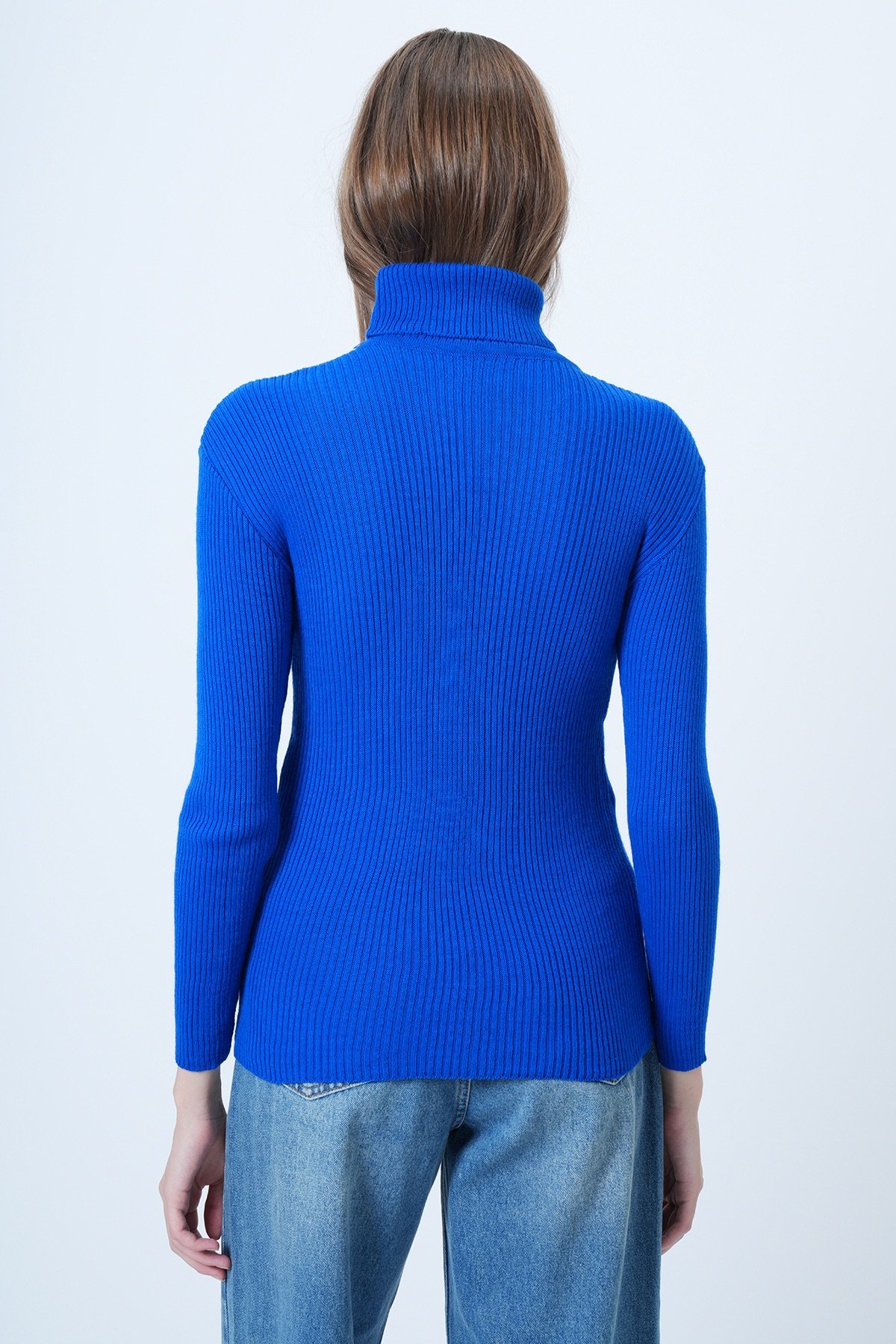 Balıkçı Yaka Fitilli Uzun Kollu Triko Kazak - Saks (VS01202)