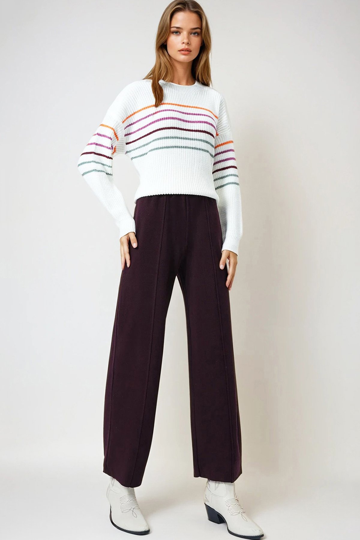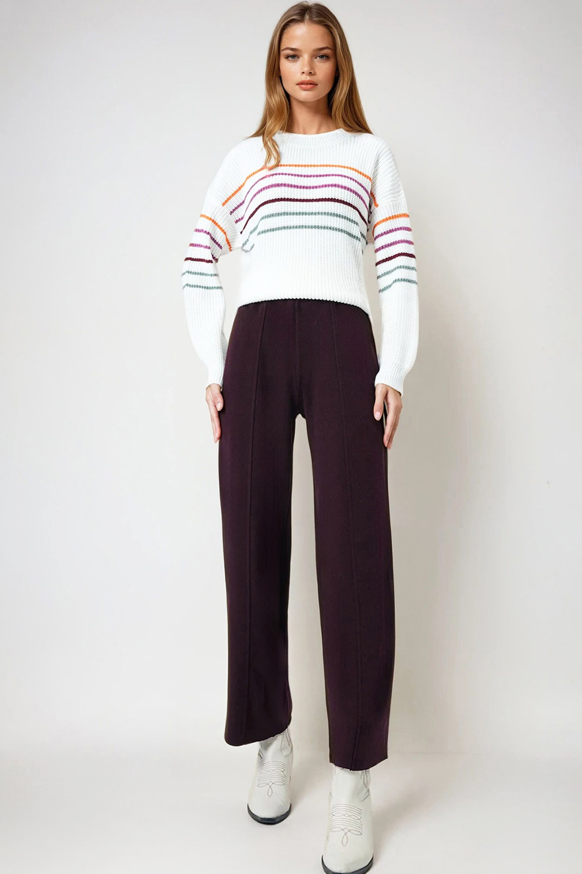 Beli lastikli Cepsiz Palazzo Pantolon - Mürdüm (VS01027)