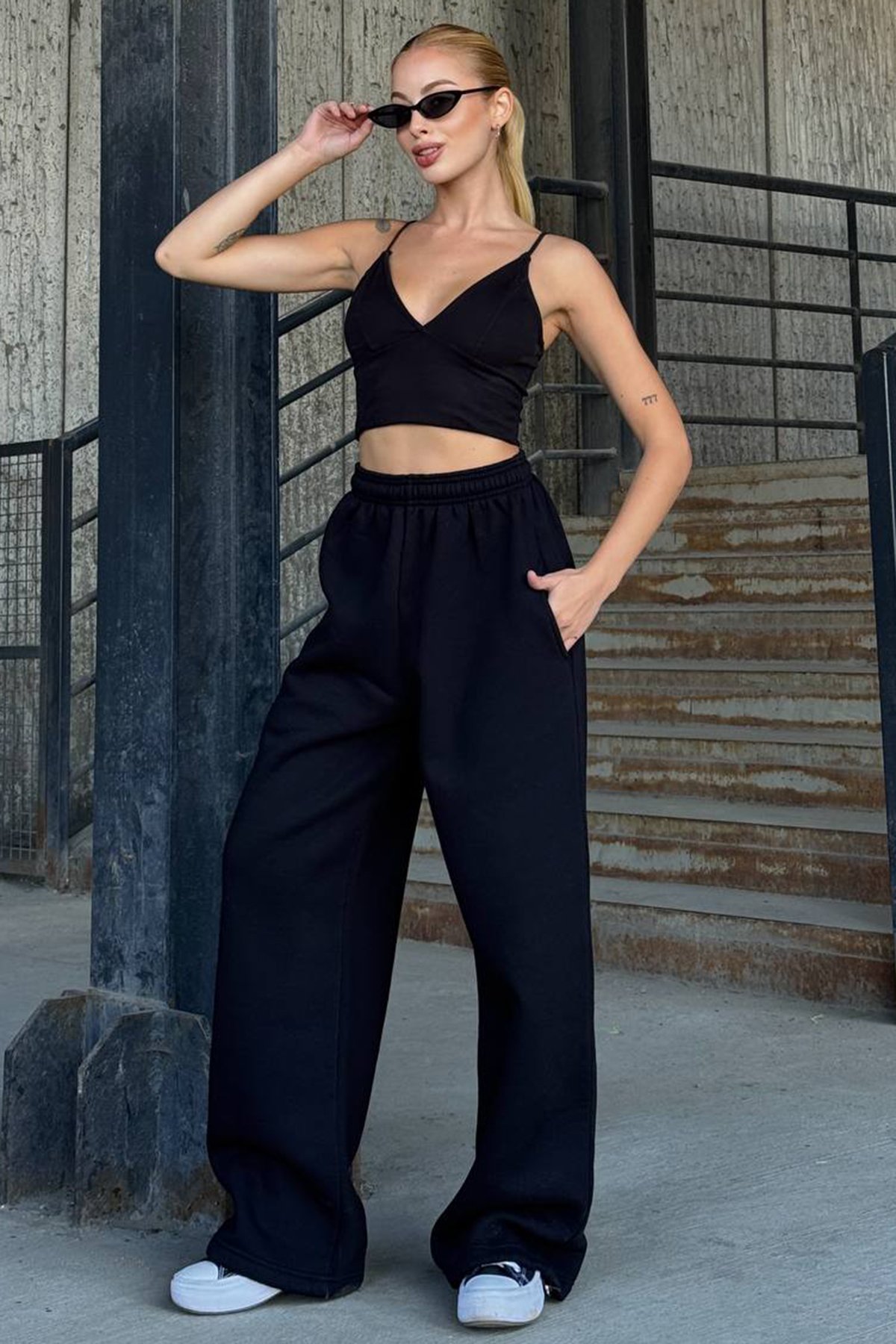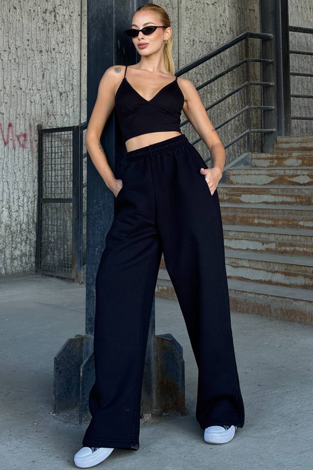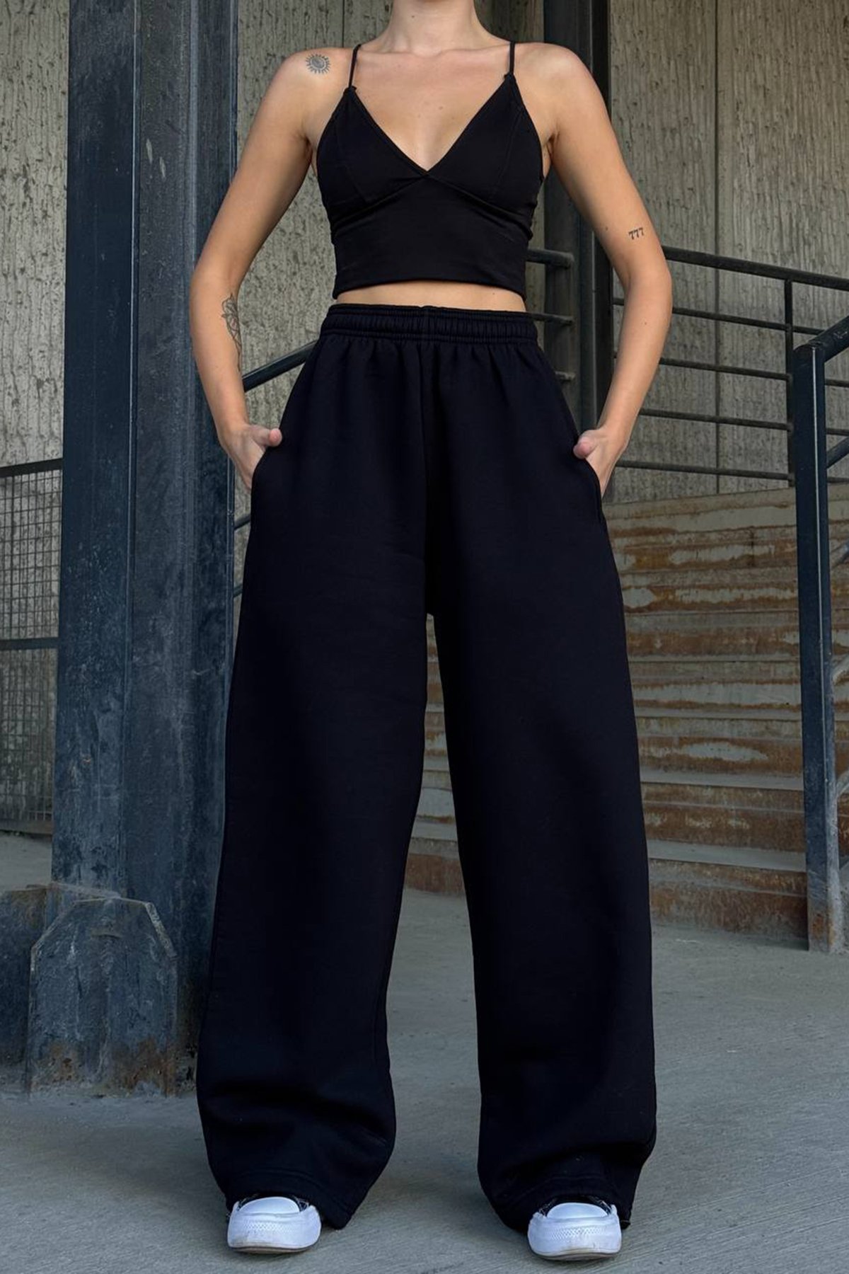 Beli Ve Paçası Lastikli Çift Cepli 3 İplik Eşofman Altı - SİYAH (VS01396)