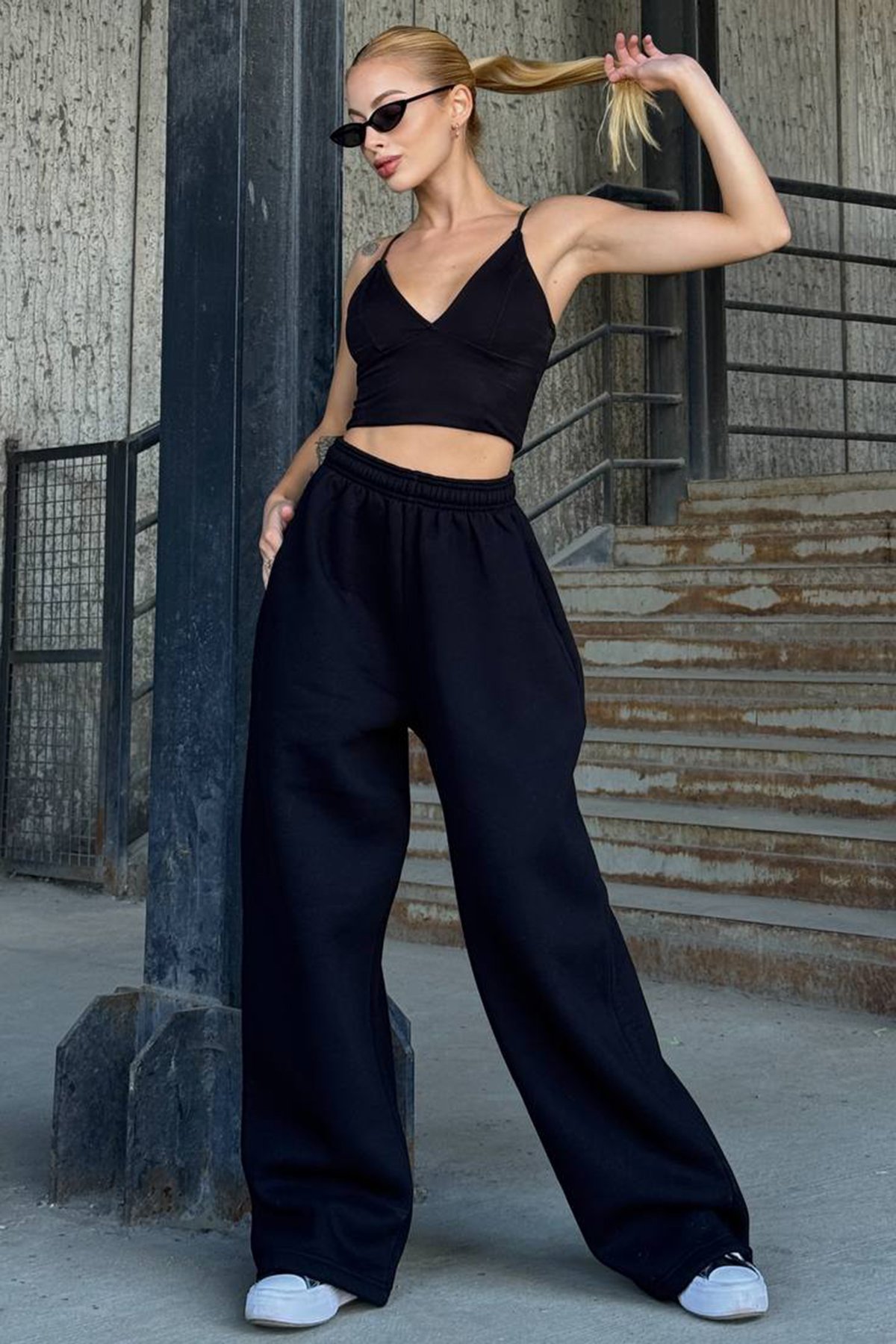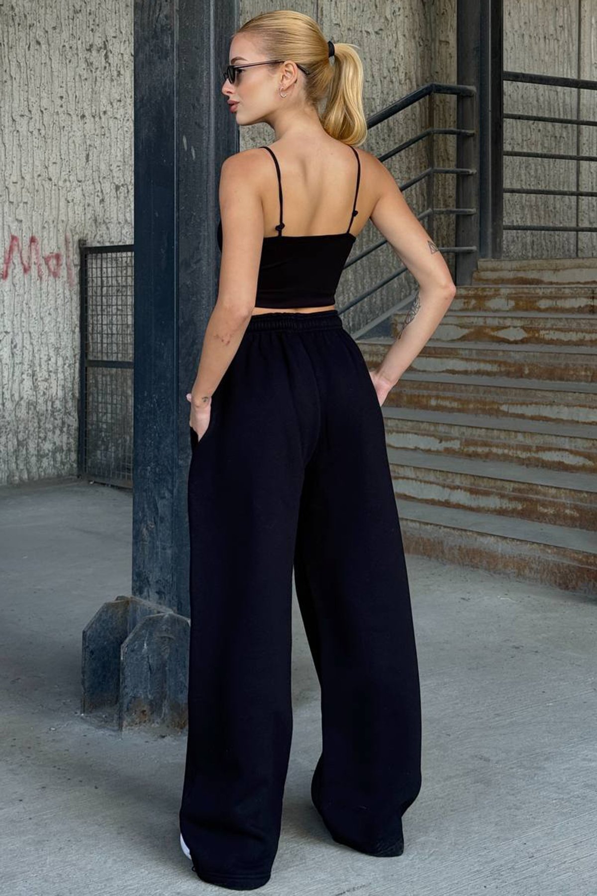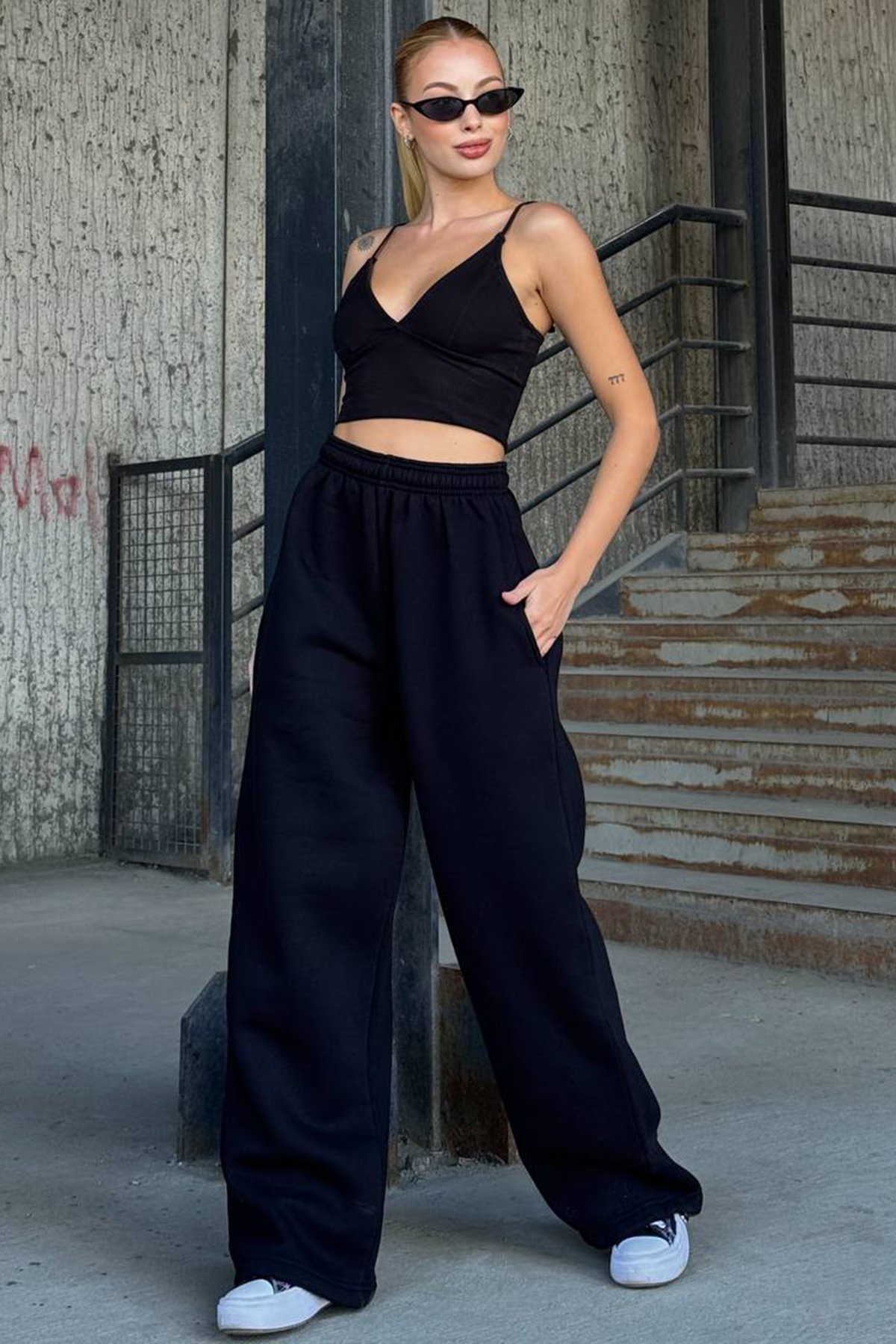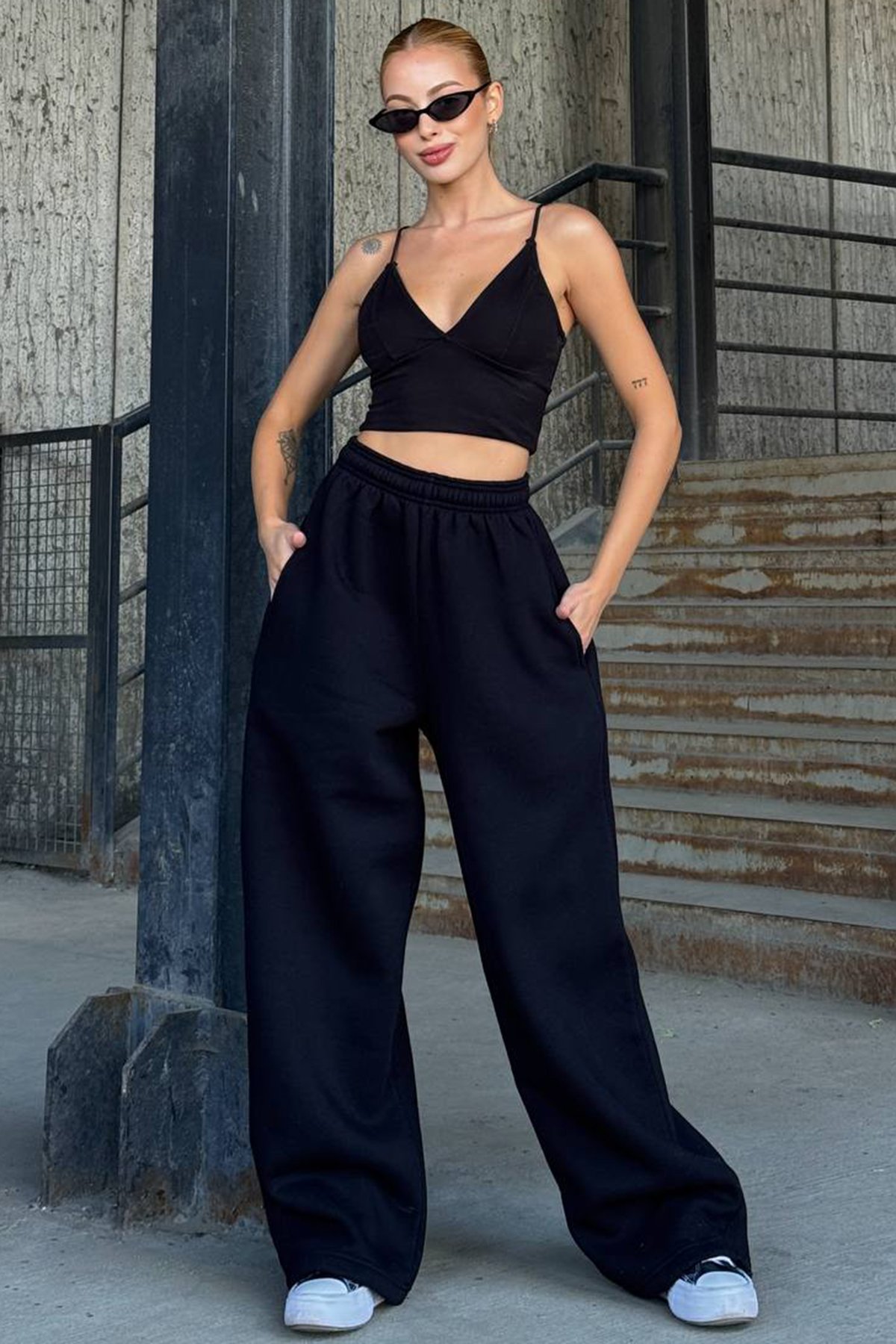 Beli Ve Paçası Lastikli Çift Cepli 3 İplik Eşofman Altı - SİYAH (VS01396)