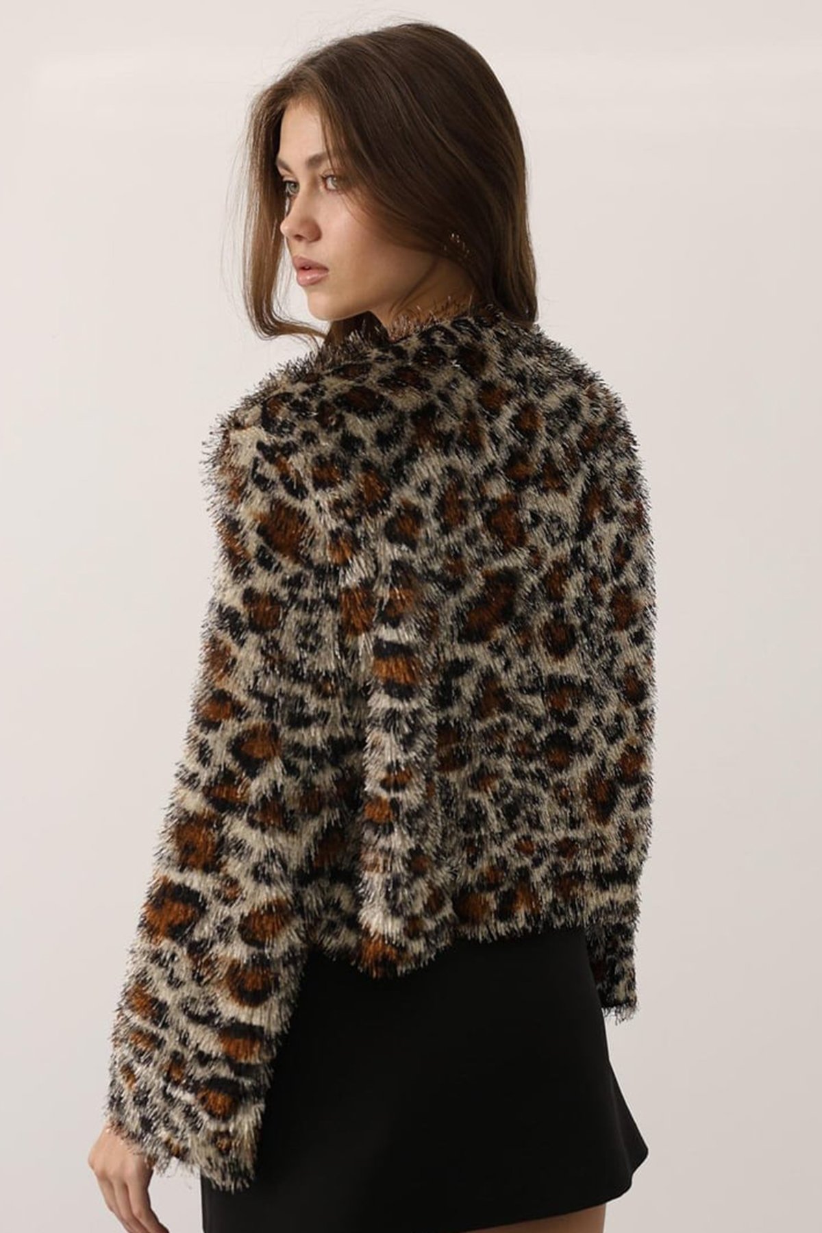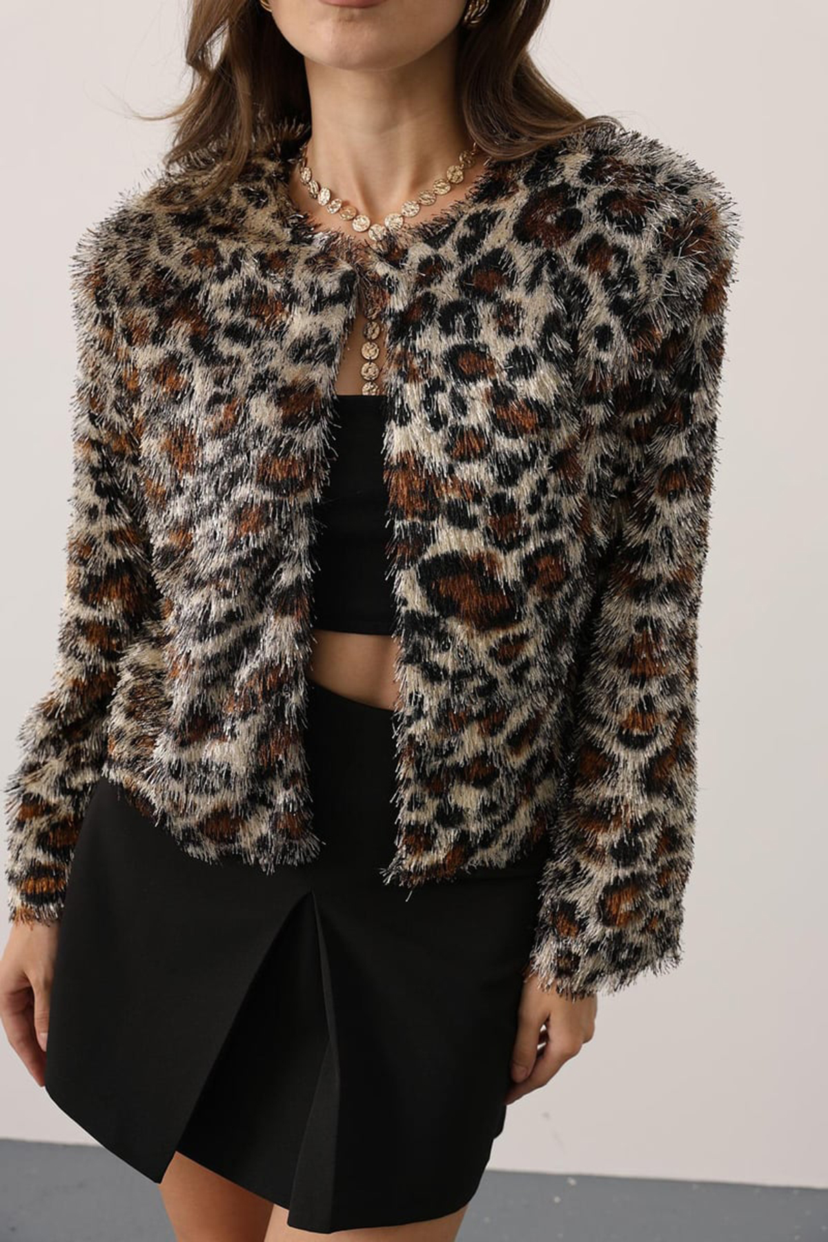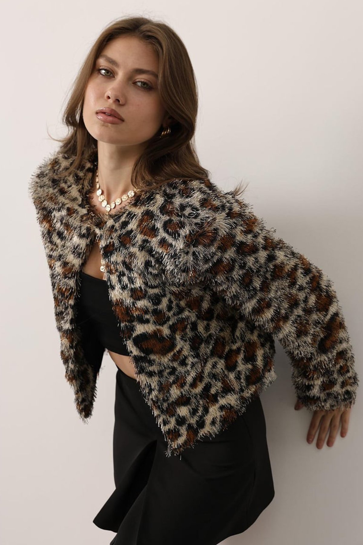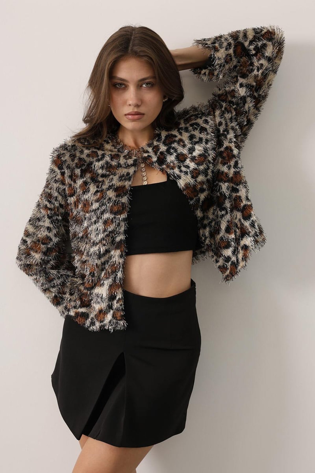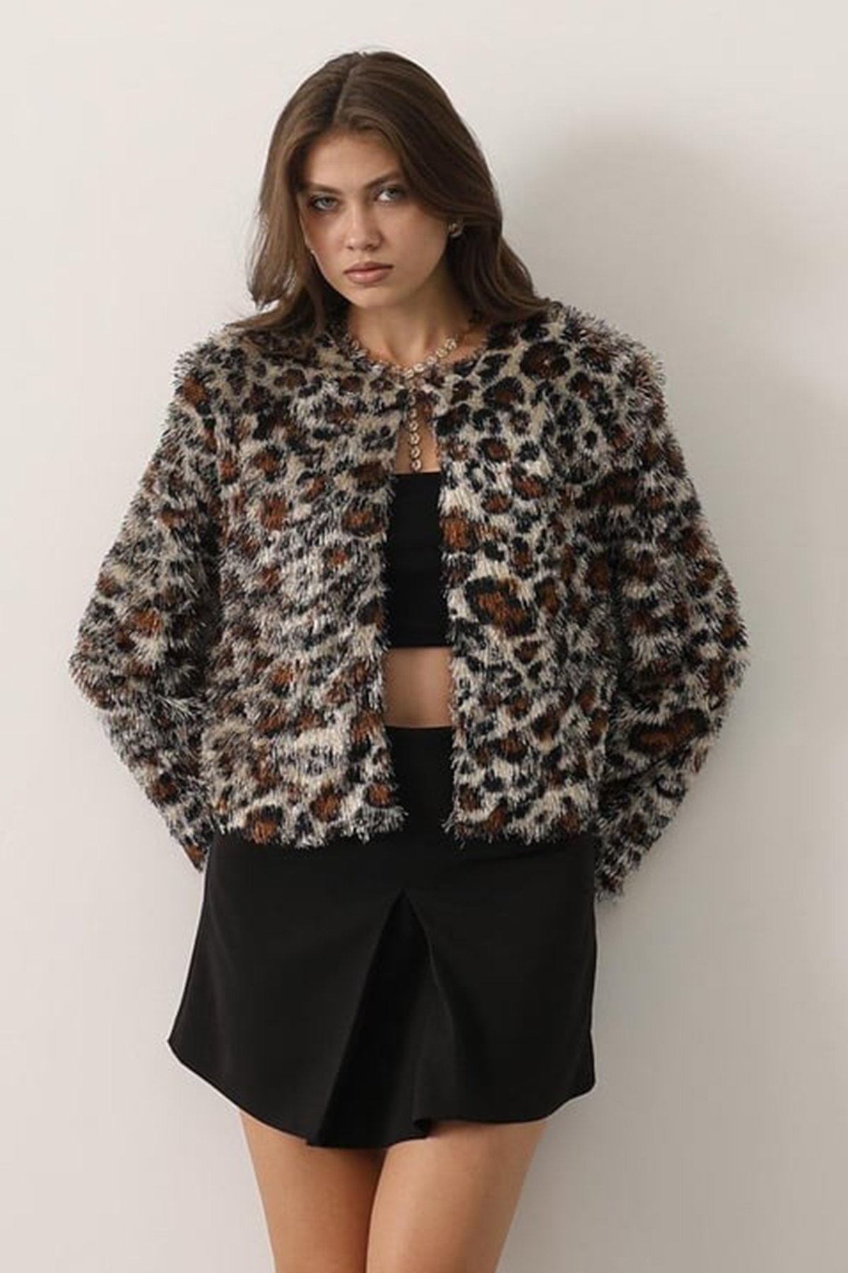 Bisiklet Yaka Astarlı Sakal Ip Ceket - LEOPAR (VS01251)