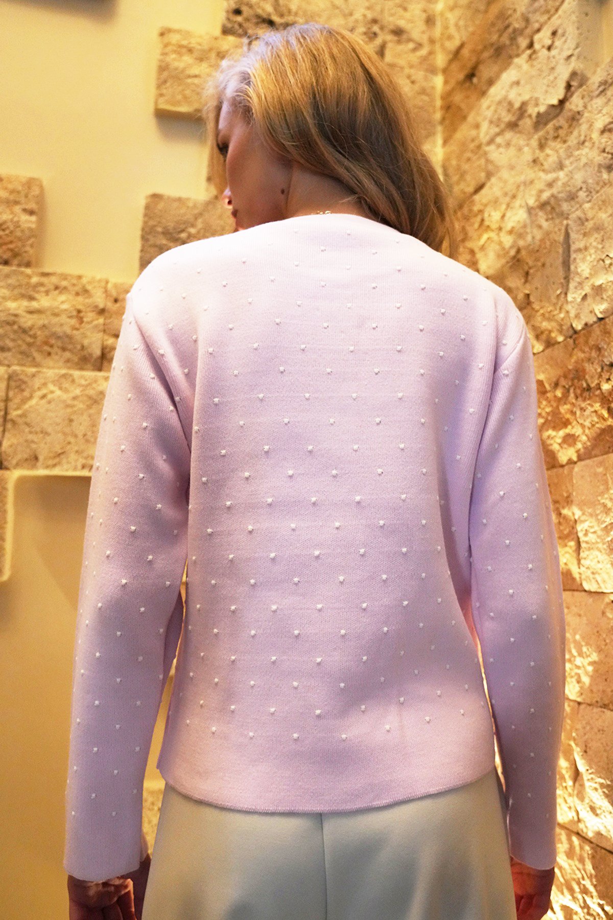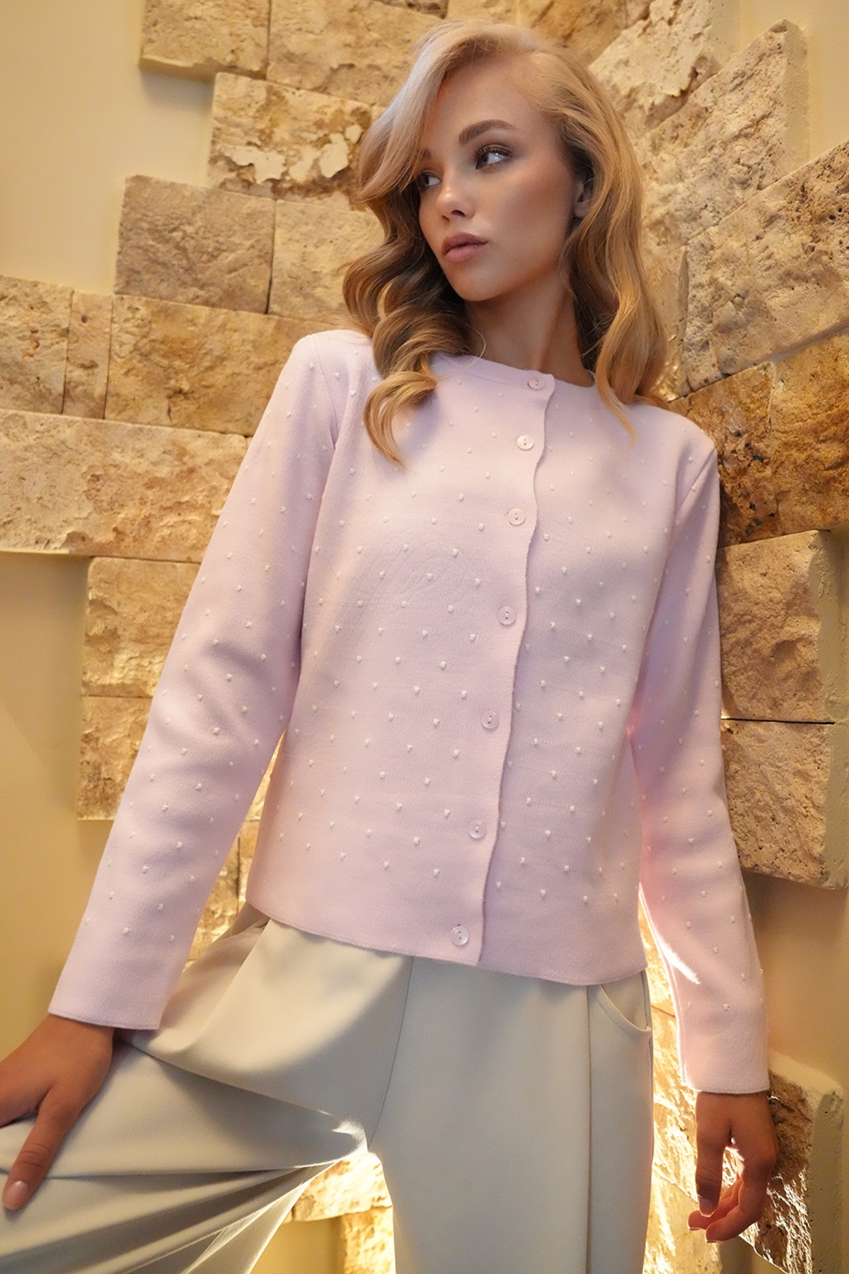 Bisiklet Yaka Düğmeli Mini Nakışlı Triko Hırka - Pembe (ALC-X14454)