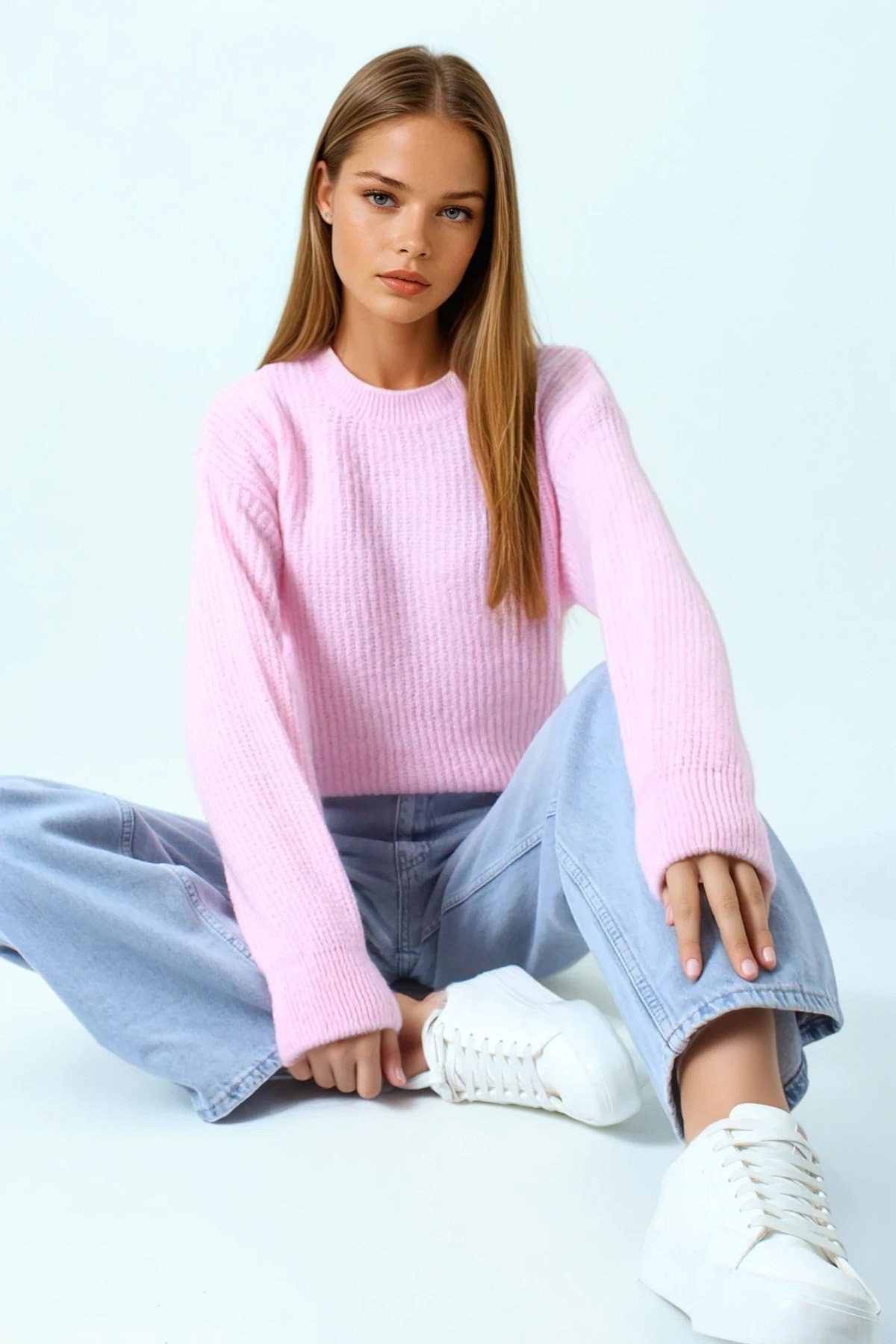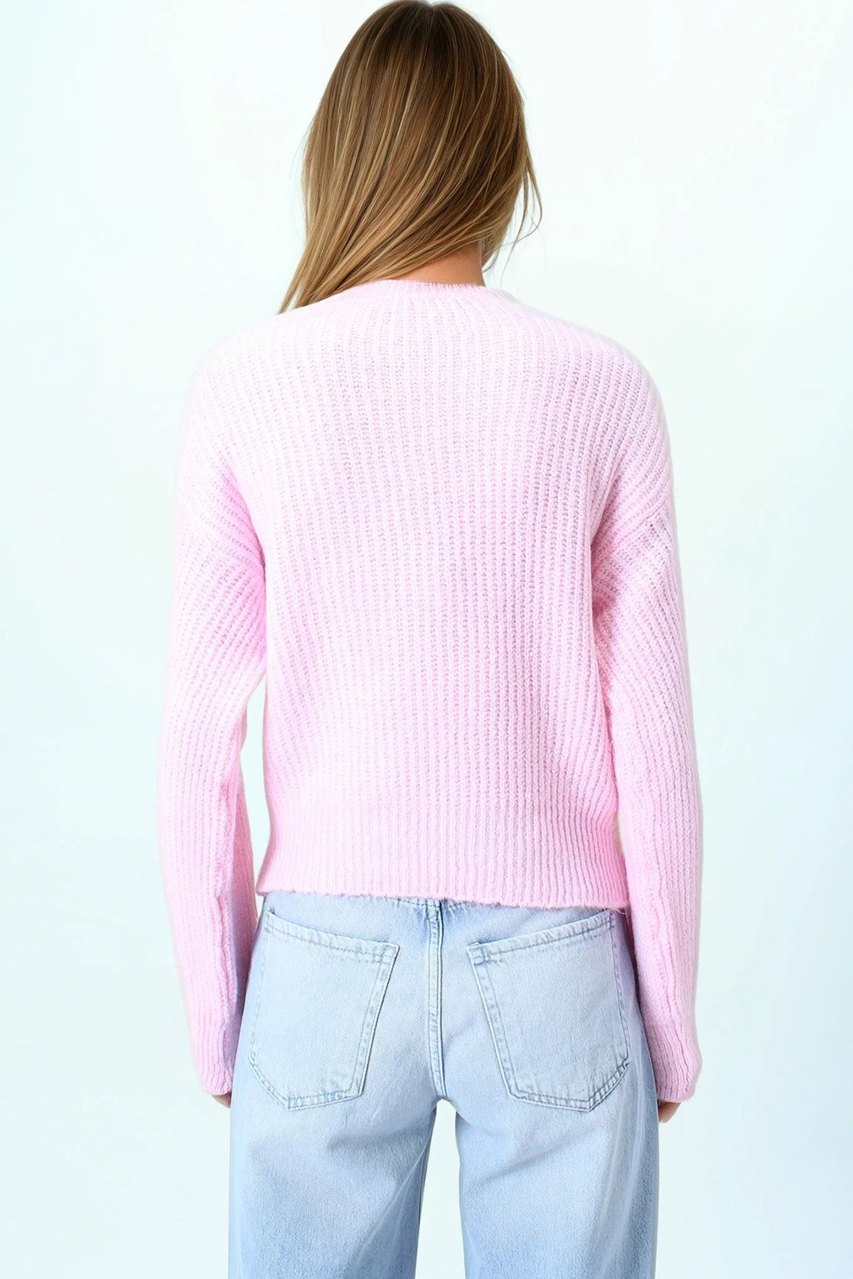 Bisiklet Yaka Düz Örgü Triko Kazak - PEMBE (VS01045)