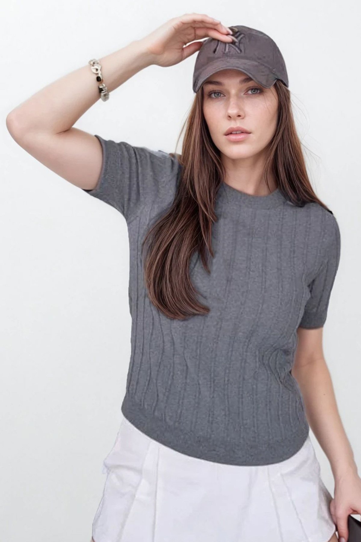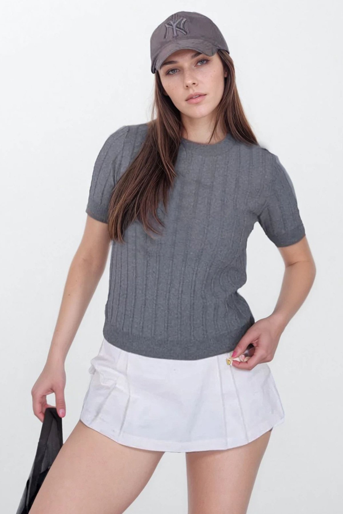 Bisiklet Yaka Fitilli Triko Bluz - ANTRASİT (VS00793)