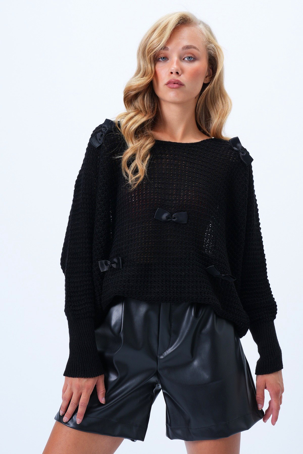Bisiklet Yaka Fiyonk Detaylı Triko Bluz - Siyah (ALC-X14373)