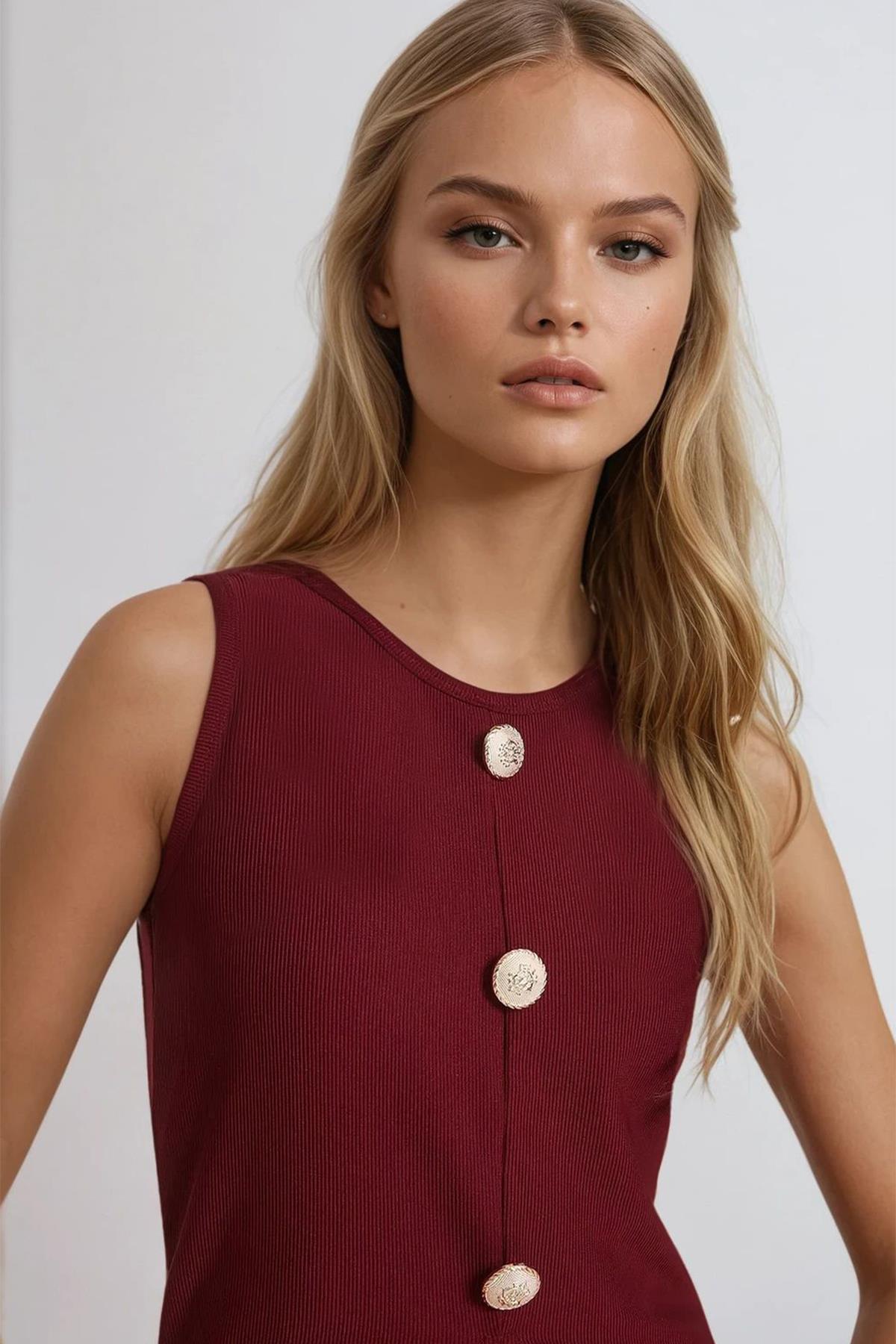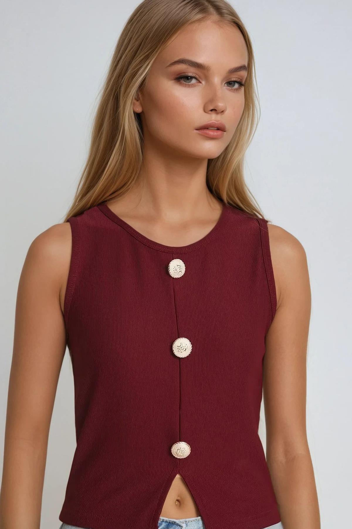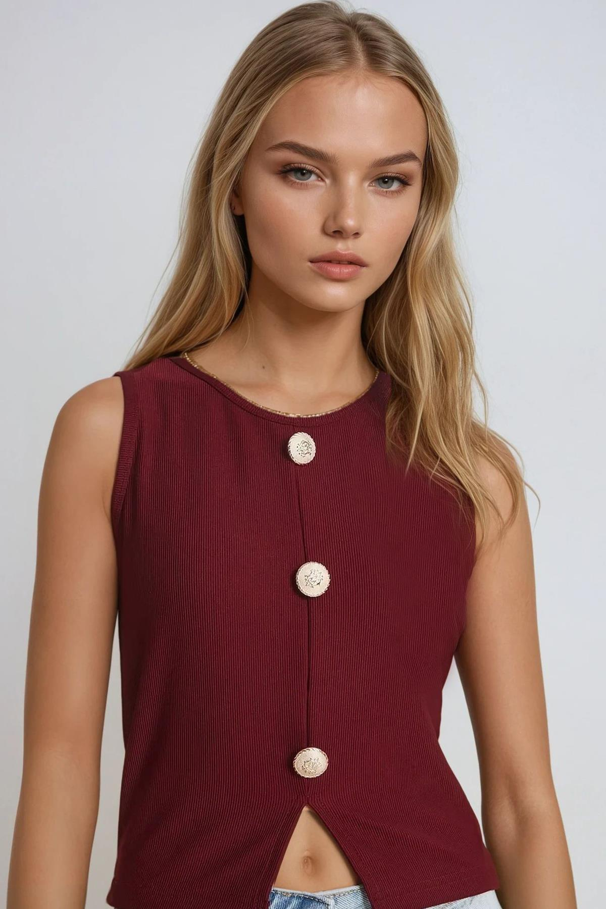 Bisiklet Yaka Gold Düğme Detaylı Ottoban Bluz - Bordo (ALC-X14054)
