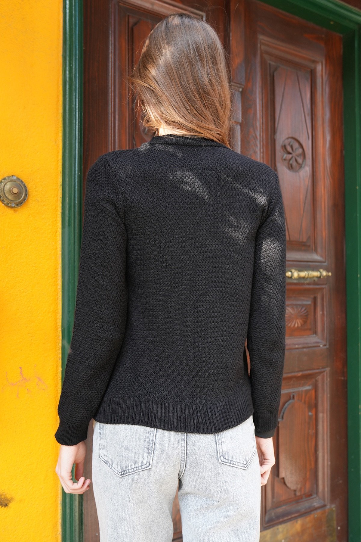 Bisiklet Yaka Gold Düğmeli Triko Hırka - SİYAH (VS01220)