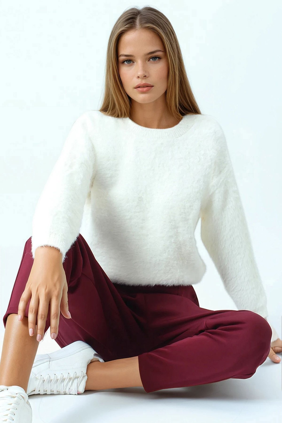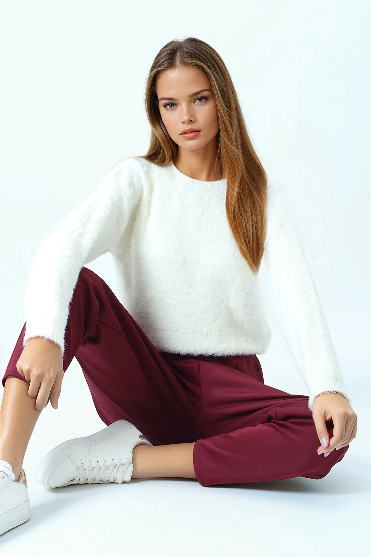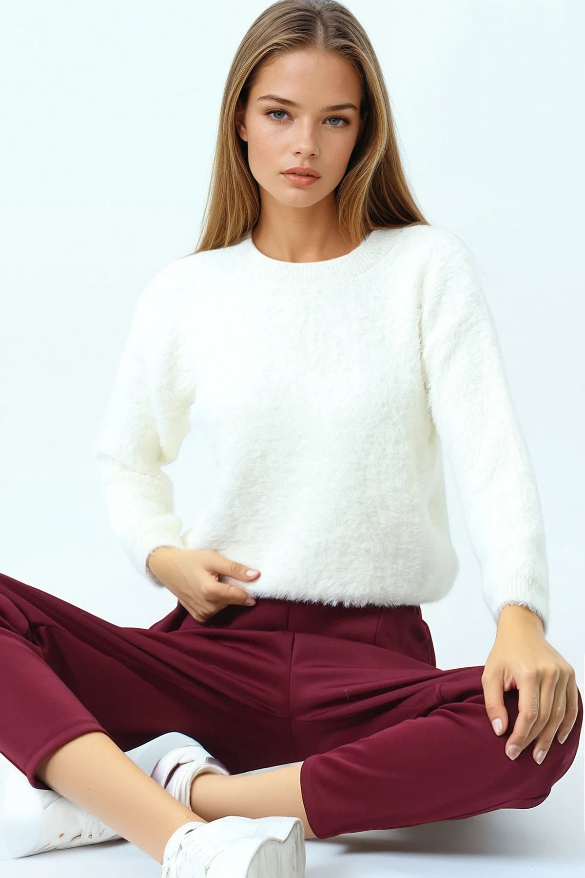 Bisiklet Yaka Püsküllü Triko Kazak - SİYAH Bisiklet Yaka Püsküllü Triko Kazak - EKRU Bisiklet Yaka Püsküllü Triko Kazak - BORDO