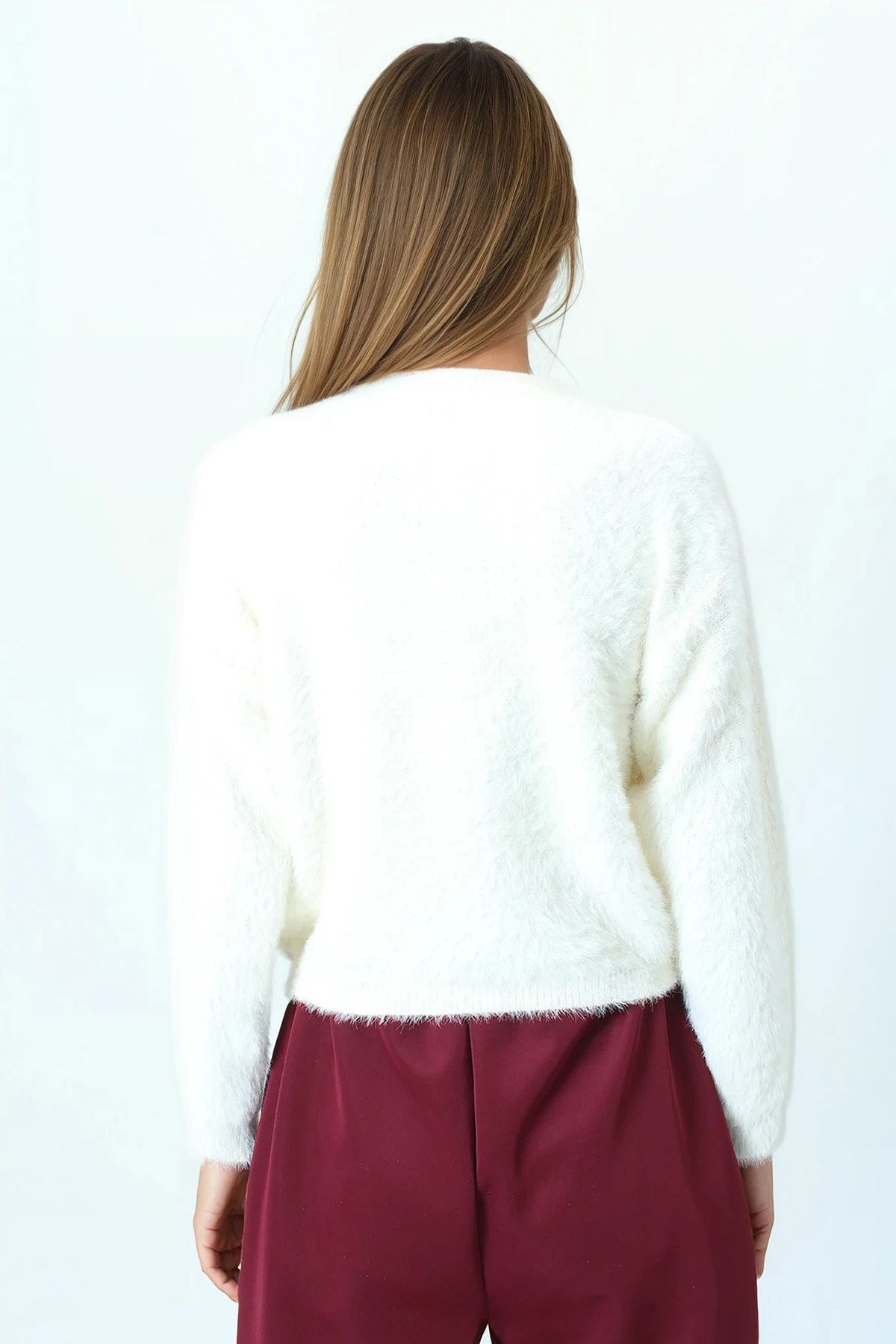 Bisiklet Yaka Püsküllü Triko Kazak - EKRU (VS01073)