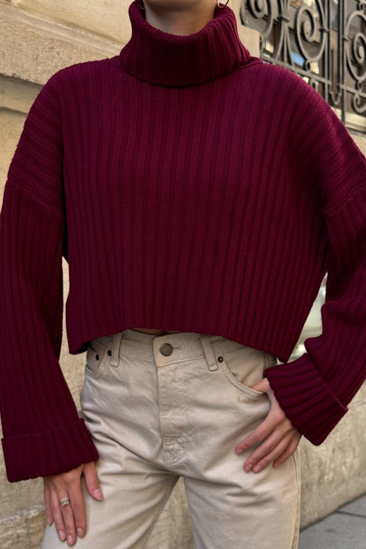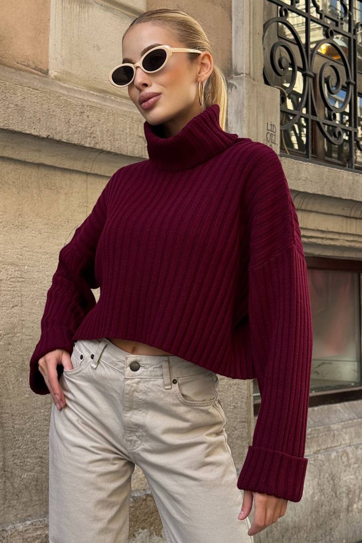 Boğazlı Fitilli Crop Triko Kazak;Stüdyo Çekimlerinde Renkler Işık Farklılığından Dolayı Değişiklik Gösterebilir.;Model Ölçüler: Boy: 1.67 Cm Göğüs: 75 Cm Bel: 62 Cm Kalça: 80 Cm Kilo: 45 Cm S/36/1 Beden