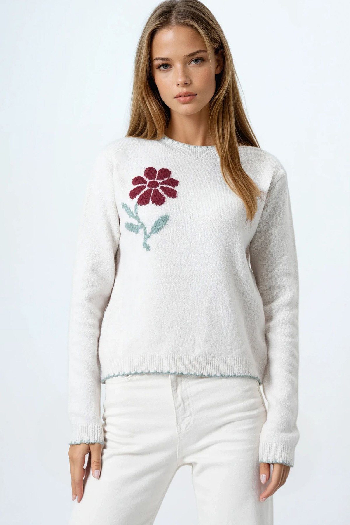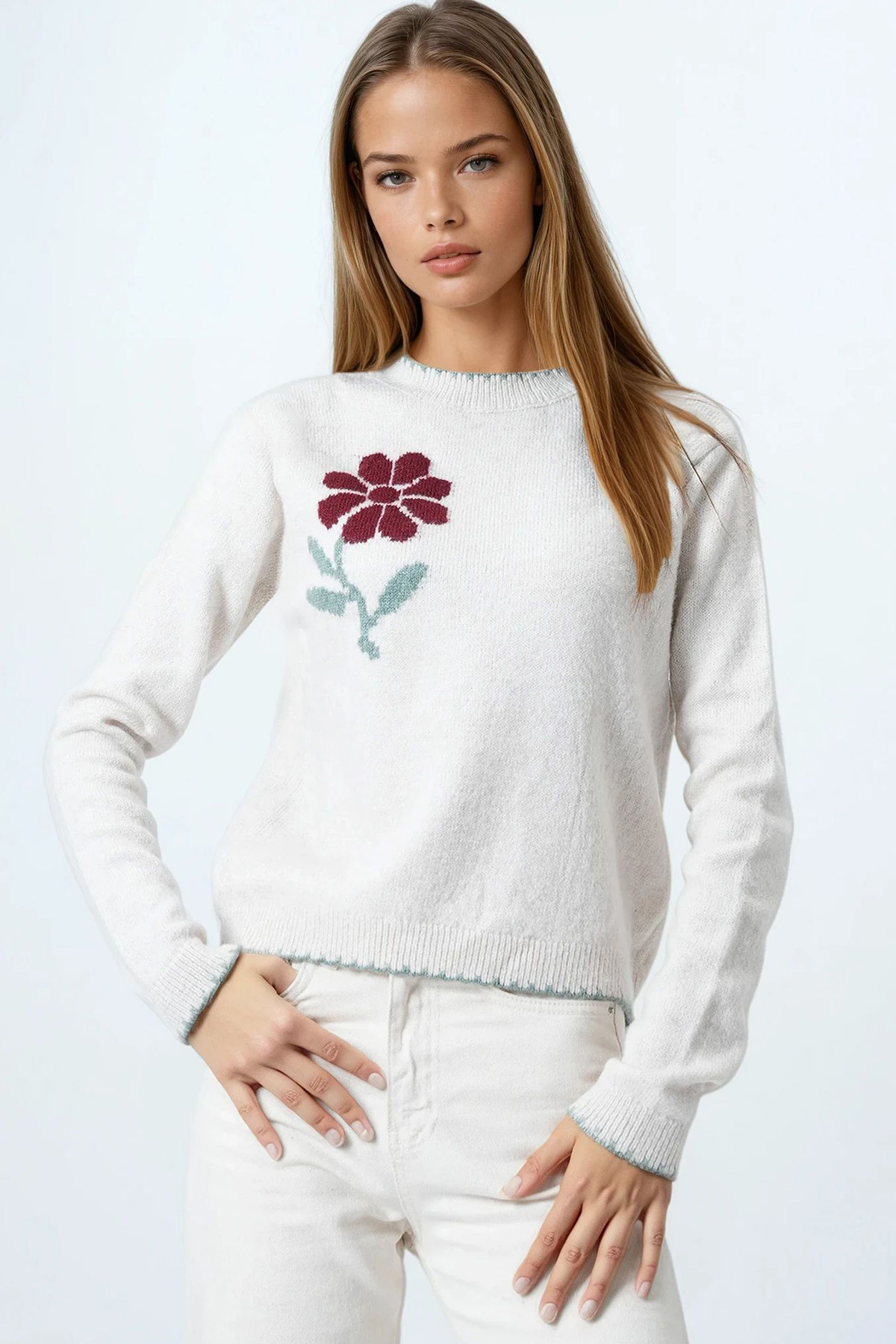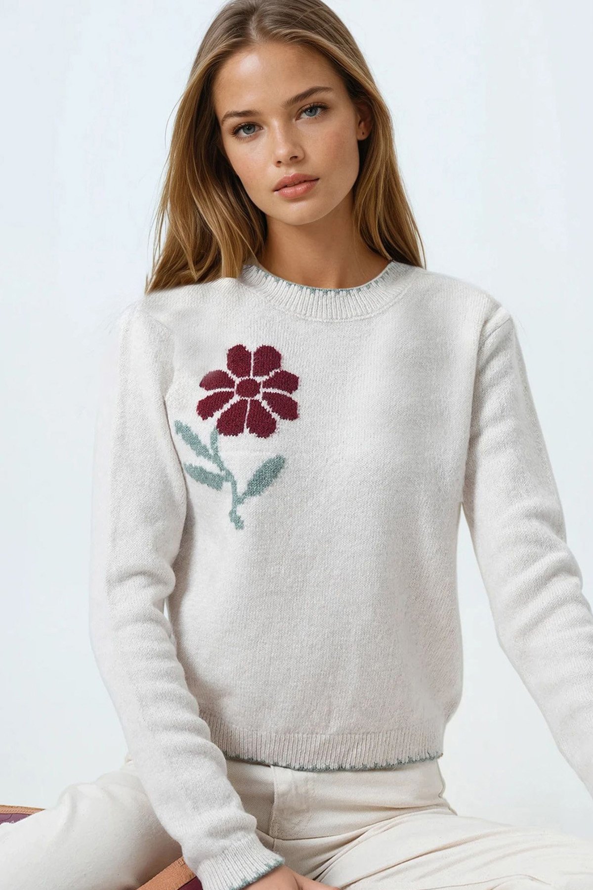 Çiçek Detaylı Bsiklet Yaka Triko Hırka - TAŞ (VS01065)