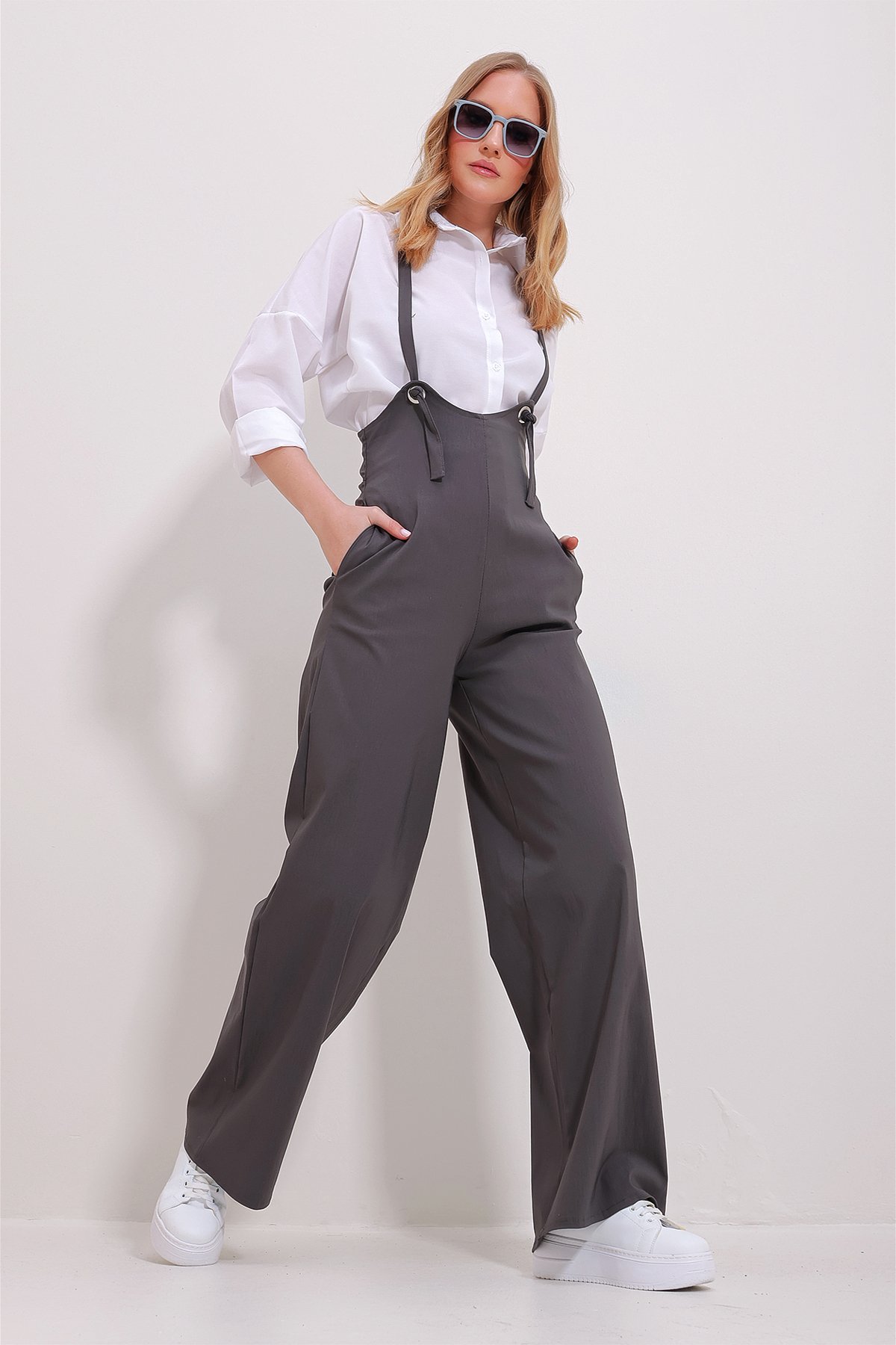 Kadın tulum modellerini hem spor ayakkabı hem de topuklu ayakkabılarla ve farklı çeşitler ile kolaylıkla kombin etmenizden ötürü kullanımının da oldukça rahat olduğunu biliriz. Bu sayede tulum gündelik yaşamın vazgeçilmez bir parçası haline gelmekte. Alaçatı Stili Çift Cepli Askılı Likralı Salopet Tulum Sizlerle!