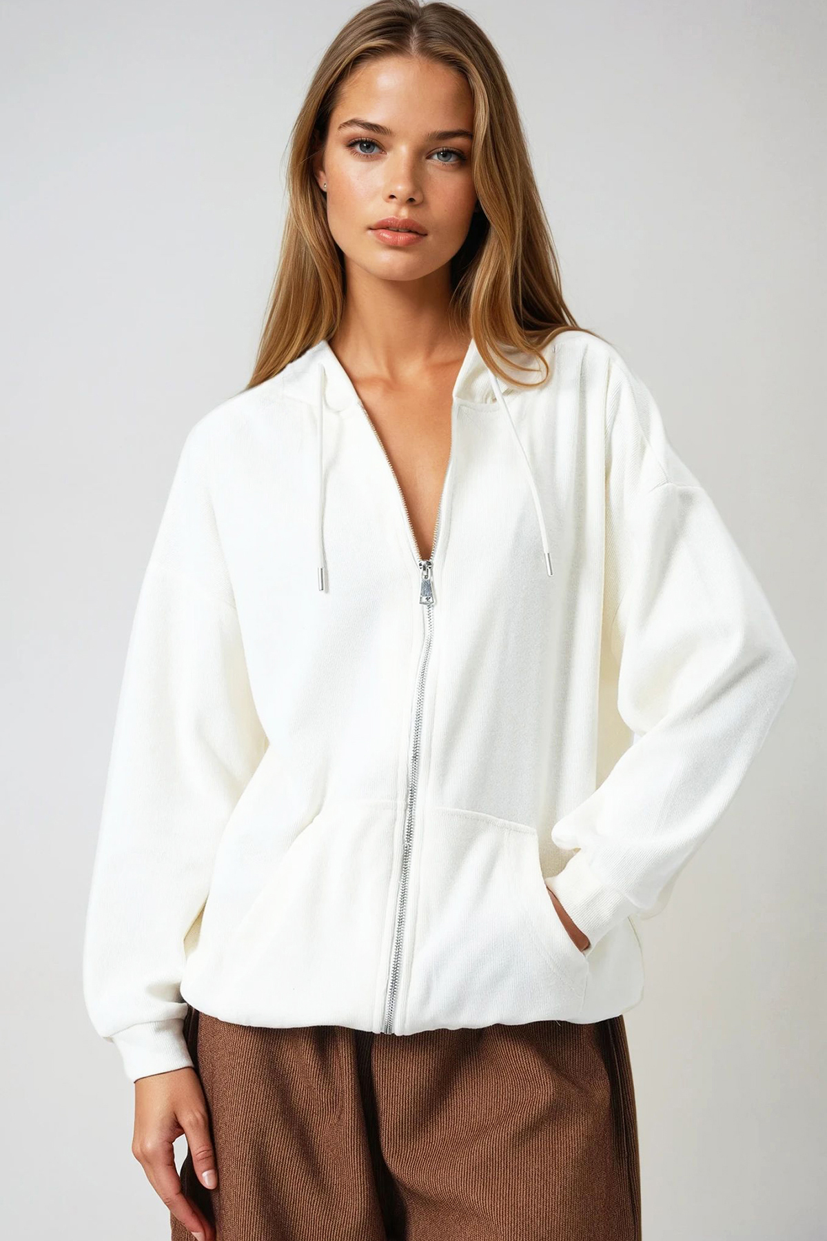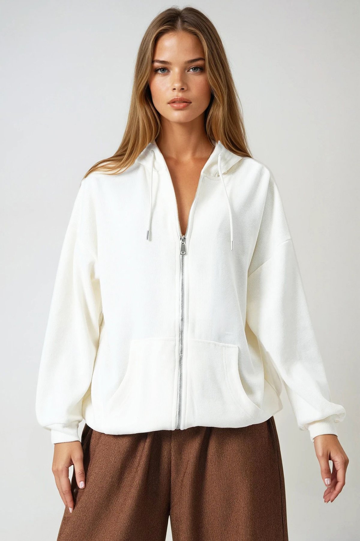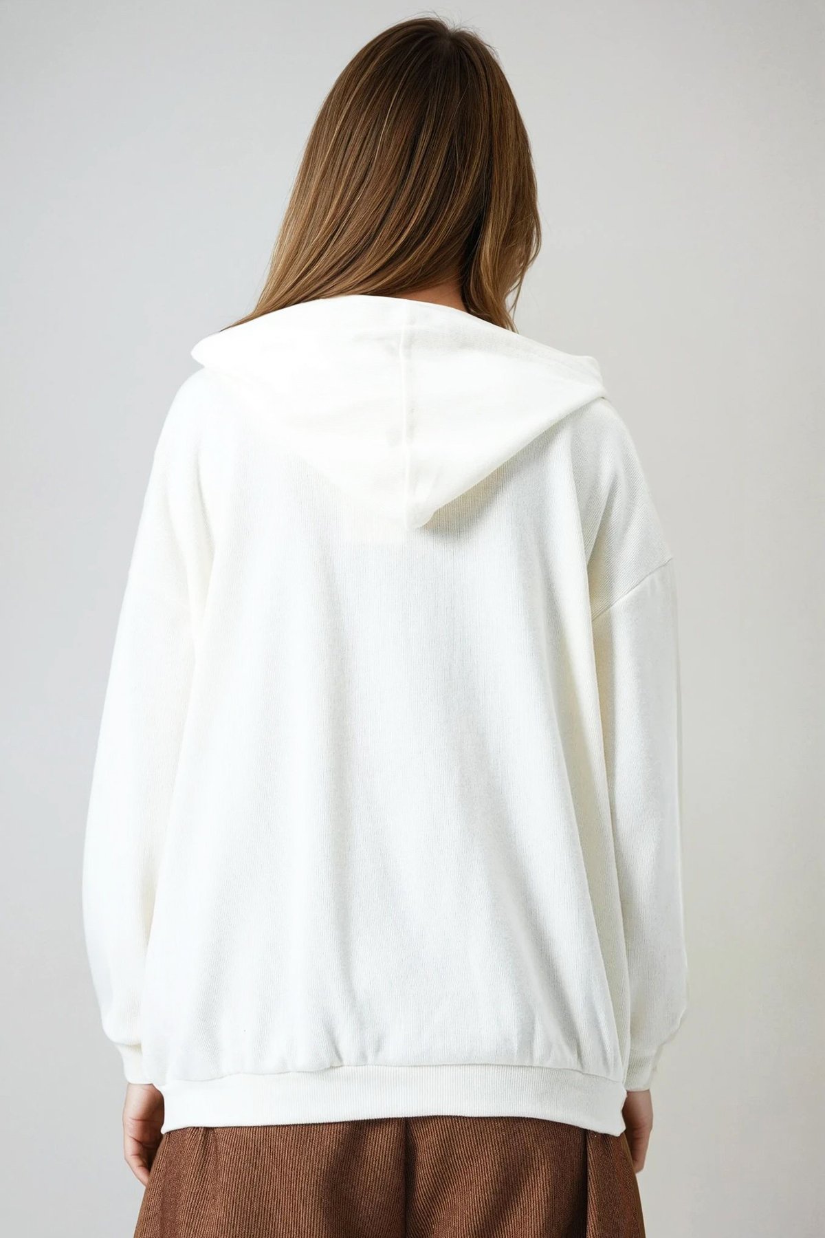 Çift Cepli Fermaur Kapamalı Kapüşonlu Hırka - EKRU (VS01015)