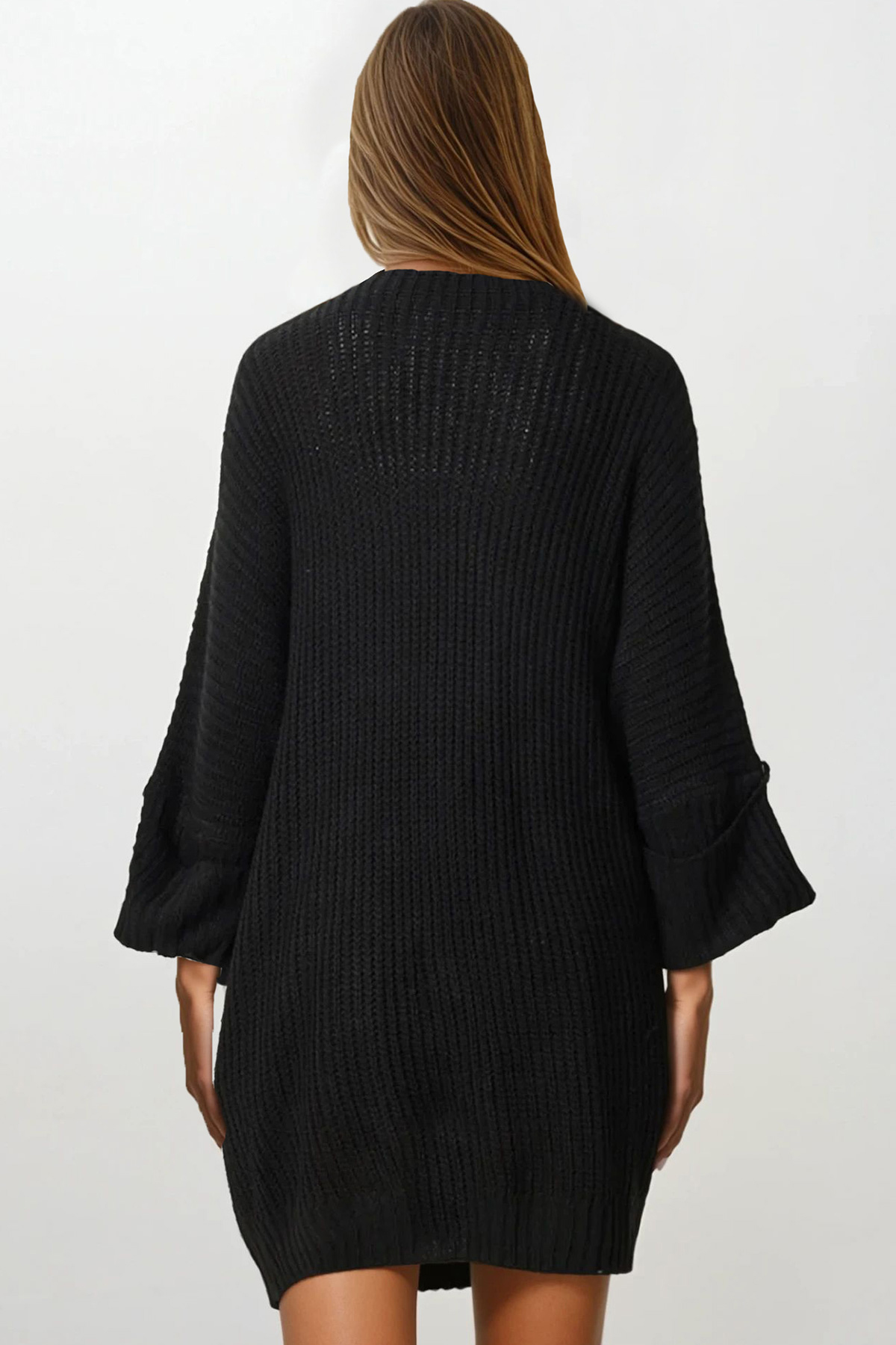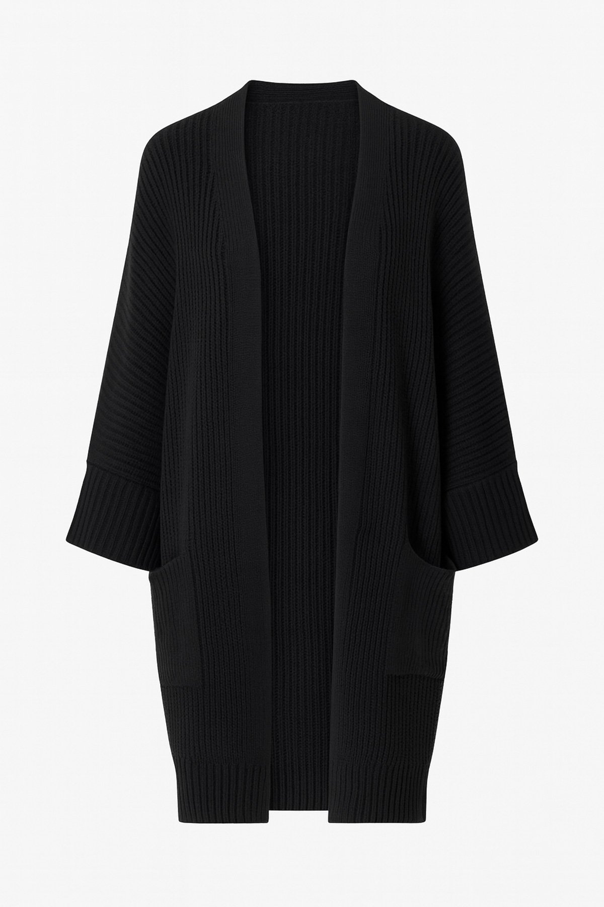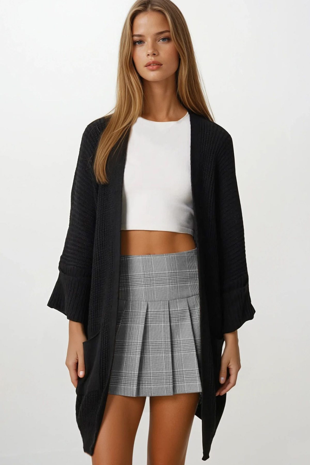 Kadın Siyah Çift Cepli Oversize Triko Hırka VS00737 (VS00737)