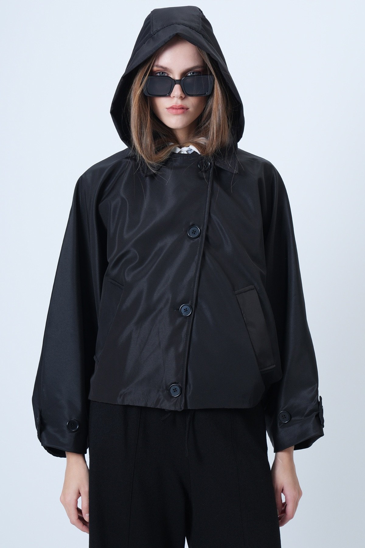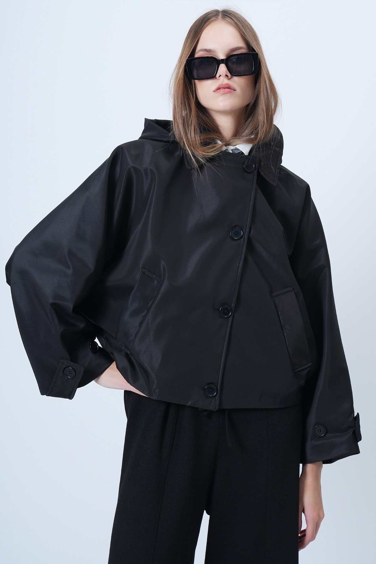 Çift Ceplidüğme Kapamalı Kısa Trençkot - SİYAH Çift Ceplidüğme Kapamalı Kısa Trençkot - HAKİ