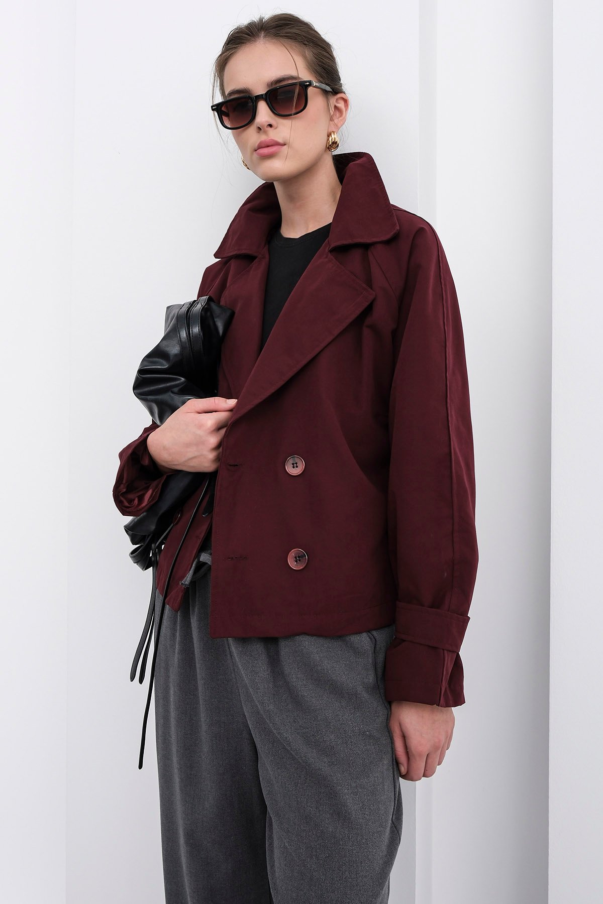 Kadın Bordo Çift Ddüğmeli Kruvaze Yaka Kısa Trençkot VS01233 (VS01233)
