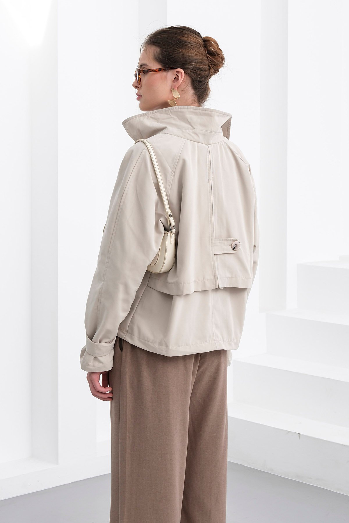 Kadın Taş Çift Ddüğmeli Kruvaze Yaka Kısa Trençkot VS01233 (VS01233)