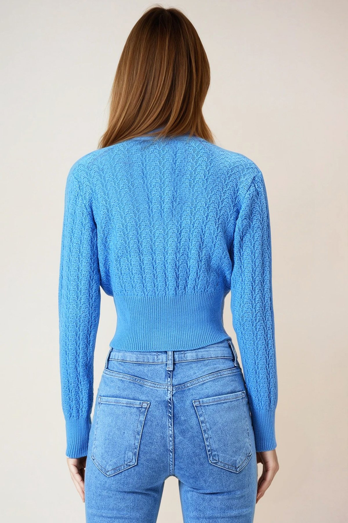 Desenli Bisiklet Yaka Uzun Kollu Triko Kazak - MAVİ (VS01043)