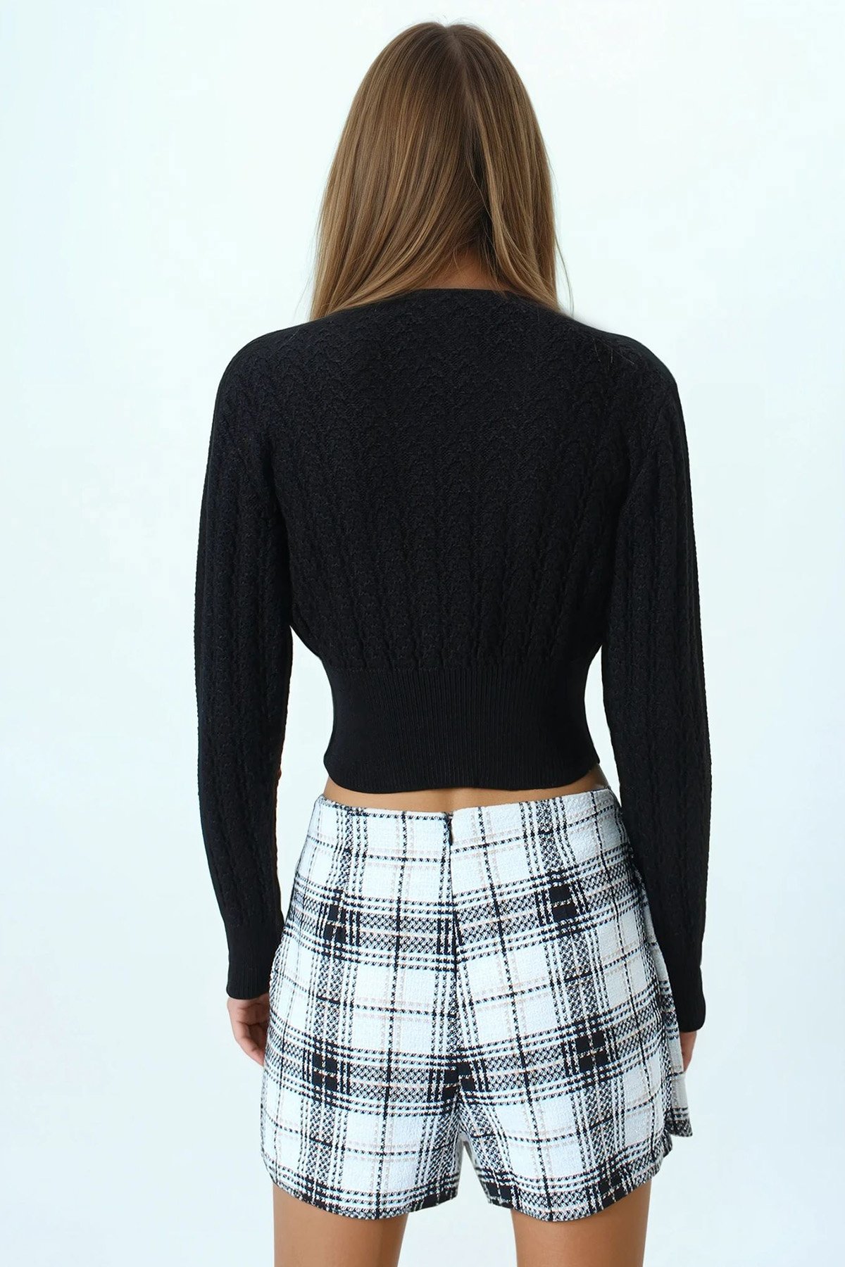 Desenli Bisiklet Yaka Uzun Kollu Triko Kazak - SİYAH (VS01043)