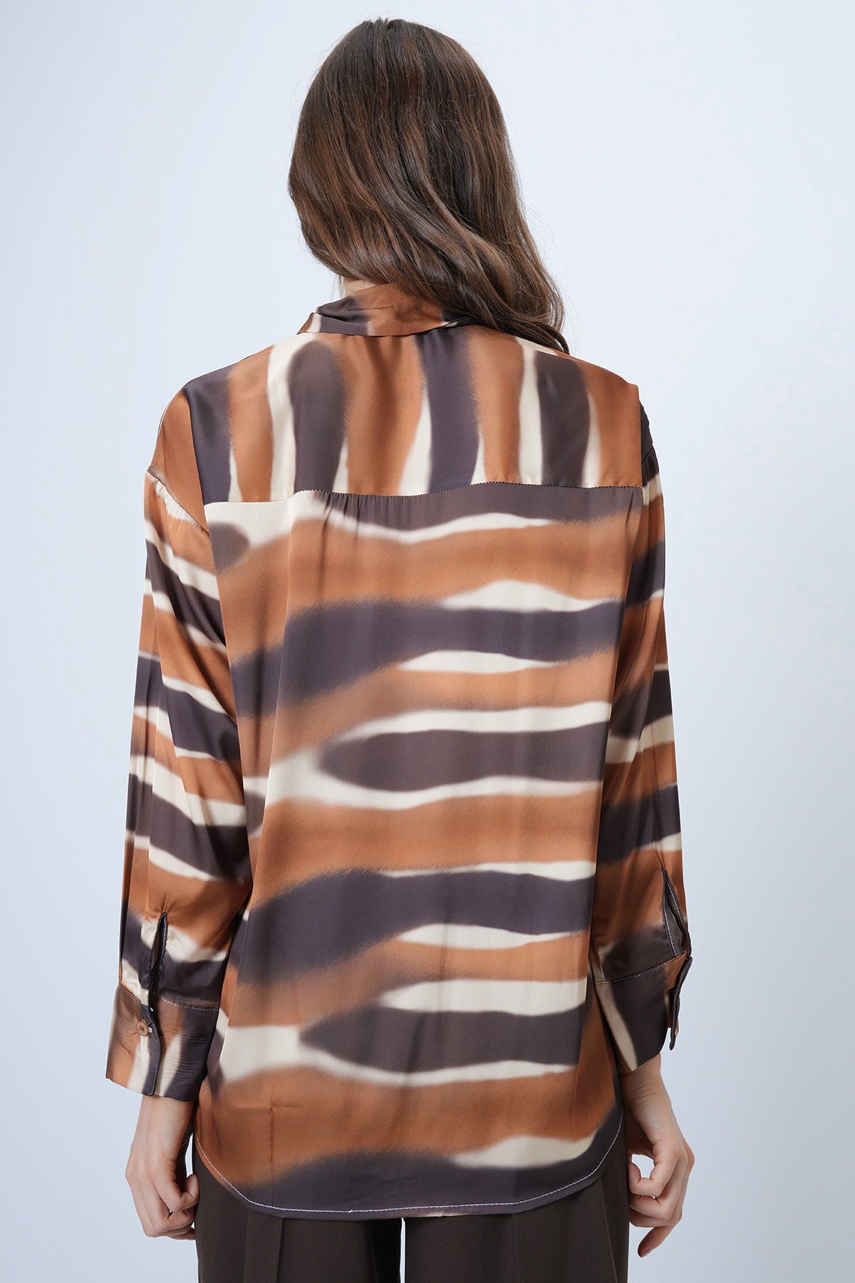 Desenli Saten Gömlek - CAMEL-KAHVE Desenli Saten Gömlek - BEJ-KAHVE