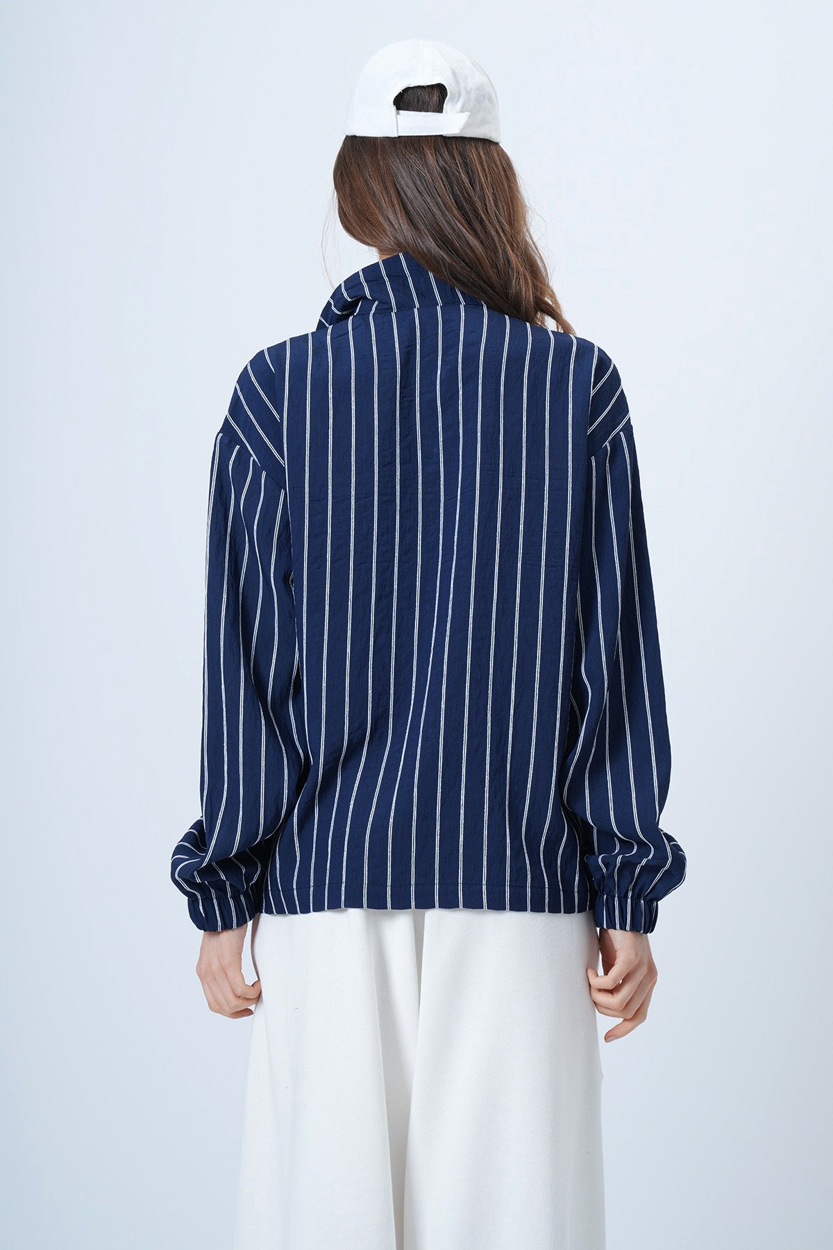 Dik Yaka Çizgili Cepli Dokuma Sweatshirt - LACİVERT (VS01315)
