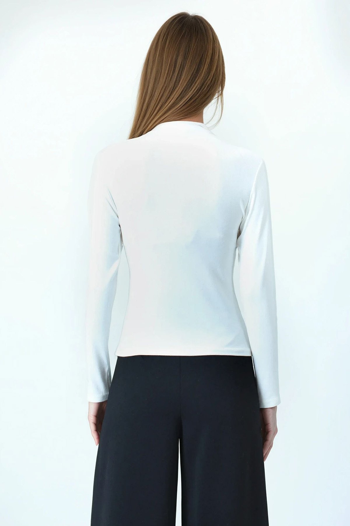 Dik Yaka Önü Çımalı Basic Bluz - EKRU (VS01072)