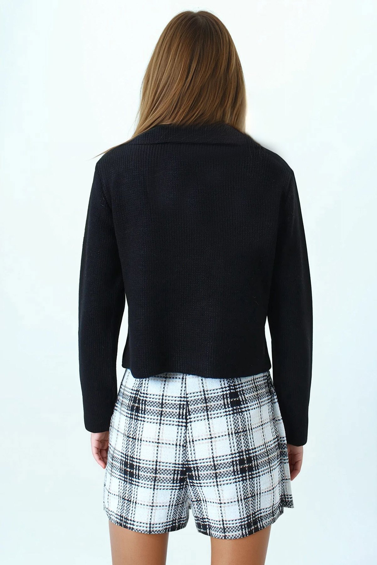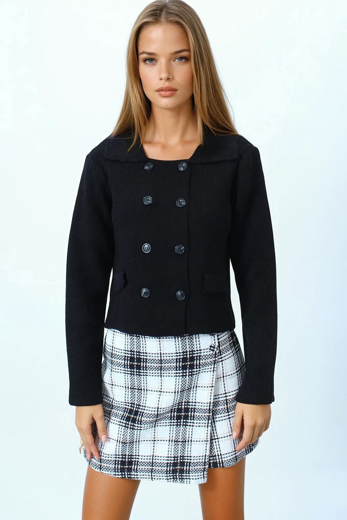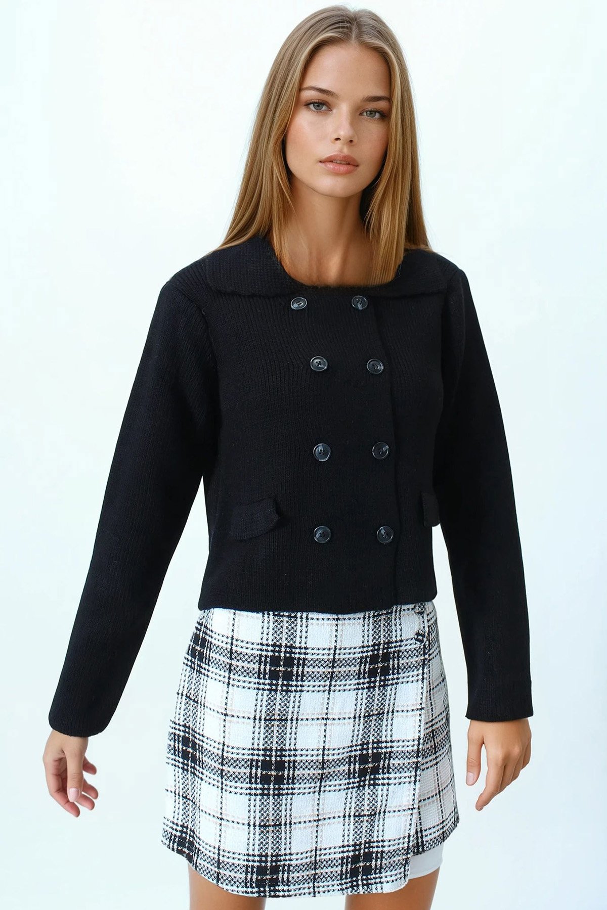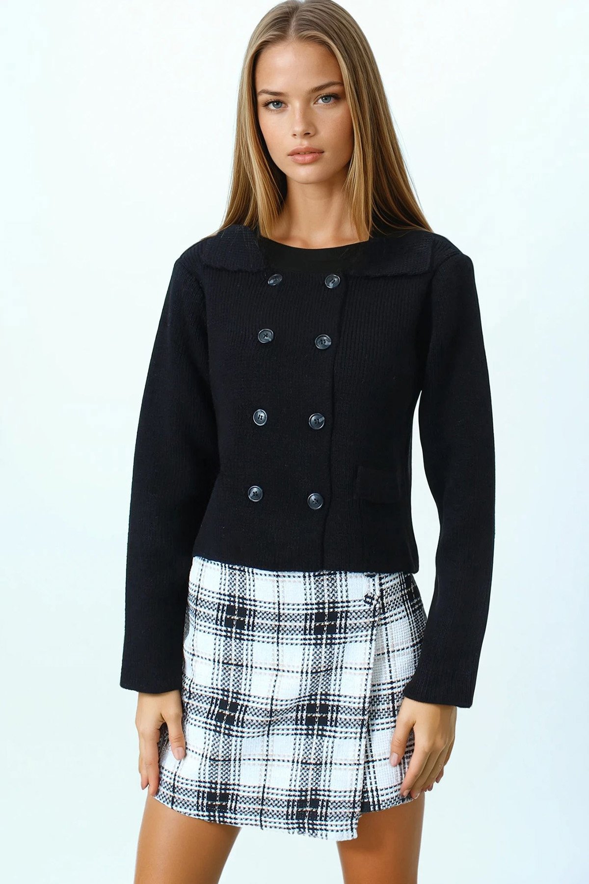 Düğmeli Cep Detaylı Triko Hırka - SİYAH (VS01062)