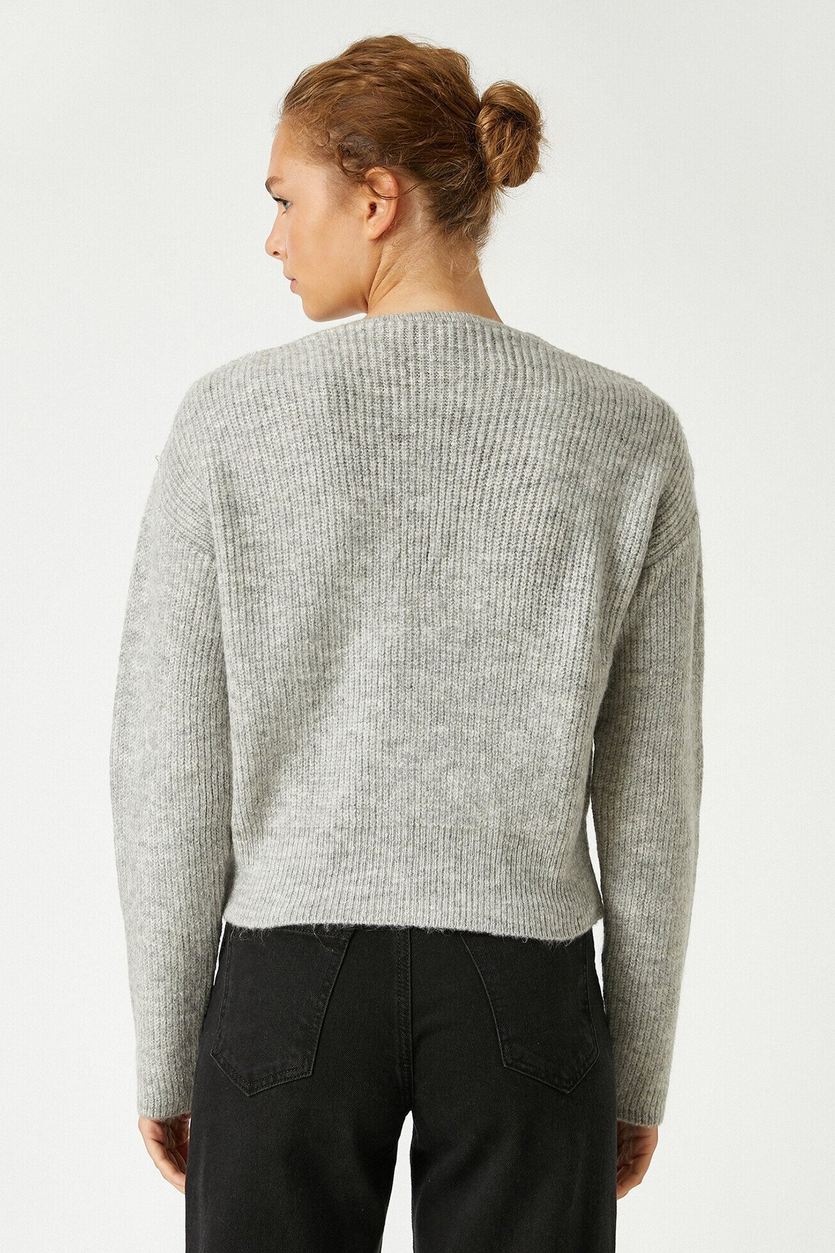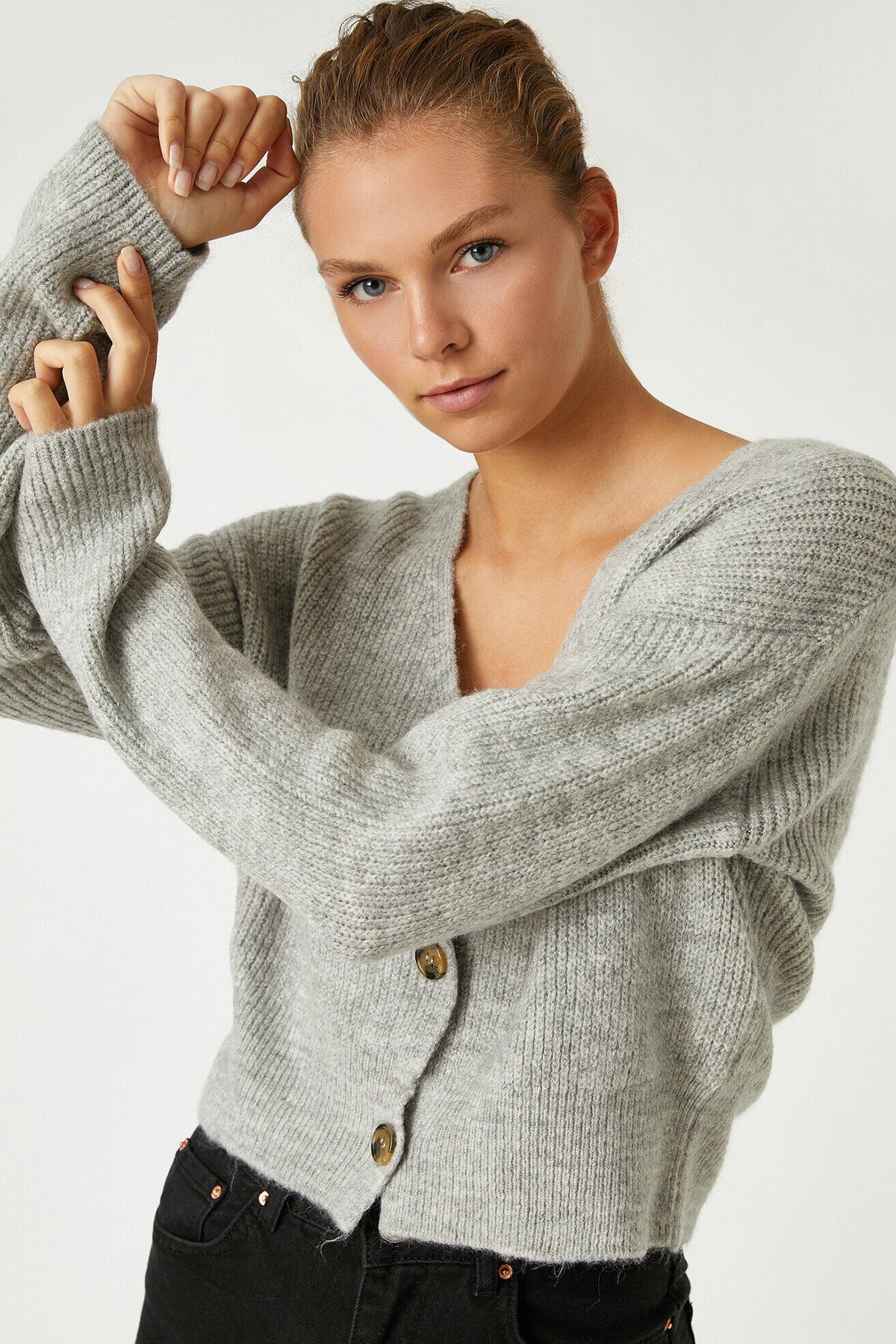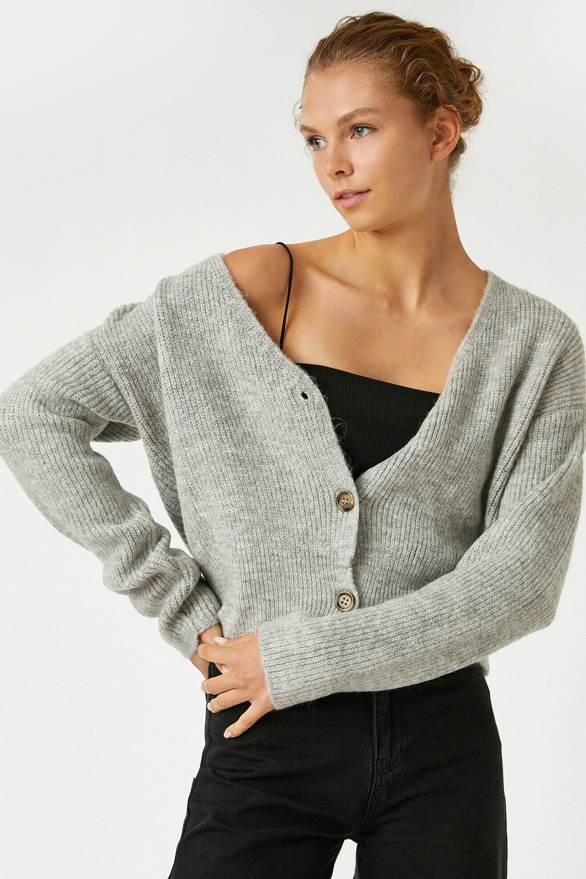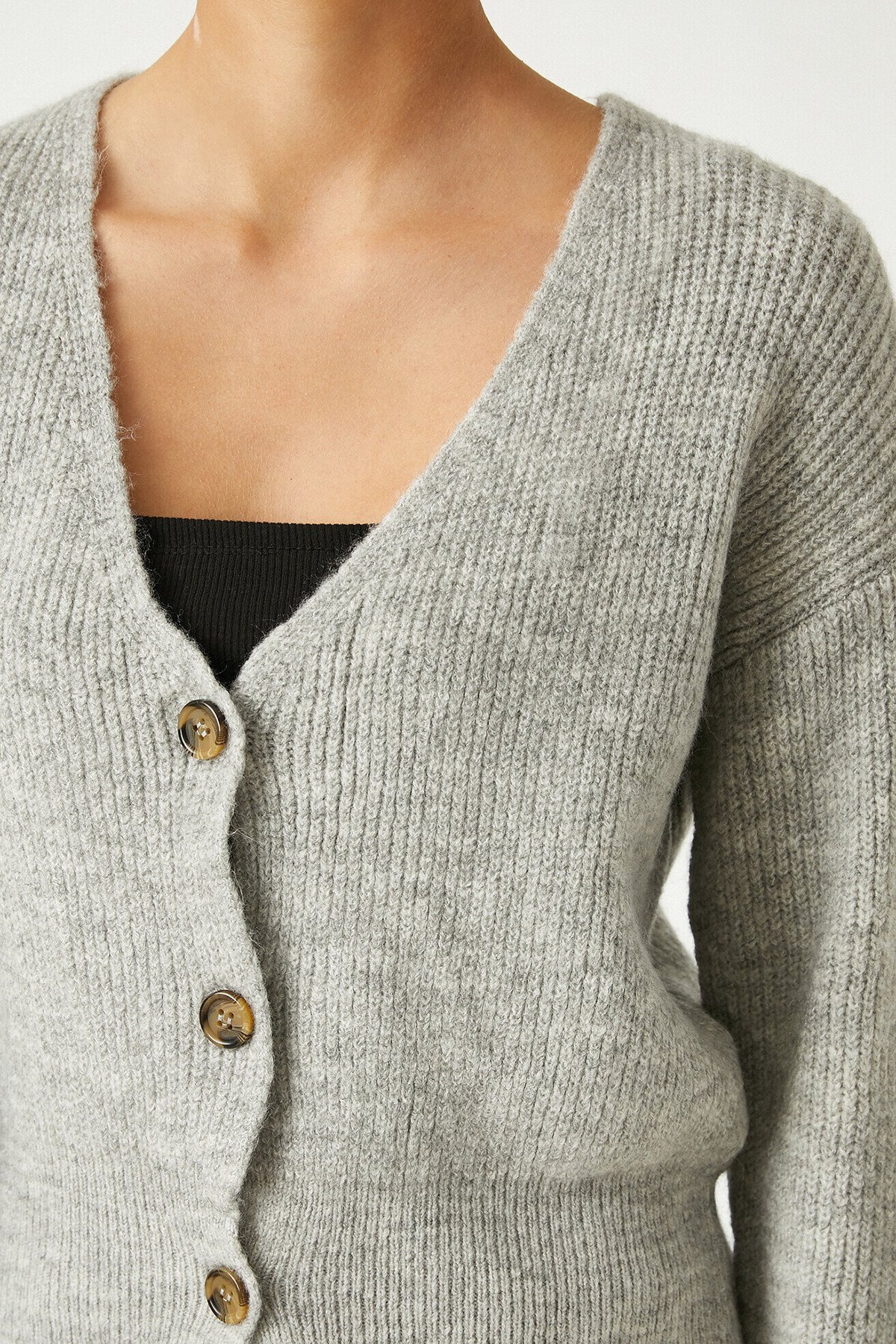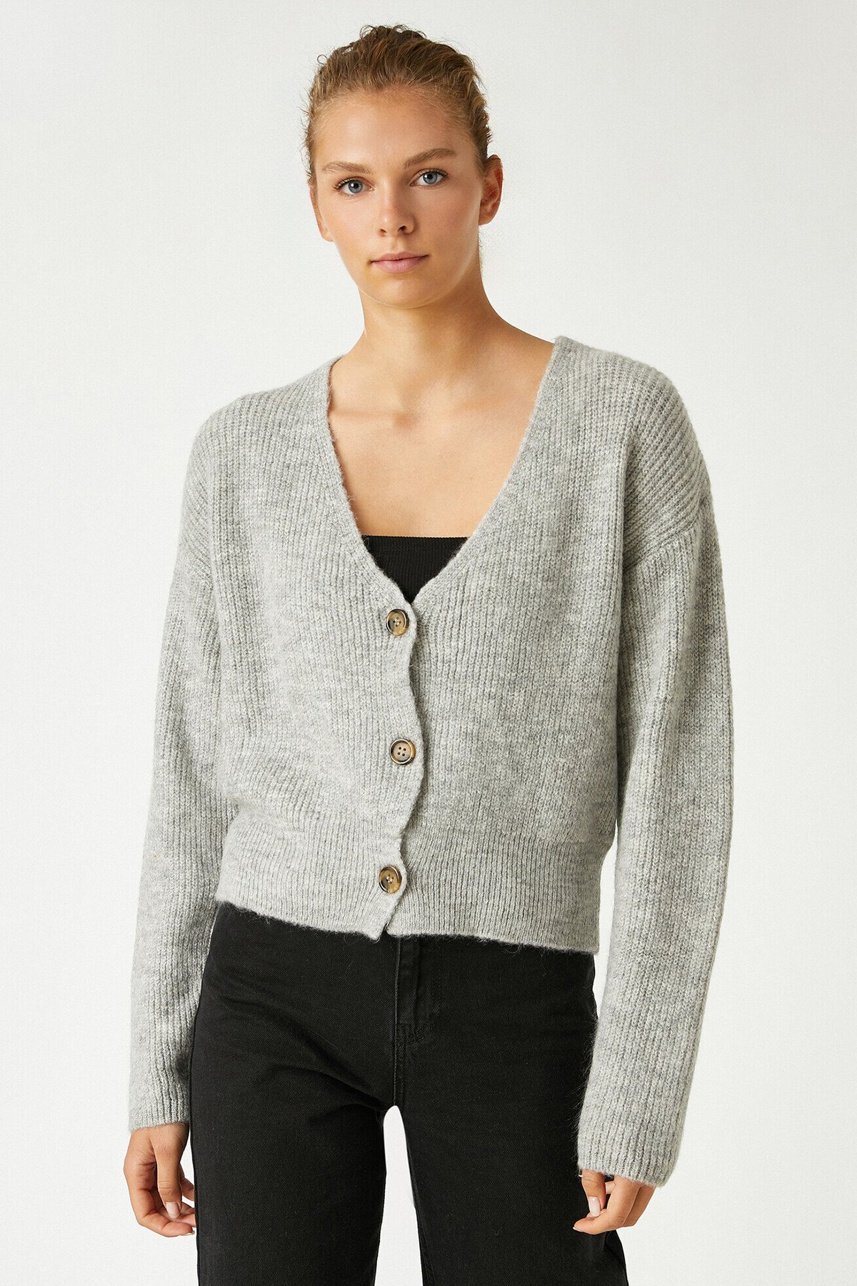 Düğmeli V Yaka Triko Hırka - GRİ (VS01280)