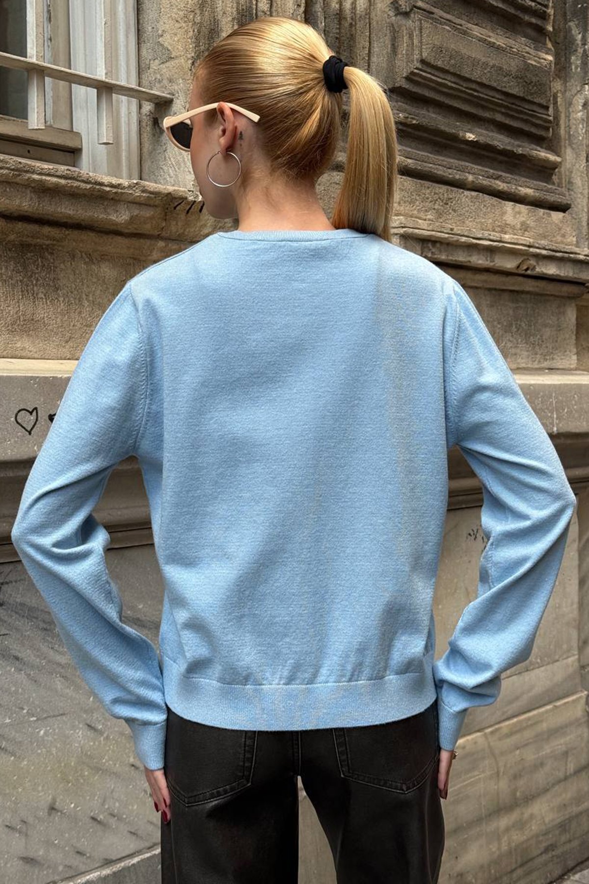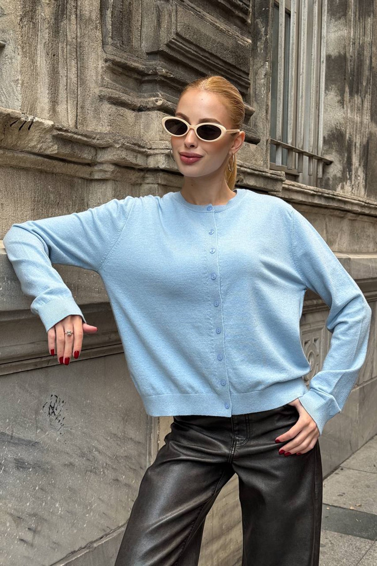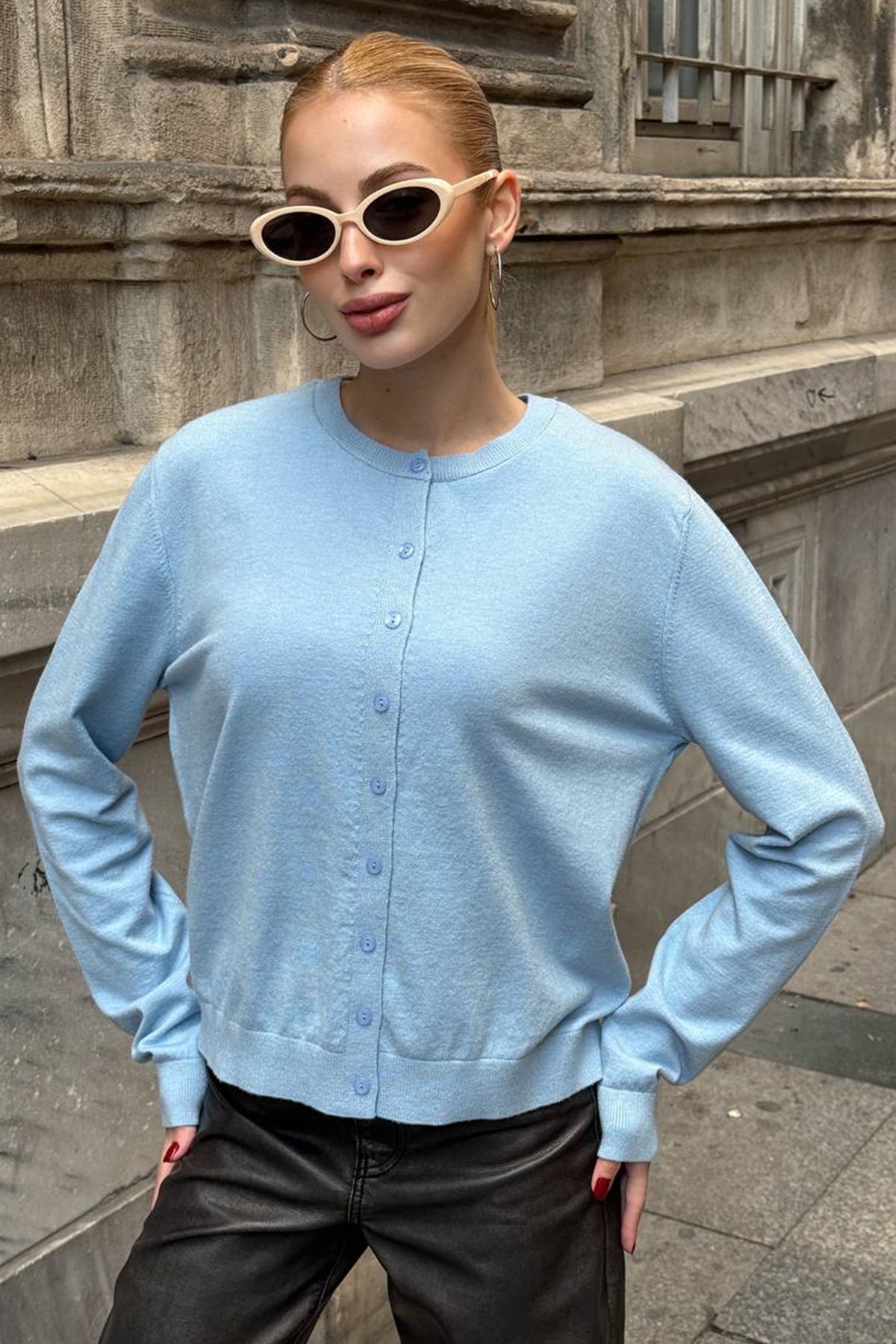 Kadın BEBE MAVİ Bisiklet Yaka Düğmeli Triko Hırka VS01640 (VS01640)