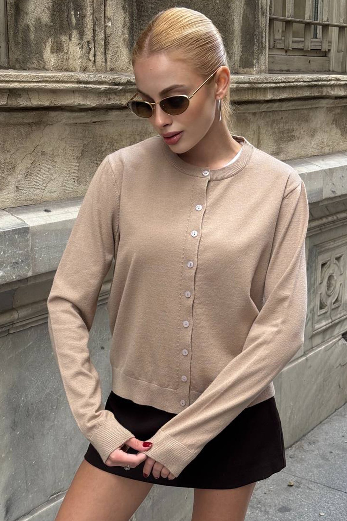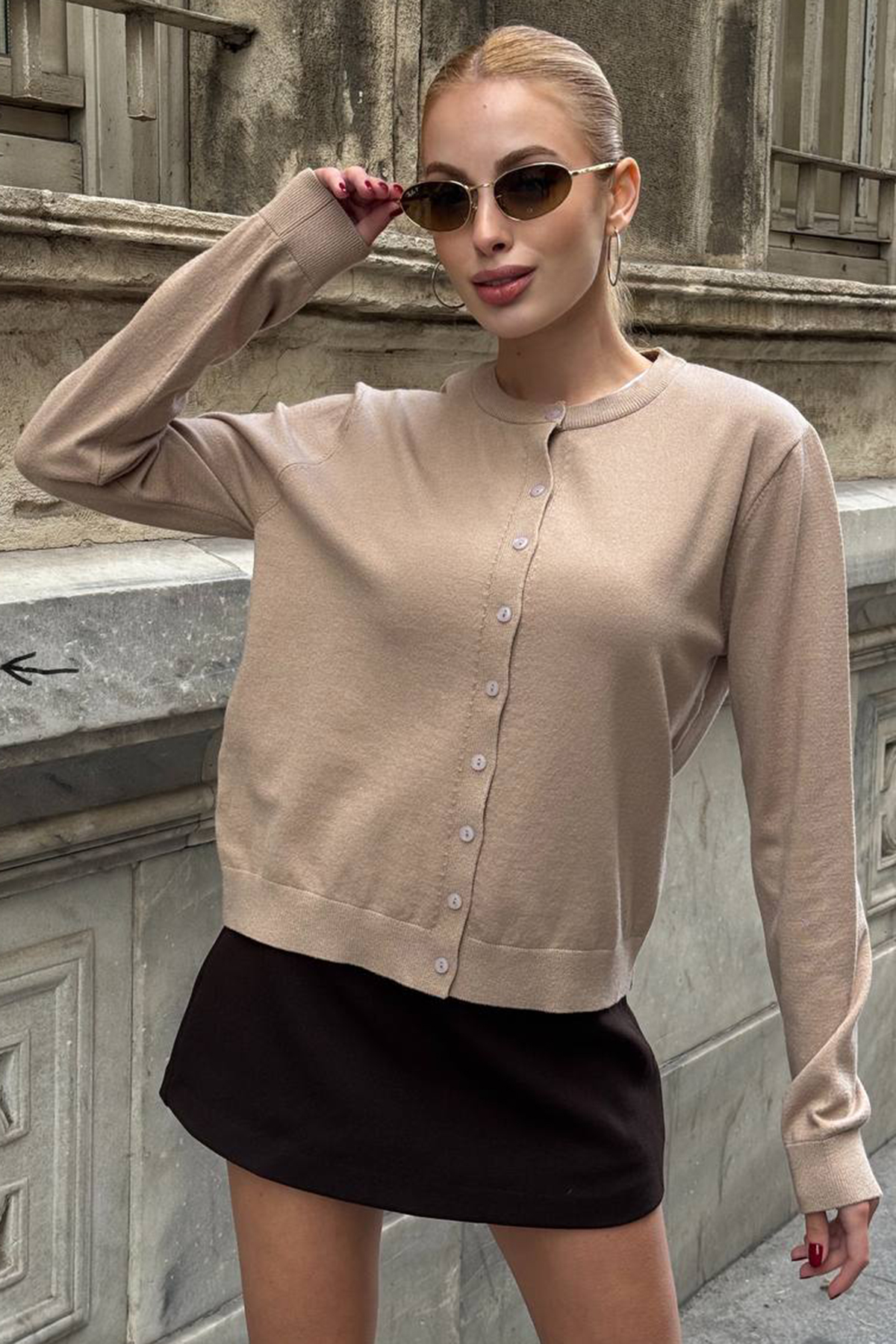 Kadın BEJ Bisiklet Yaka Düğmeli Triko Hırka VS01640 (VS01640)