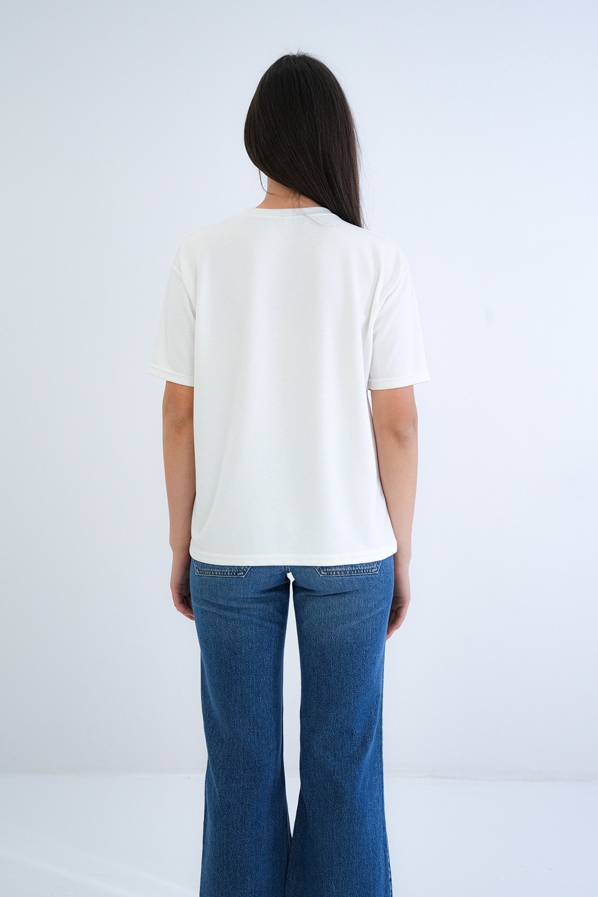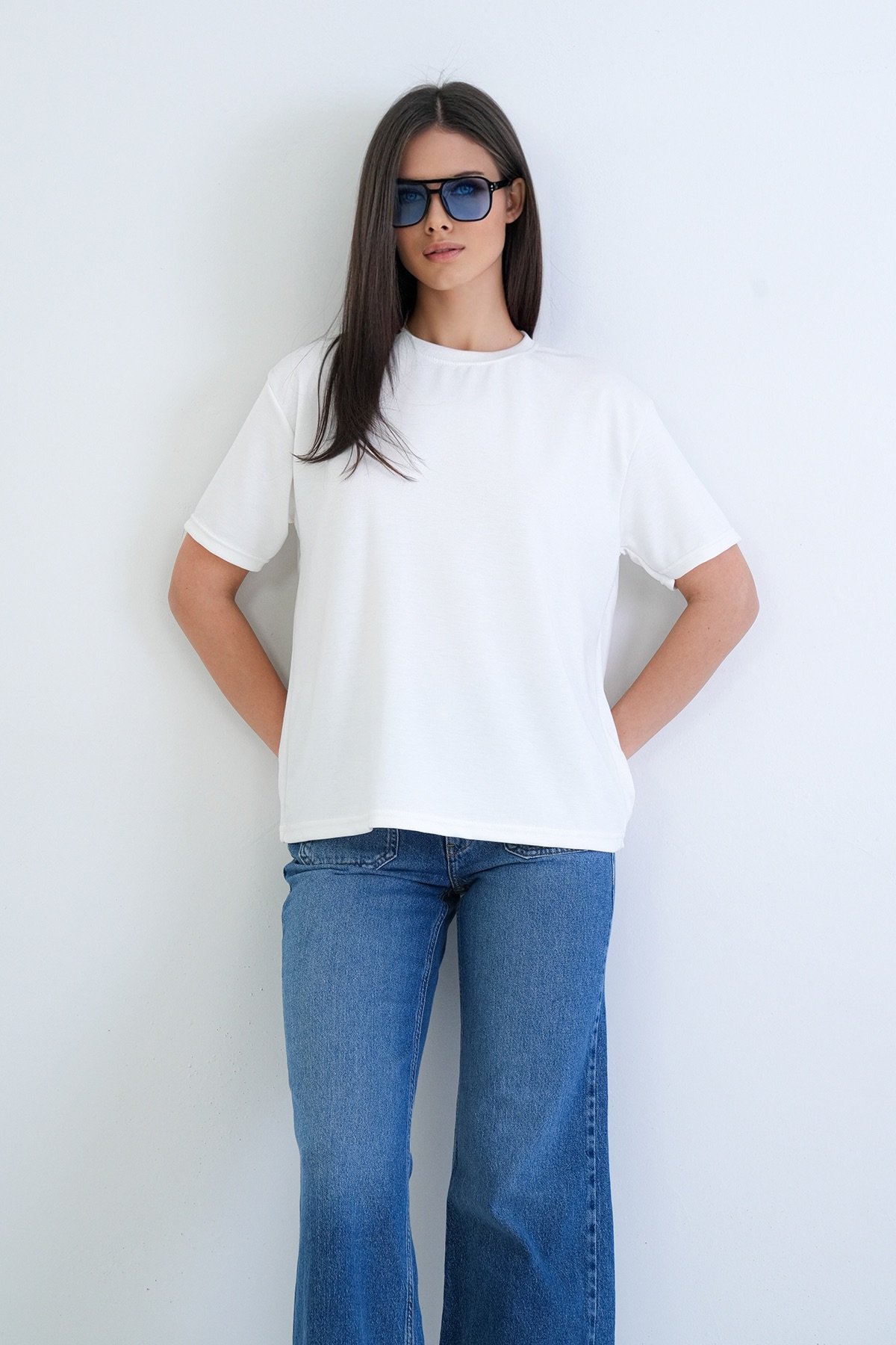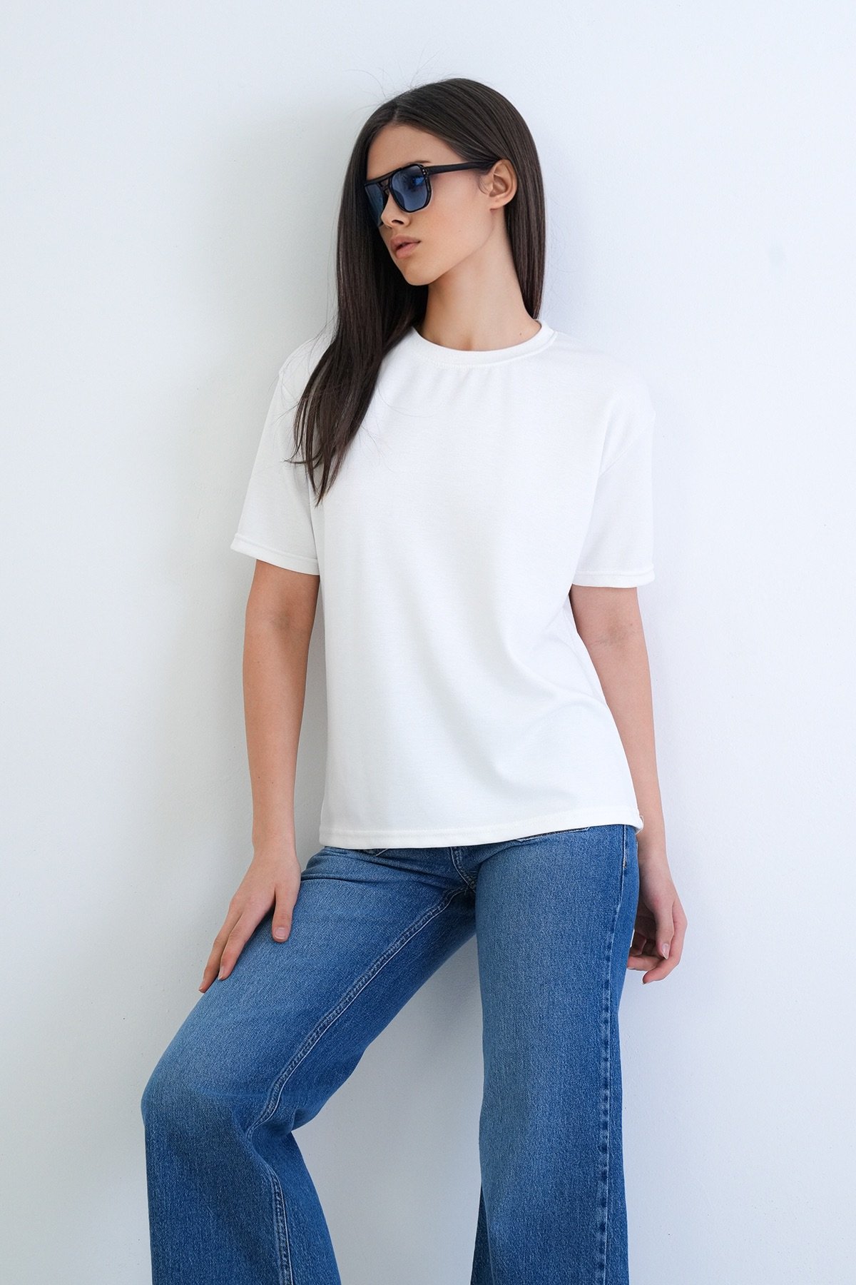 Kadın Siyah Bisiklet Yaka Oversize T-Shirt Alc-X15262 Kadın Lacivert Bisiklet Yaka Oversize T-Shirt Alc-X15262 Kadın Ekru Bisiklet Yaka Oversize T-Shirt Alc-X15262