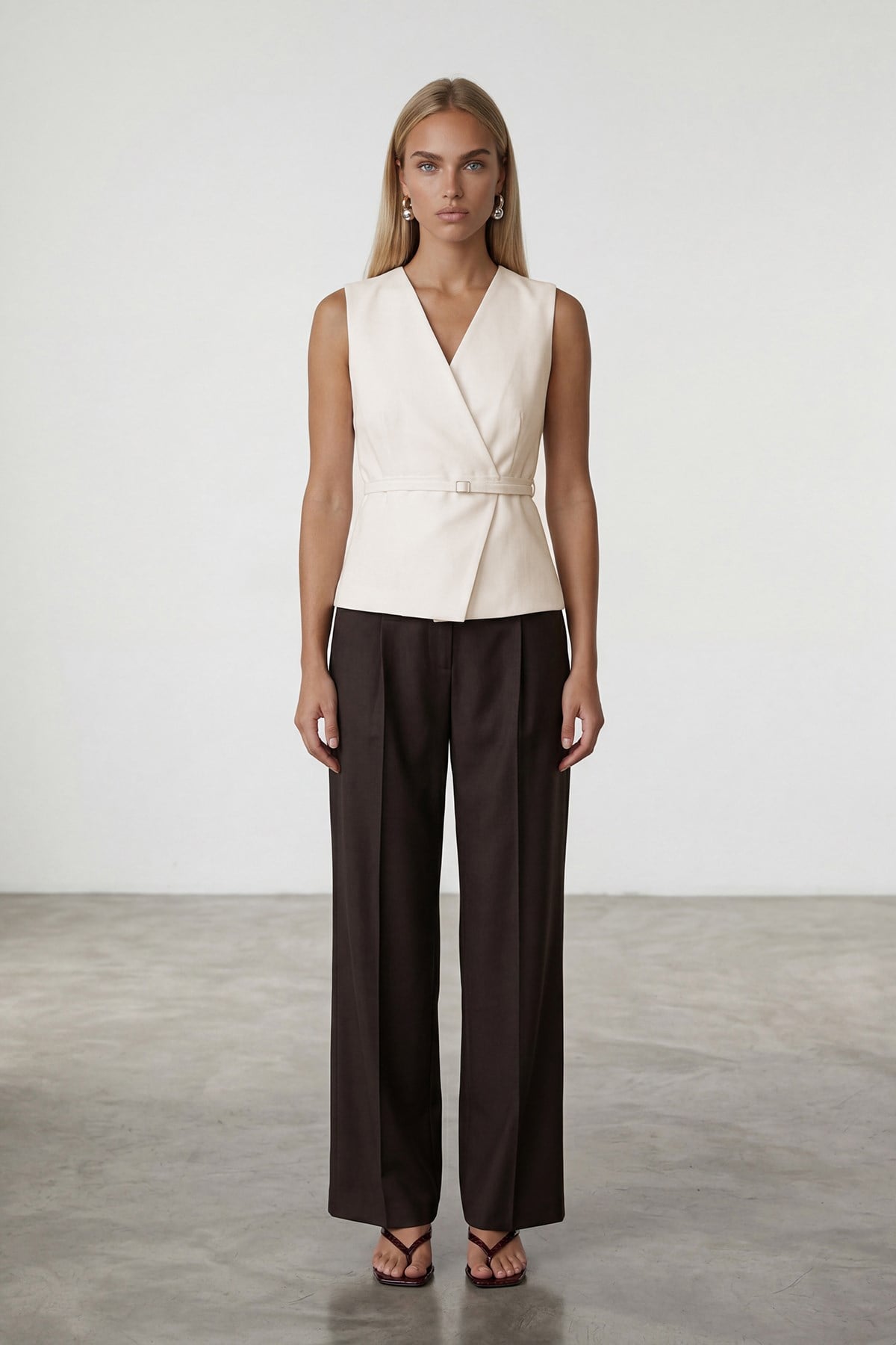 Kadın Ekru Kemerli Anvelop Kapamalı İçi Astarlı Yelek Alc-X15468 (ALC-X15468)