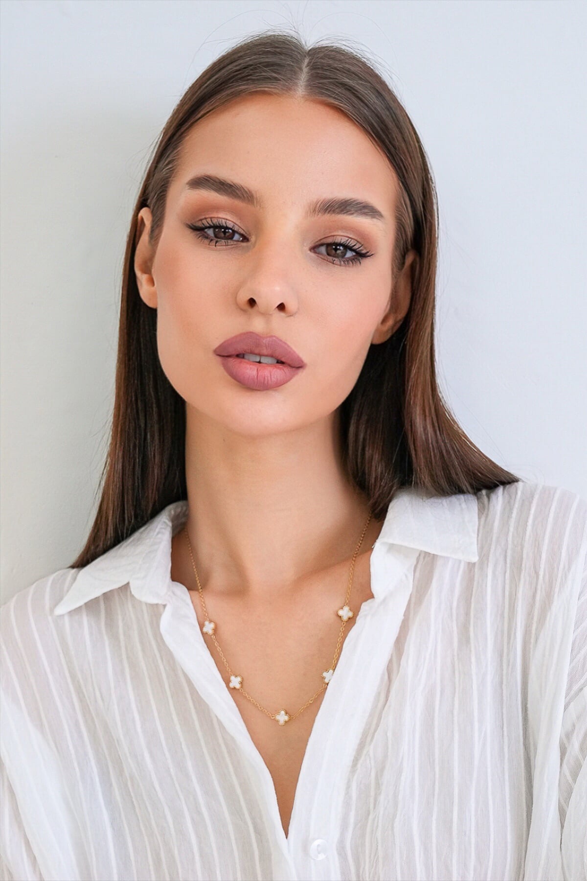 Kadın Gold Çelik Sedef Taşlı Mini Yonca Kolye Alc-X15349 (ALC-X15349)
