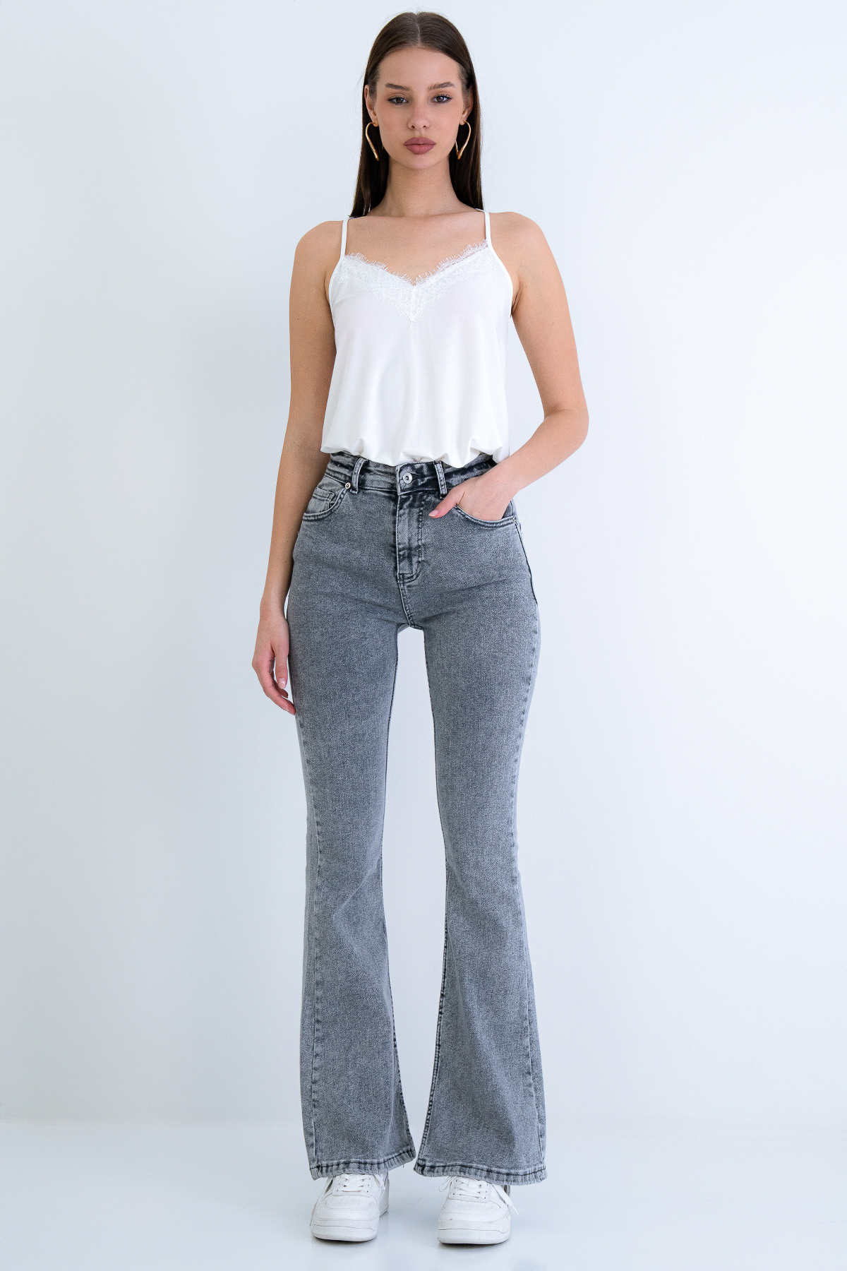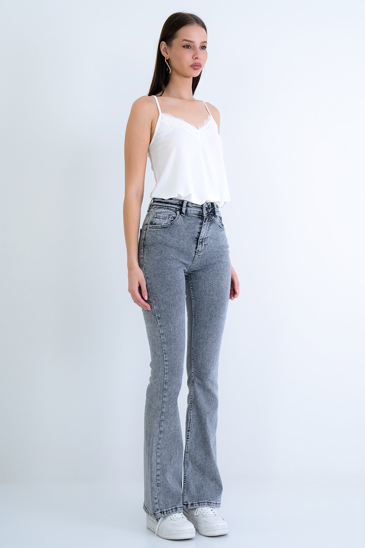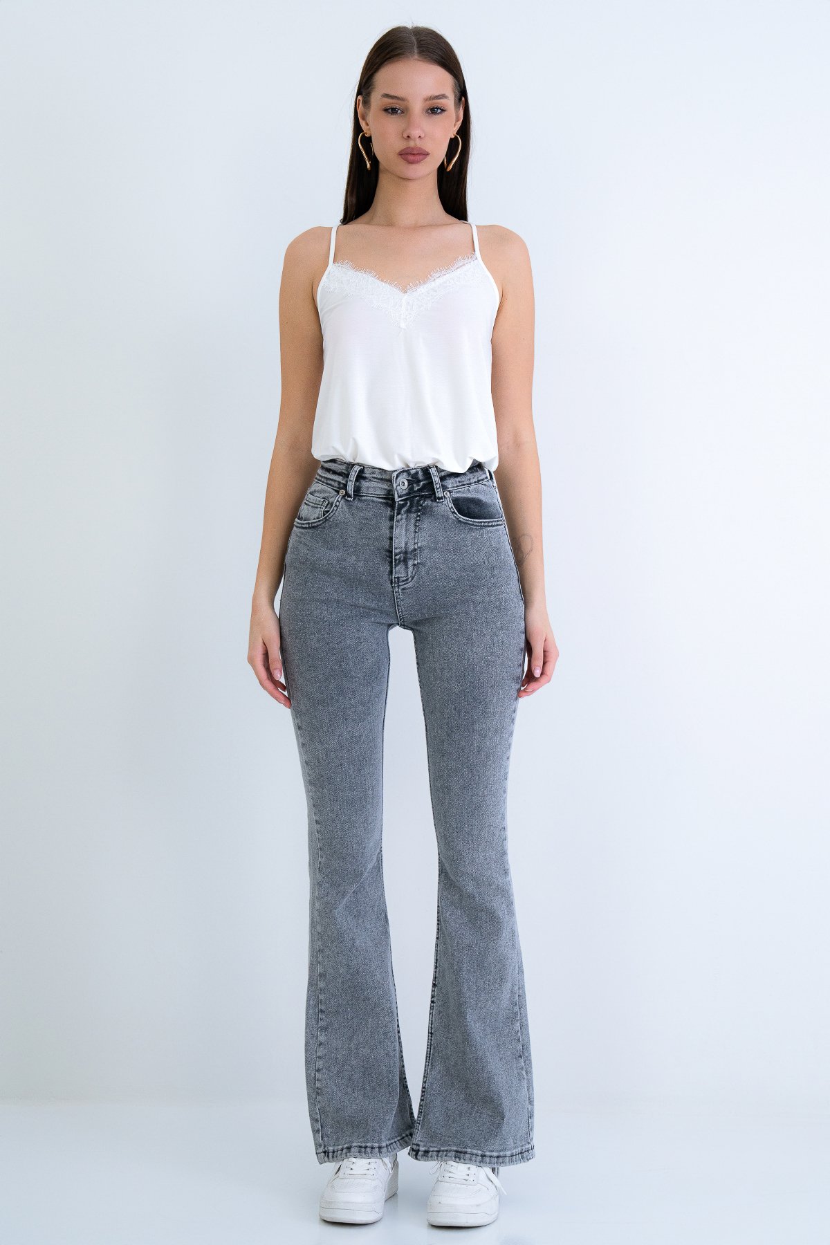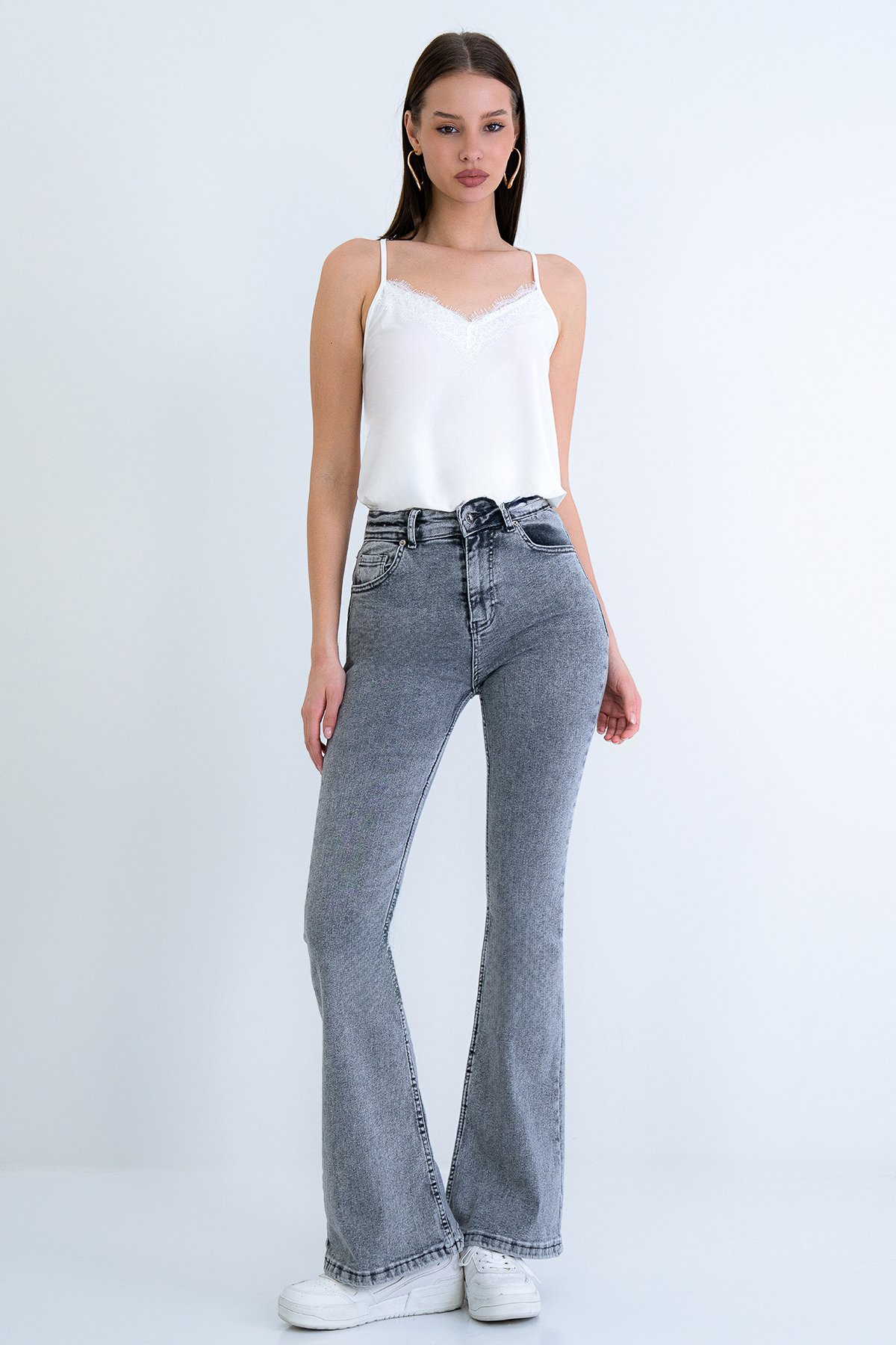 Kadın Gri 5 Cepli Full Likra İspanyol Paça Jean Vs00709 (VS00709)