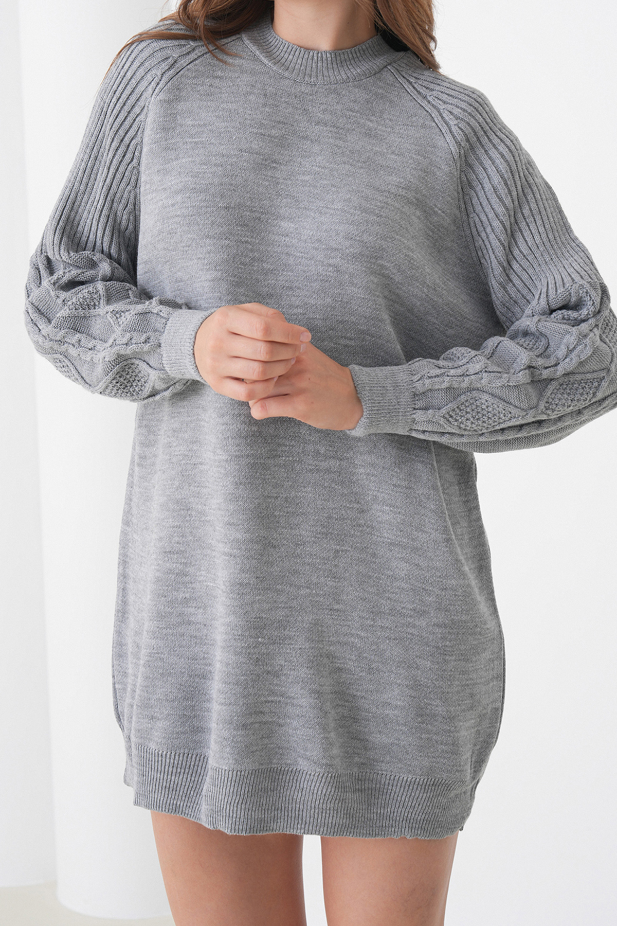 Kadın GRİ Örgü Detaylı Balon Kollu Triko Elbise VS01437 (VS01437)
