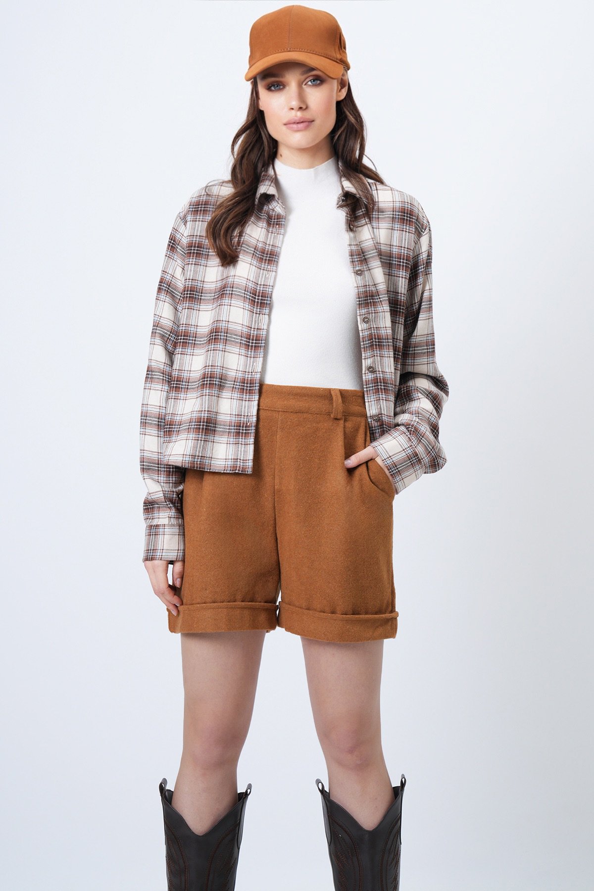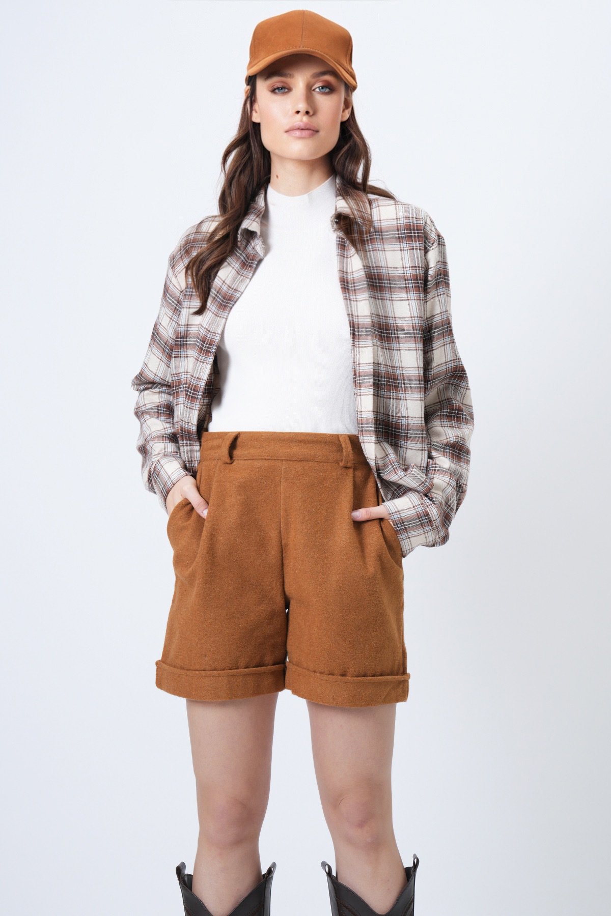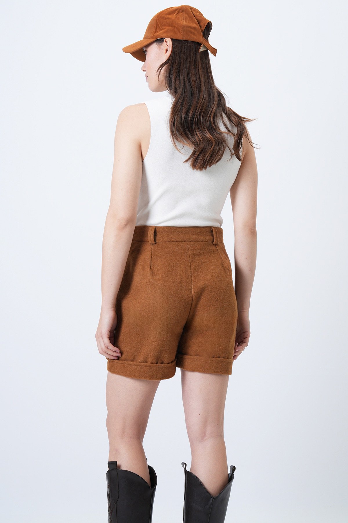 Kadın Hardal Duble Paça Çift Cepli Kışlık Kaşe Şort Alc-X13297 (ALC-X13297)