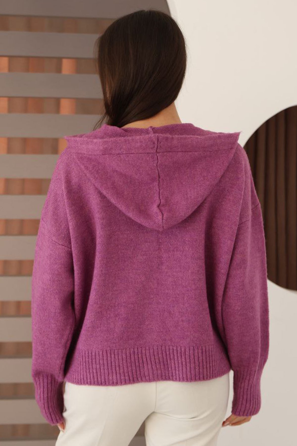 Kadın Mor Kapüşonlu Triko Hırka Alc-X14743 (ALC-X14743)