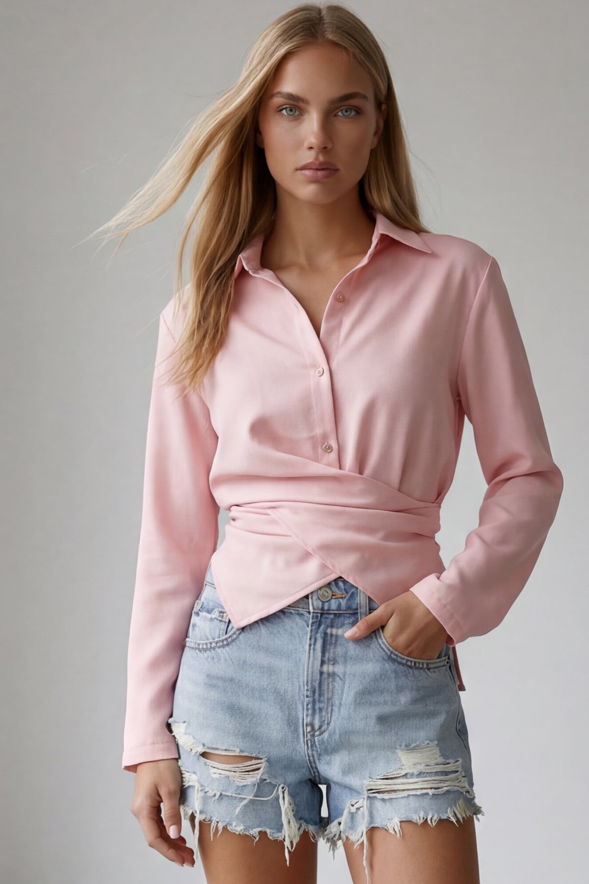 Kadın Pembe Çapraz Bağlama Detaylı Sofia Keten Gömlek Alc-X15471 (ALC-X15471)
