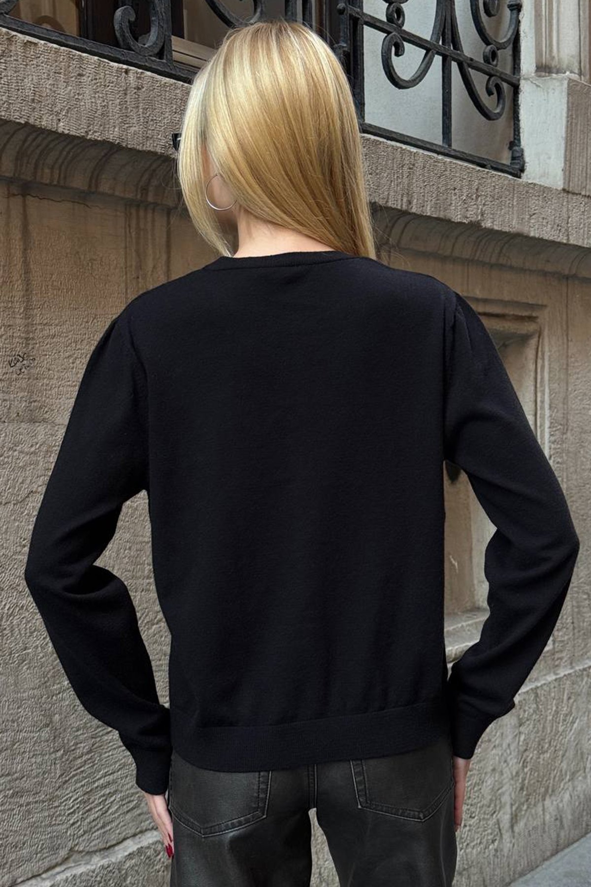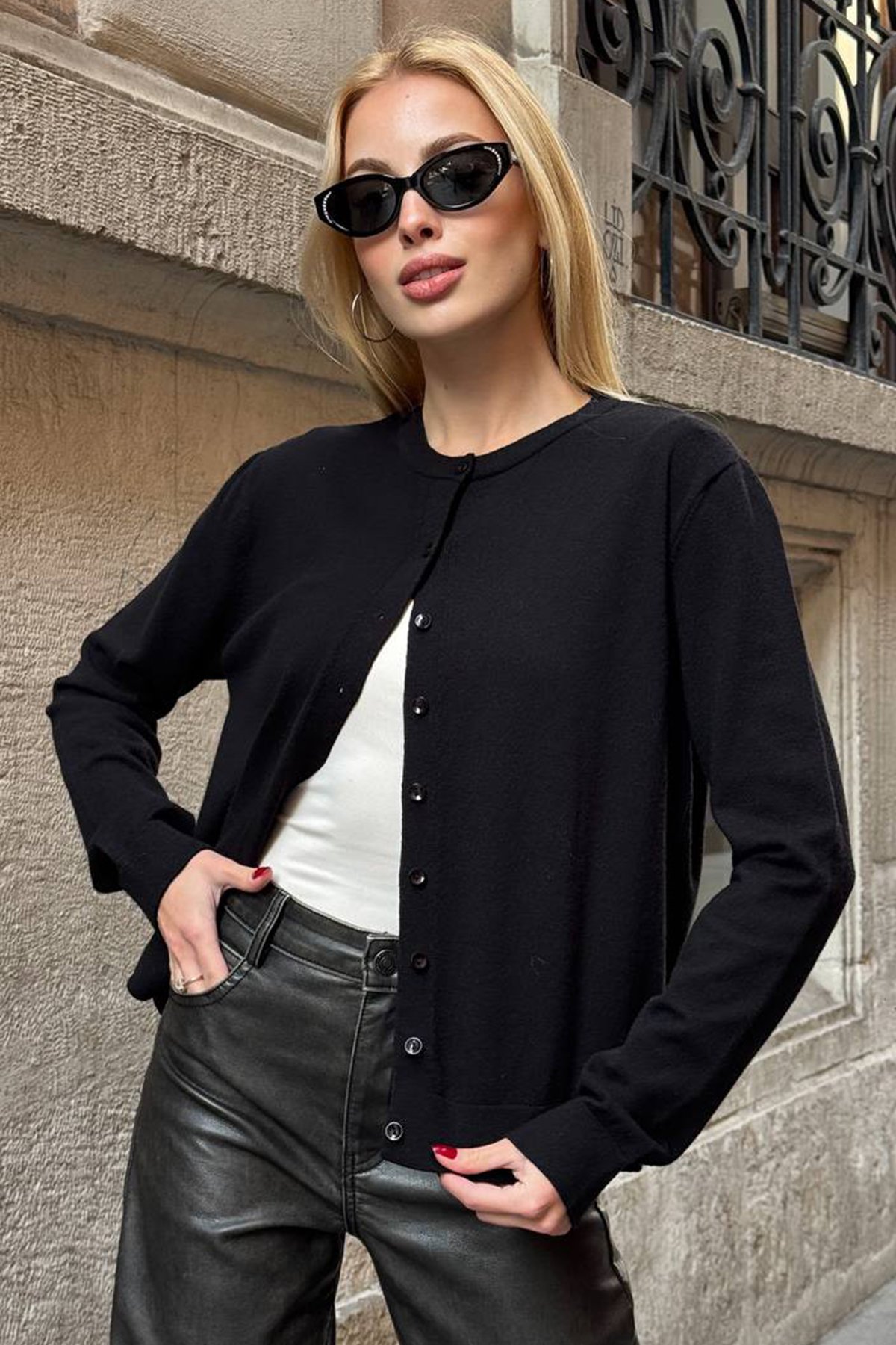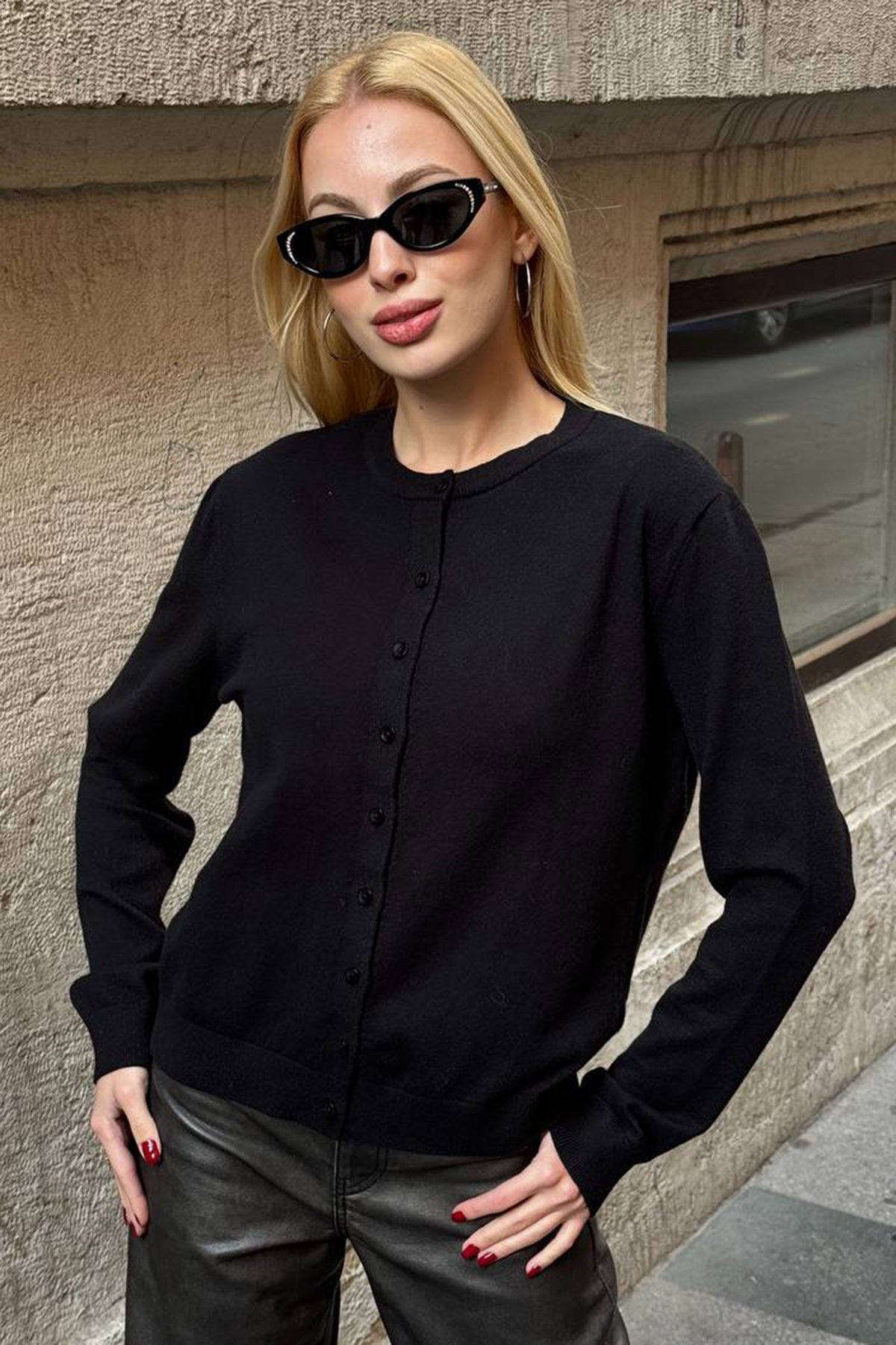 Kadın SİYAH Bisiklet Yaka Düğmeli Triko Hırka VS01640 (VS01640)