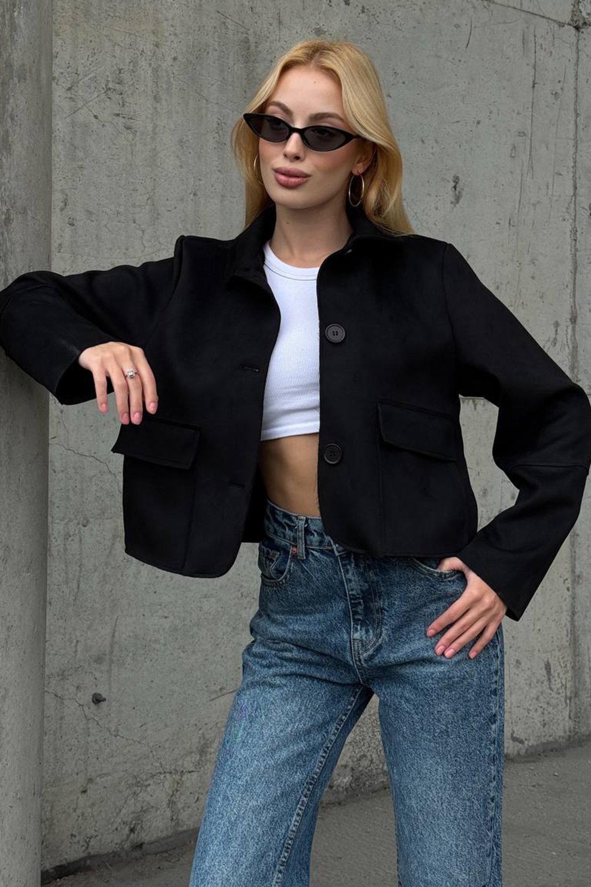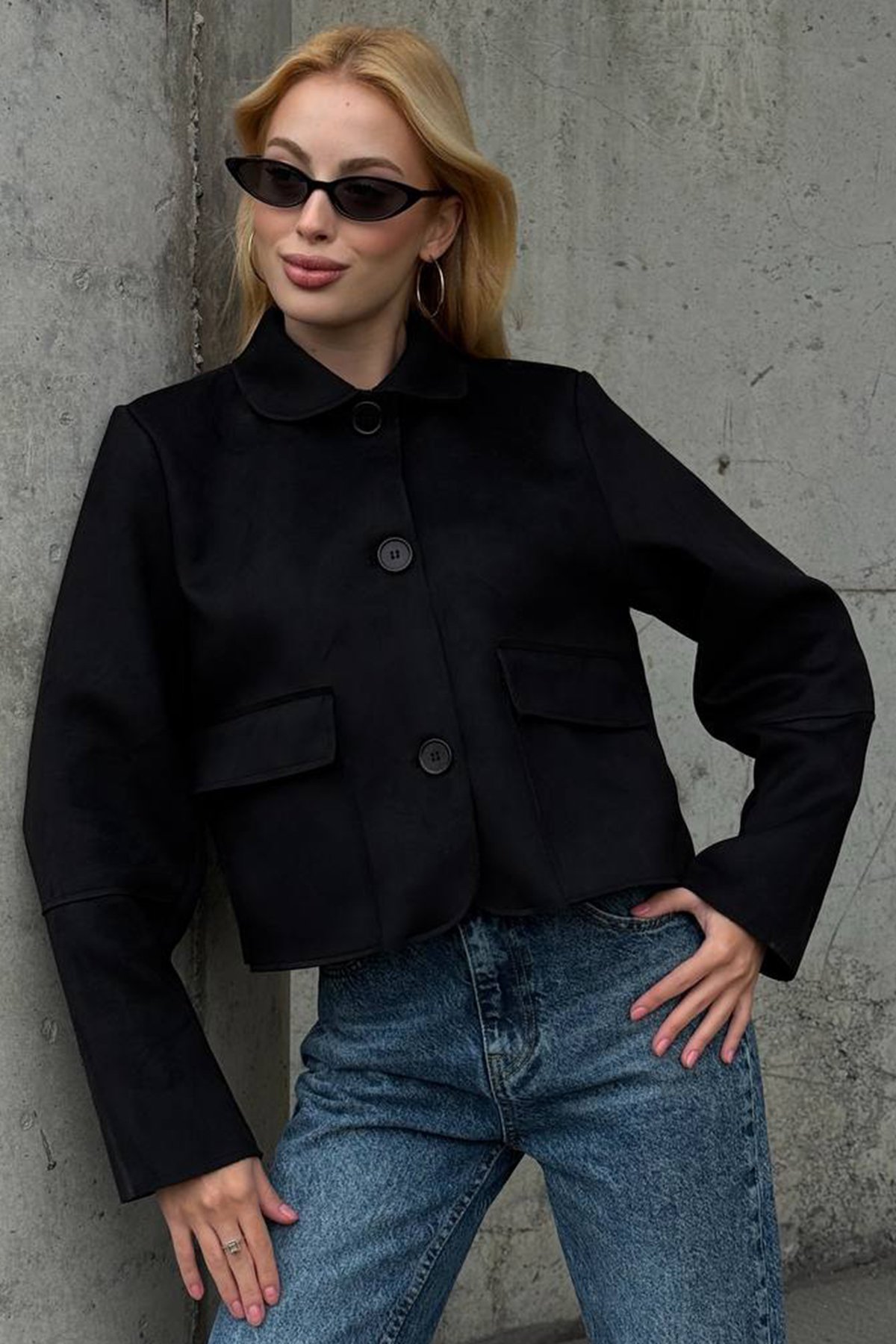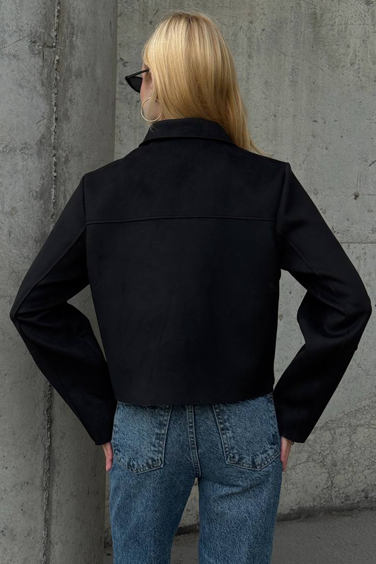 Kadın SİYAH Düğmeli Cep Detaylı Süet Ceket VS01424 (VS01424)