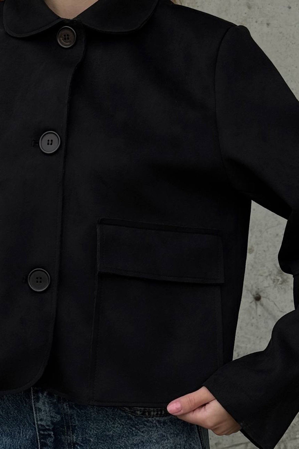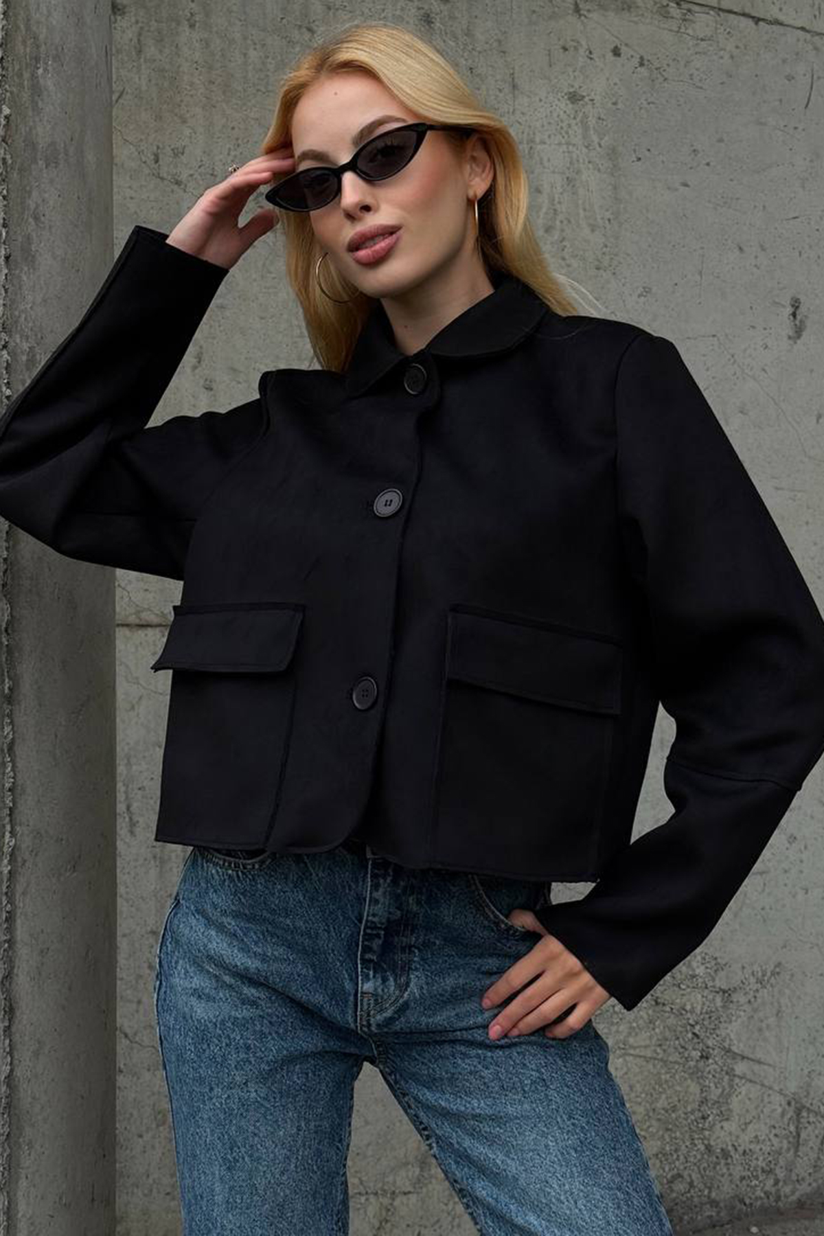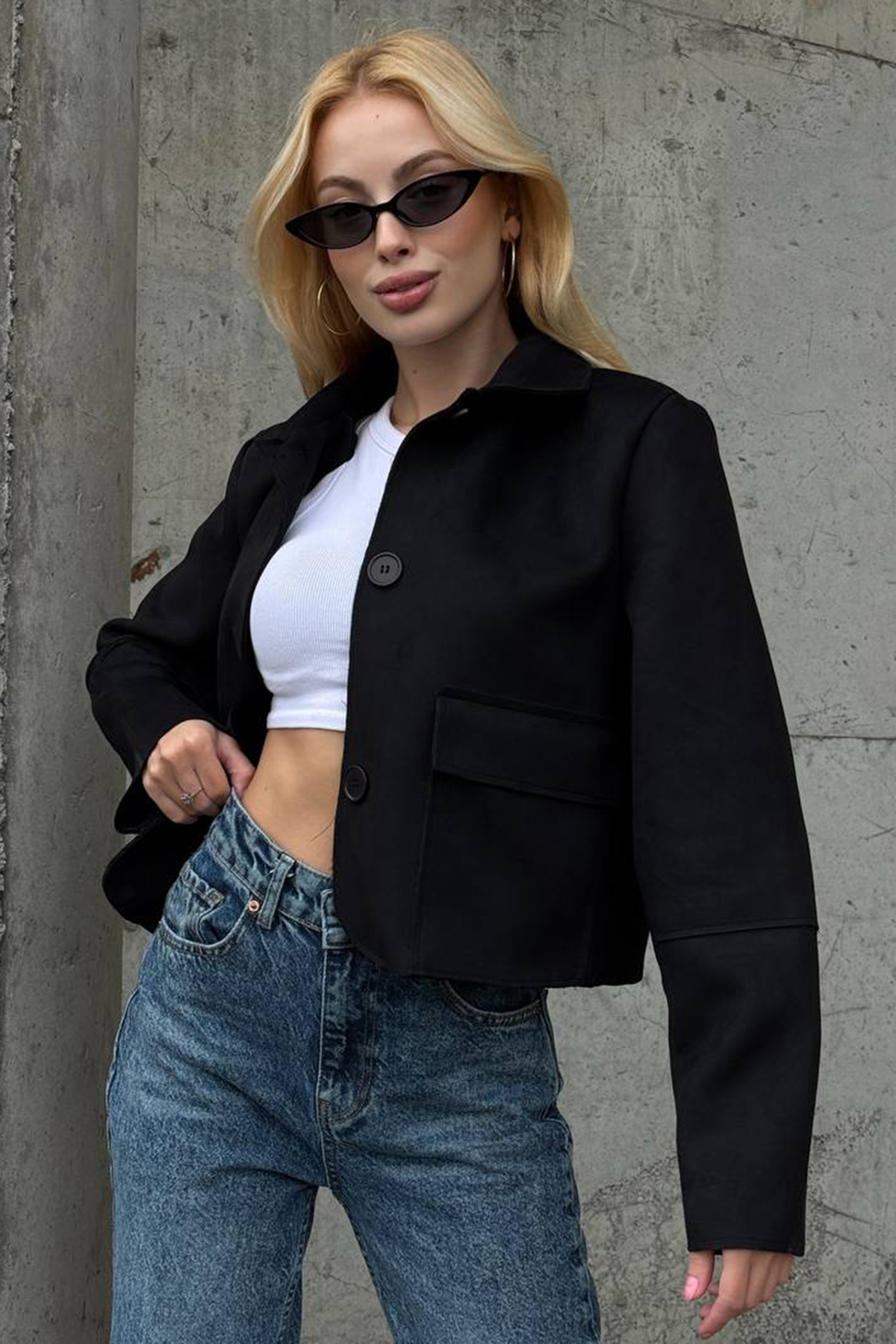 Kadın SİYAH Düğmeli Cep Detaylı Süet Ceket VS01424 (VS01424)