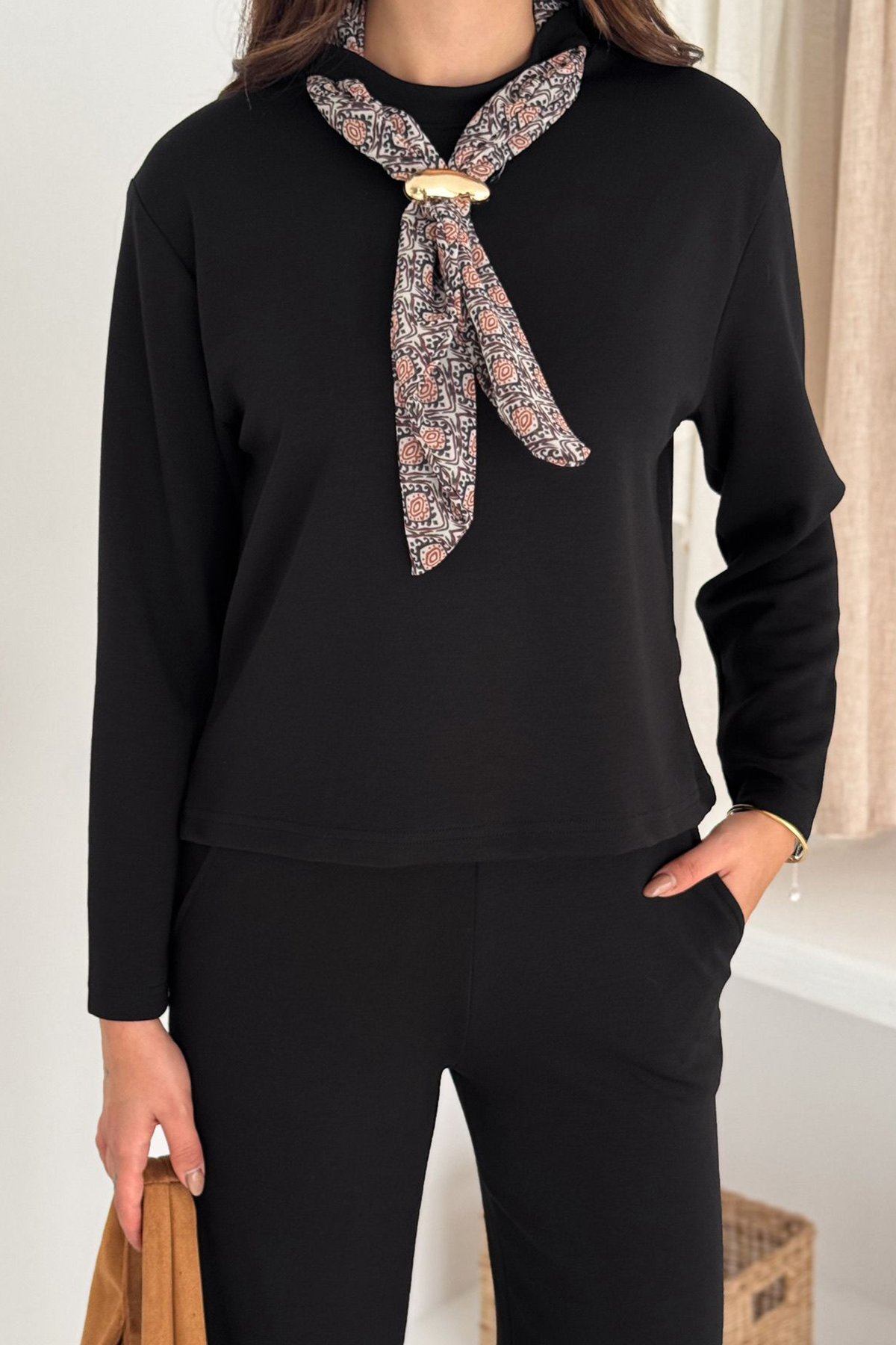 Kadın Siyah Fular Detaylı Sweatshirt Ve Beli Lastikli Geniş Paça Eşofman Takım VS01569 (VS01569)
