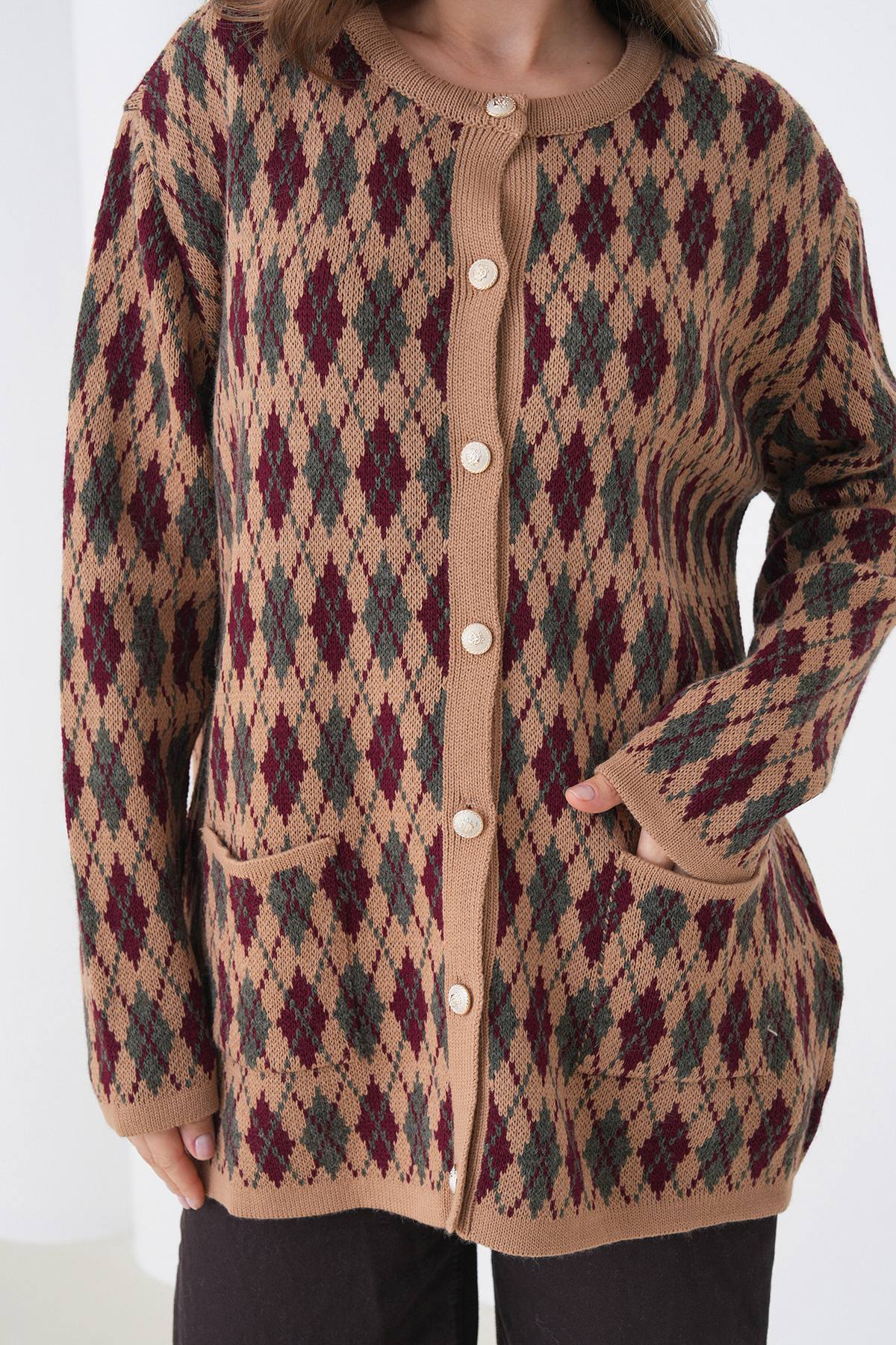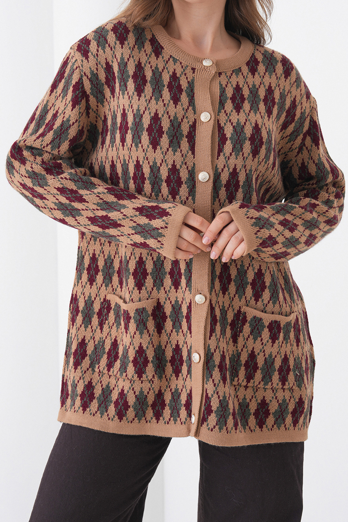 Kadın TEREYAĞI SARISI Baklava Desenli Düğmeli Cepli Triko Hırka VS01445 Kadın VİZON Baklava Desenli Düğmeli Cepli Triko Hırka VS01445 Kadın BEJ Baklava Desenli Düğmeli Cepli Triko Hırka VS01445