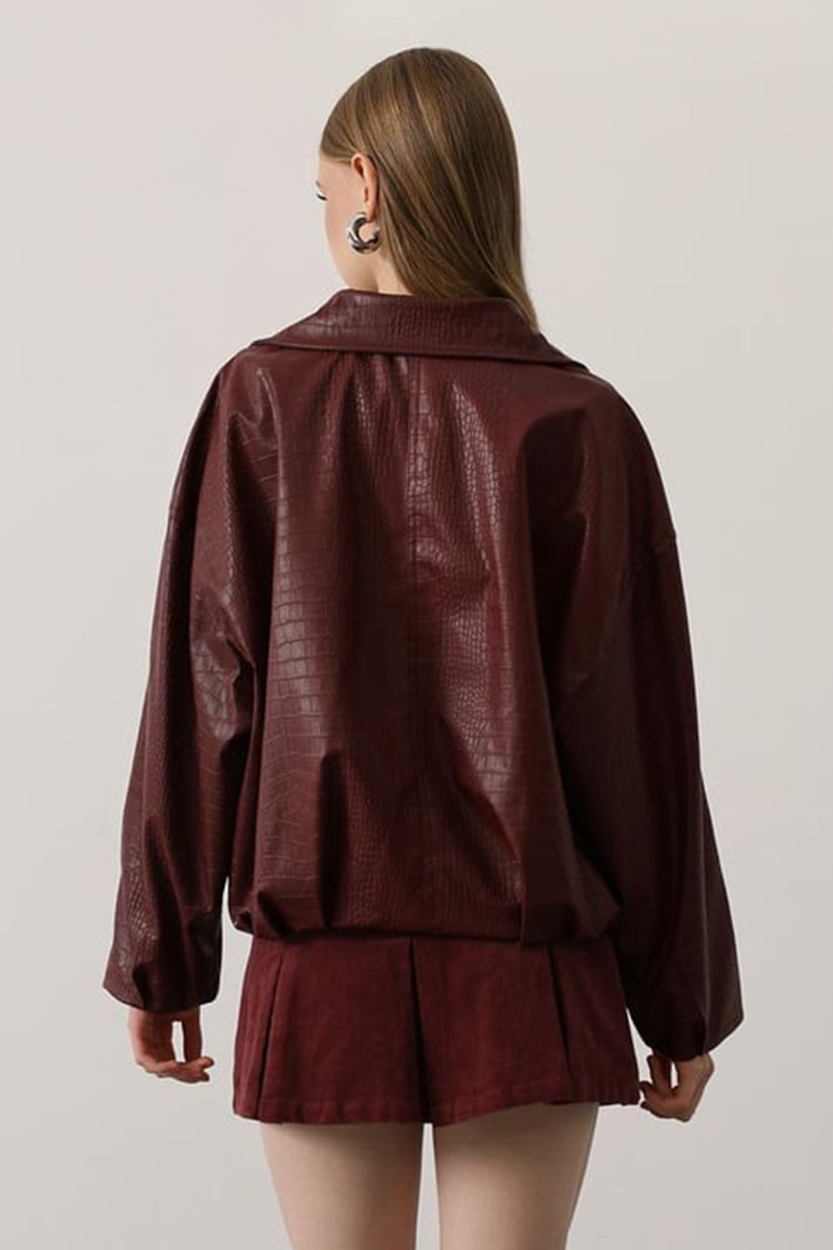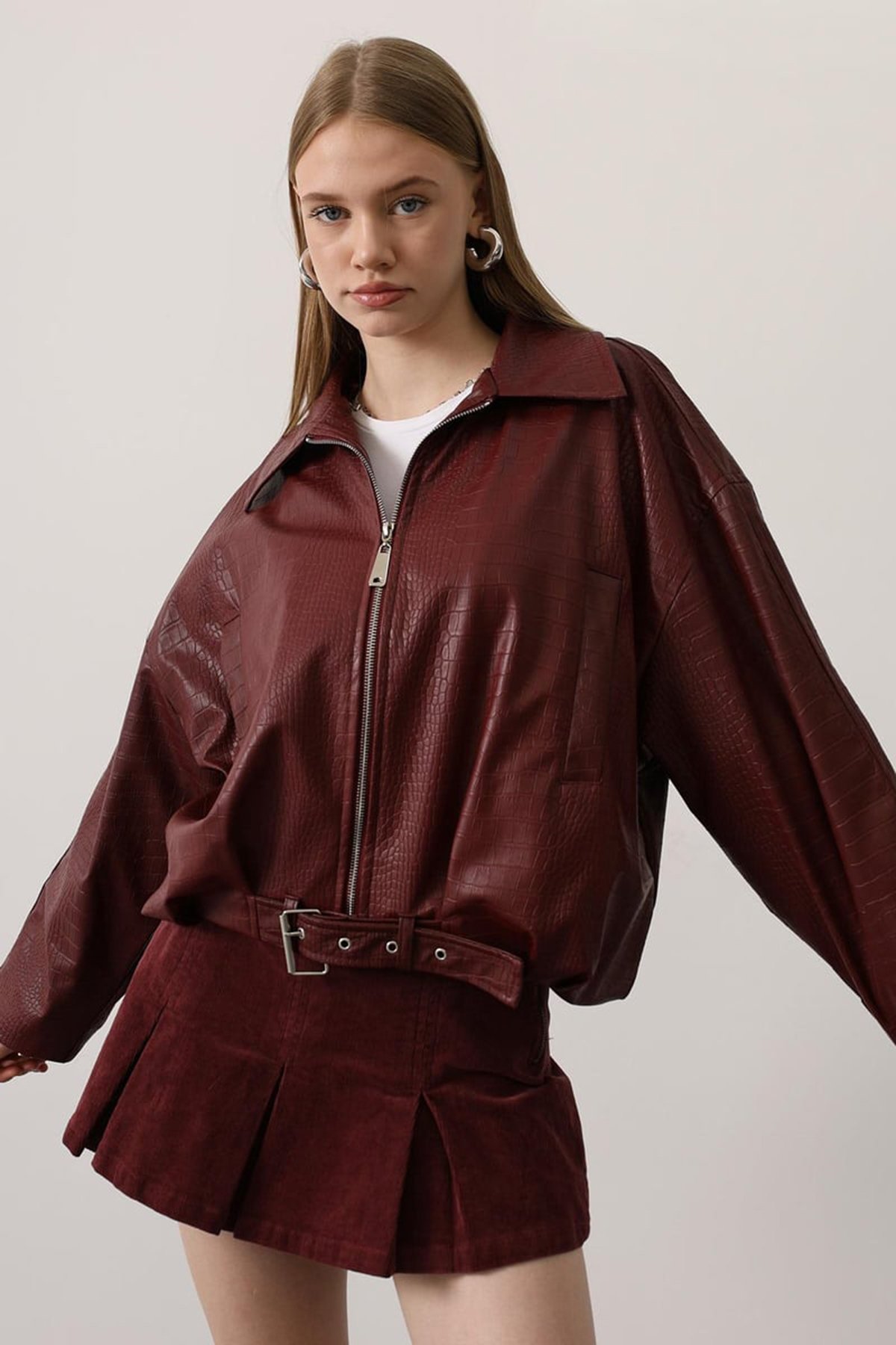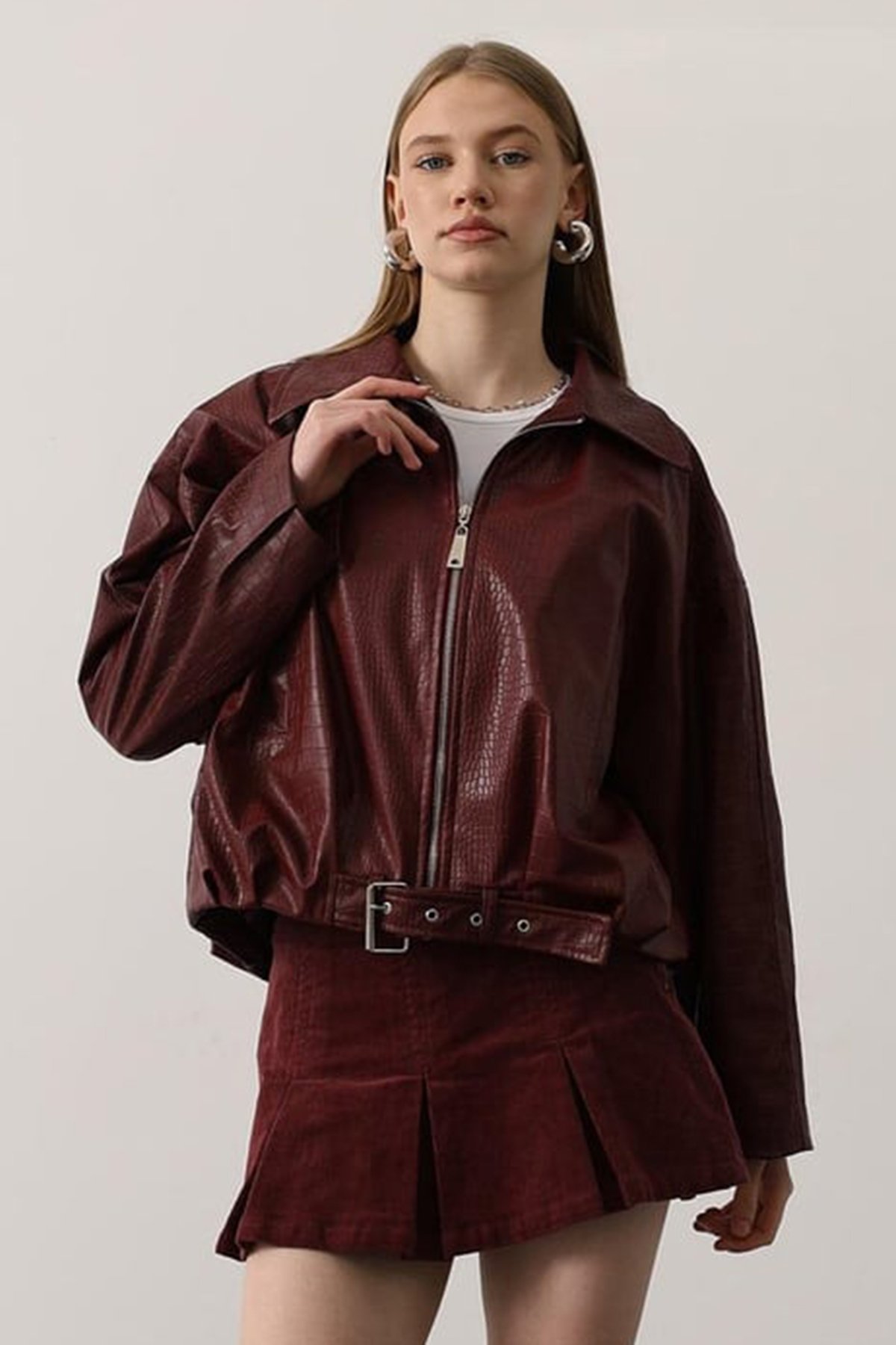 Kemer Detaylı Suni Deri Bomber Ceket - KIRMIZI (VS01245)