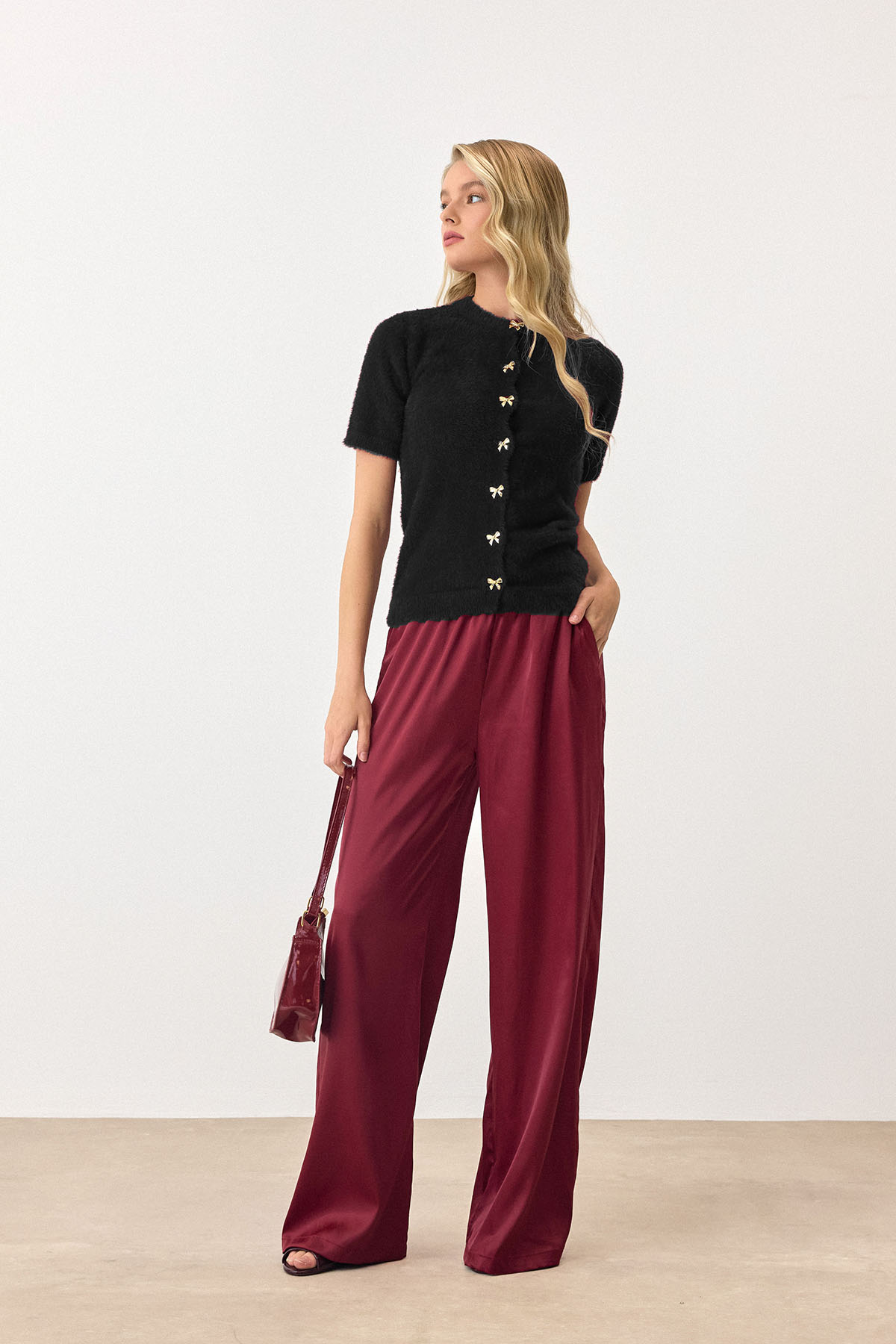 Kısa Kollu Düğmeli Triko Hırka;Stüdyo Çekimlerinde Renkler Işık Farklılığından Dolayı Değişiklik Gösterebilir.;Manken Ölçüler: Boy: 1.67 Cm Göğüs: 75 Cm Bel: 62 Cm Kalça: 80 Cm Kilo: 45 Cm S/36/1 Beden