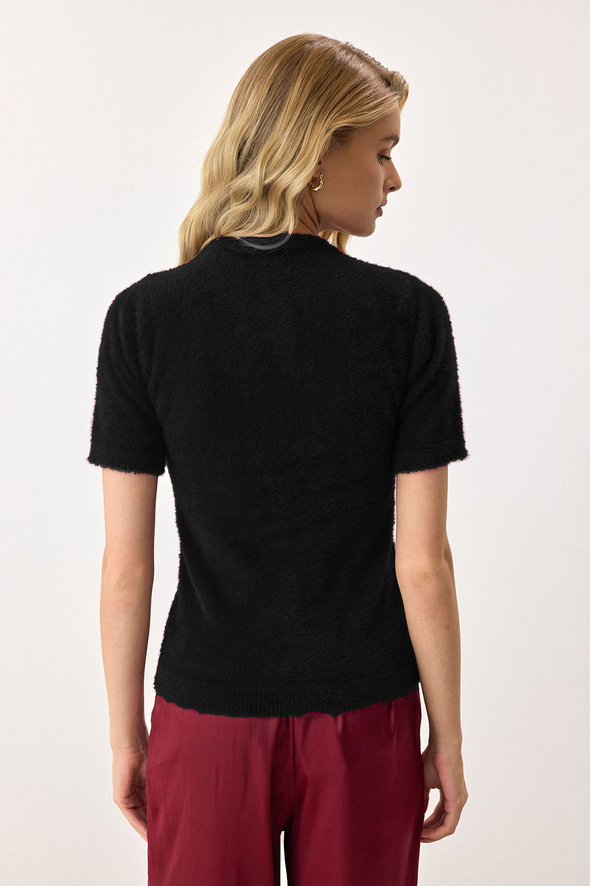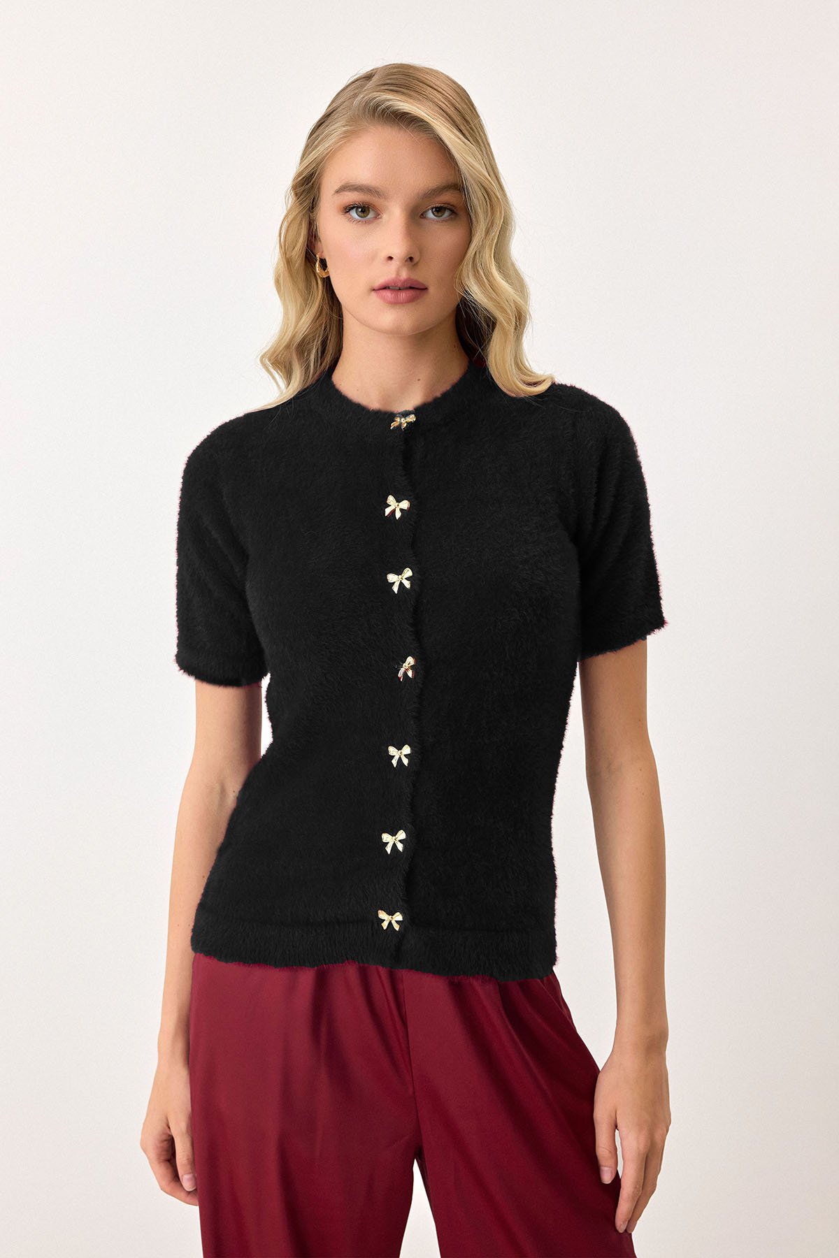 Kadın Siyah Kısa Kollu Düğmeli Triko Hırka VS00892 (VS00892)