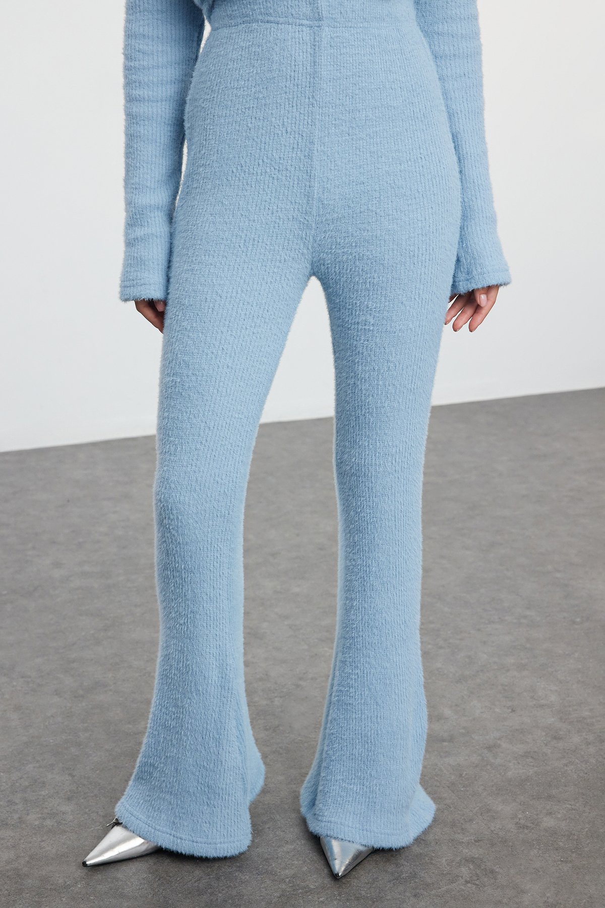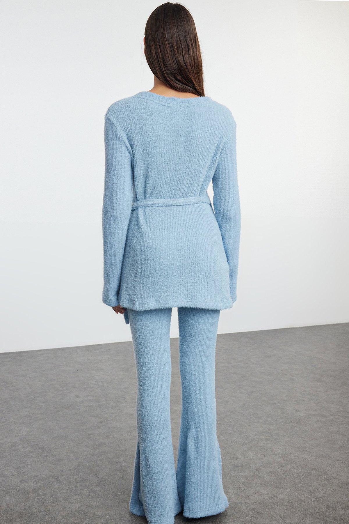 Kruvaze Yaka Bağlamalı Bluz ve İspanyol Paça Pantolon Takım - BEBE MAVİ (VS01281)