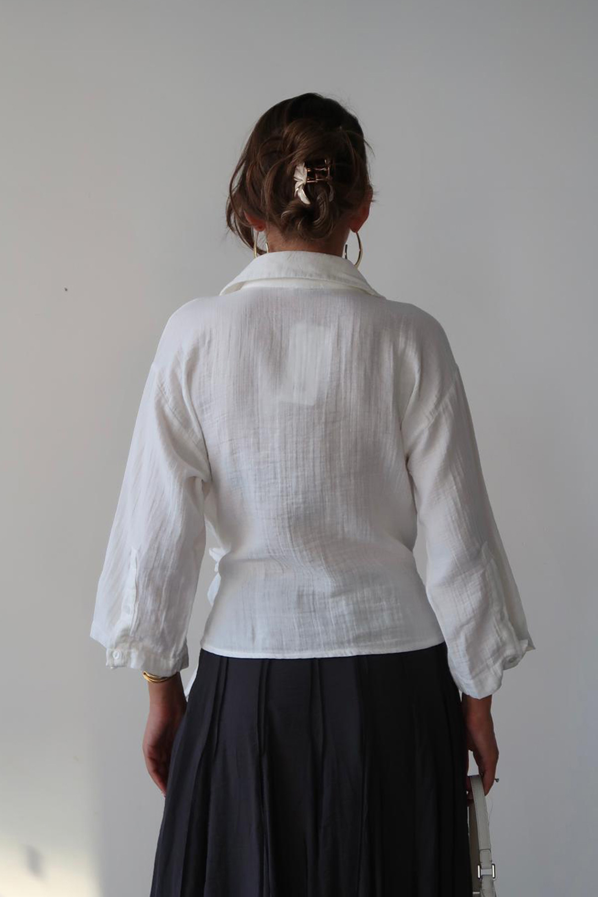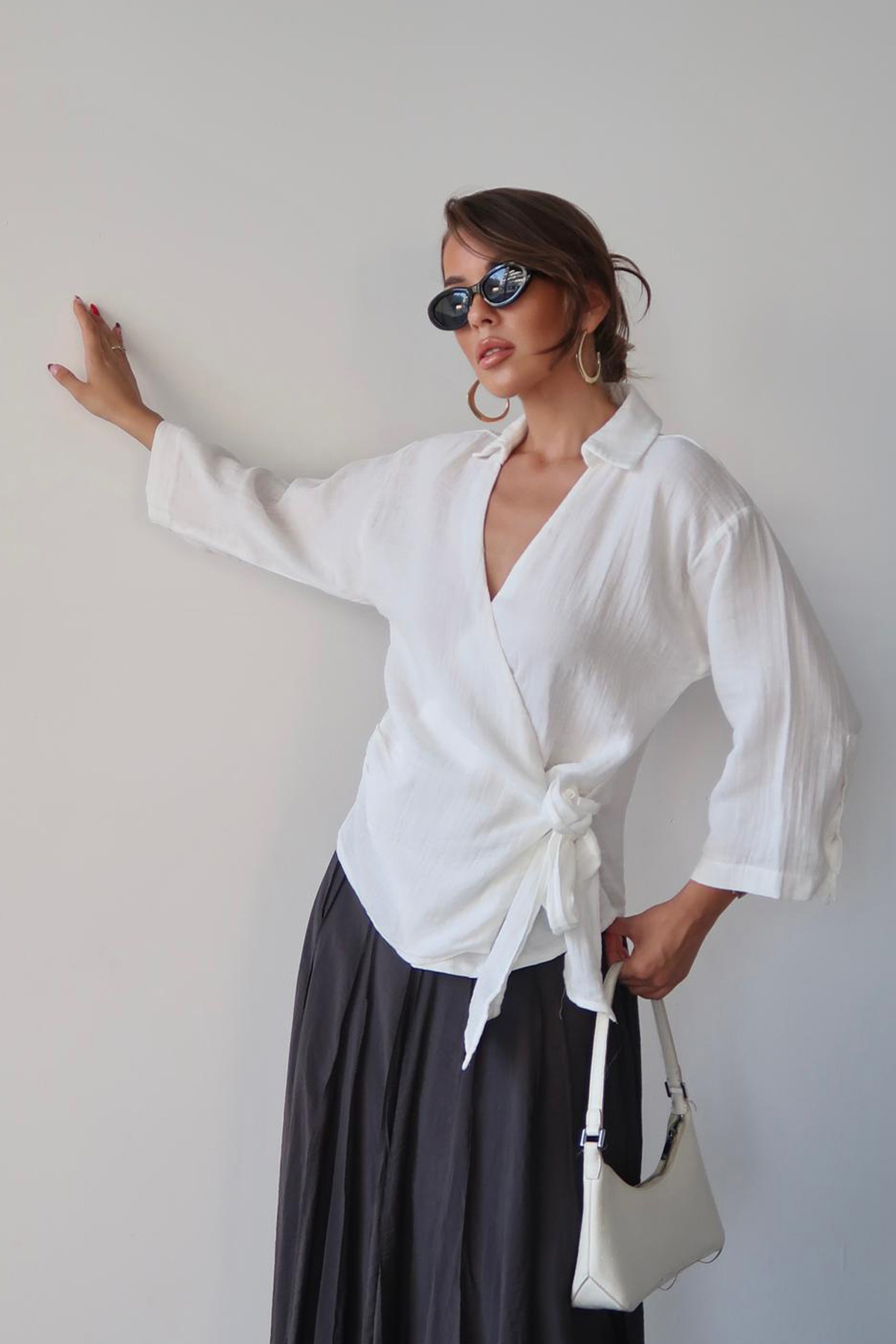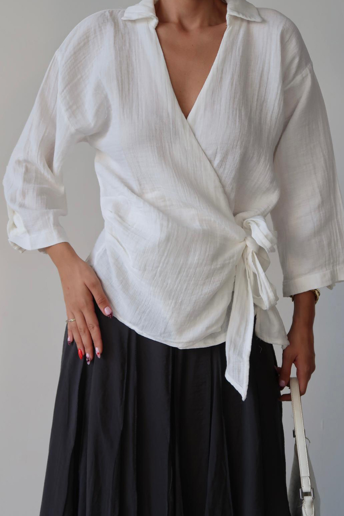 Kruvaze Yaka Bağlamalı Müslin Bluz (VS00677)